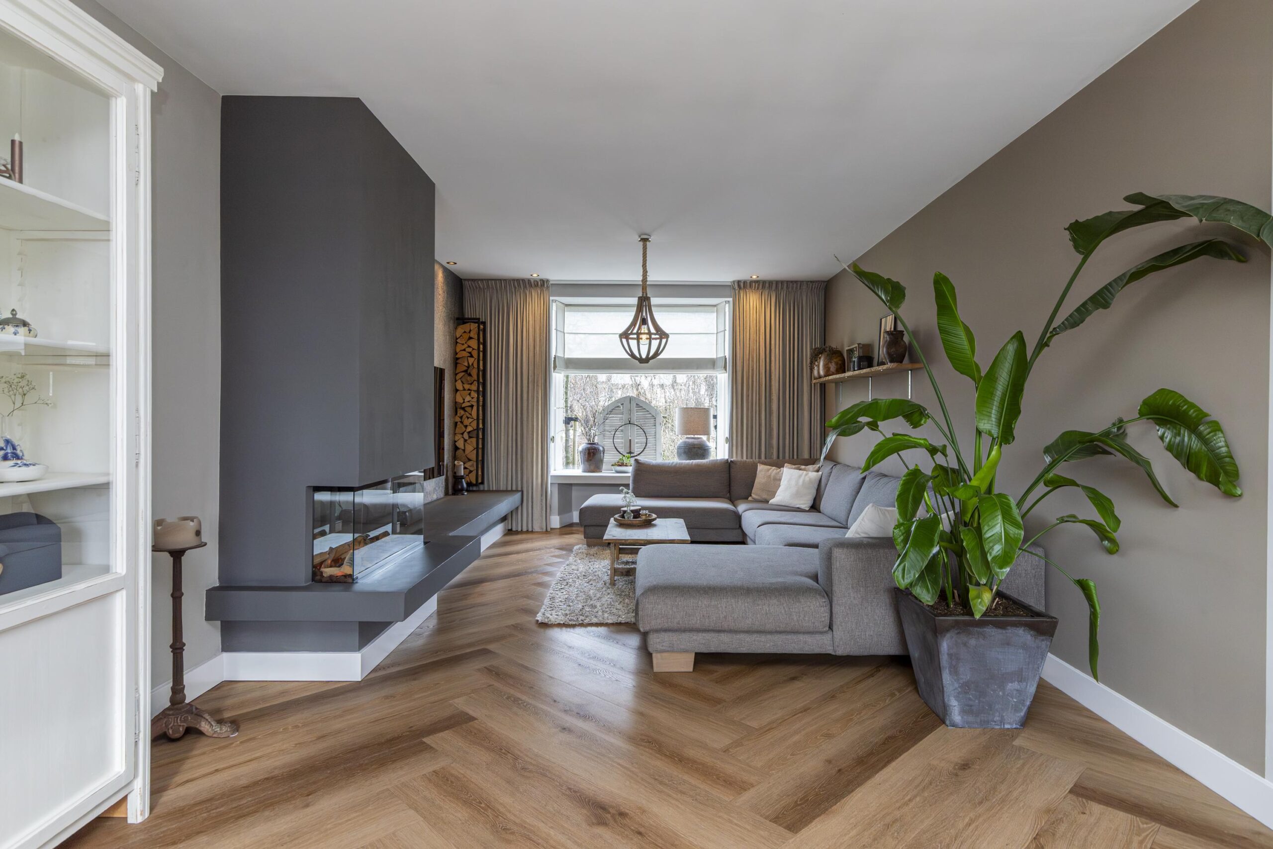 Bij binnenkomst valt direct de hoogwaardige afwerking op. De begane grond is voorzien van een prachtige visgraat pvc vloer met vloerverwarming.