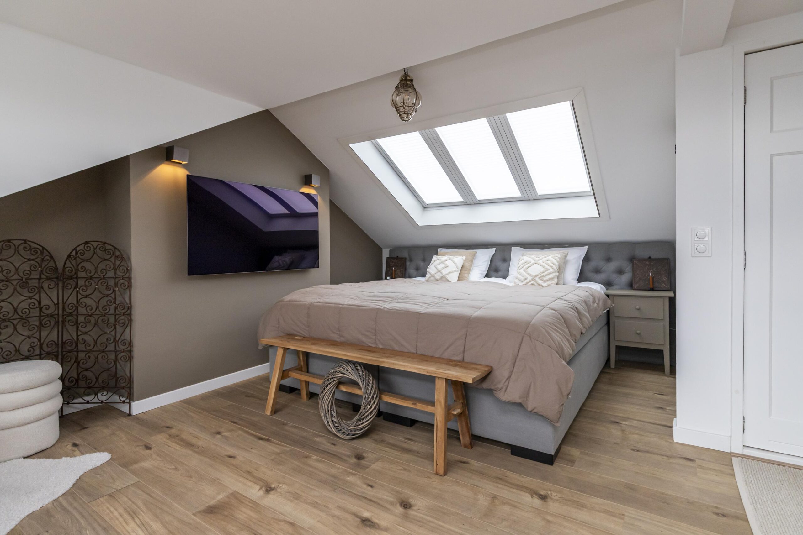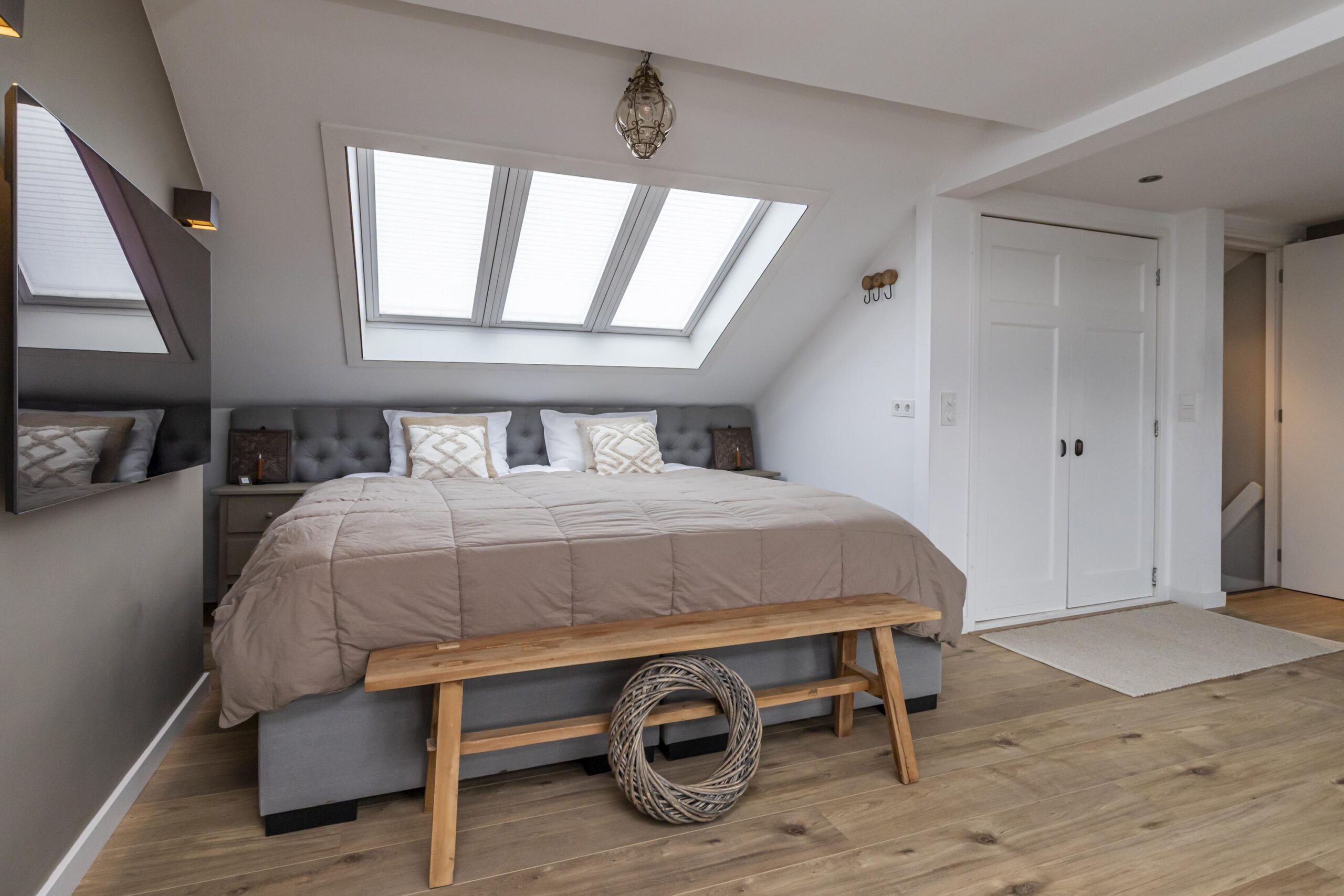 De tweede verdieping is verrassend ruim. Aan de ene zijde zorgt een groot dakraam voor veel natuurlijk licht, terwijl aan de andere zijde een brede dakkapel voor extra leefruimte zorgt.