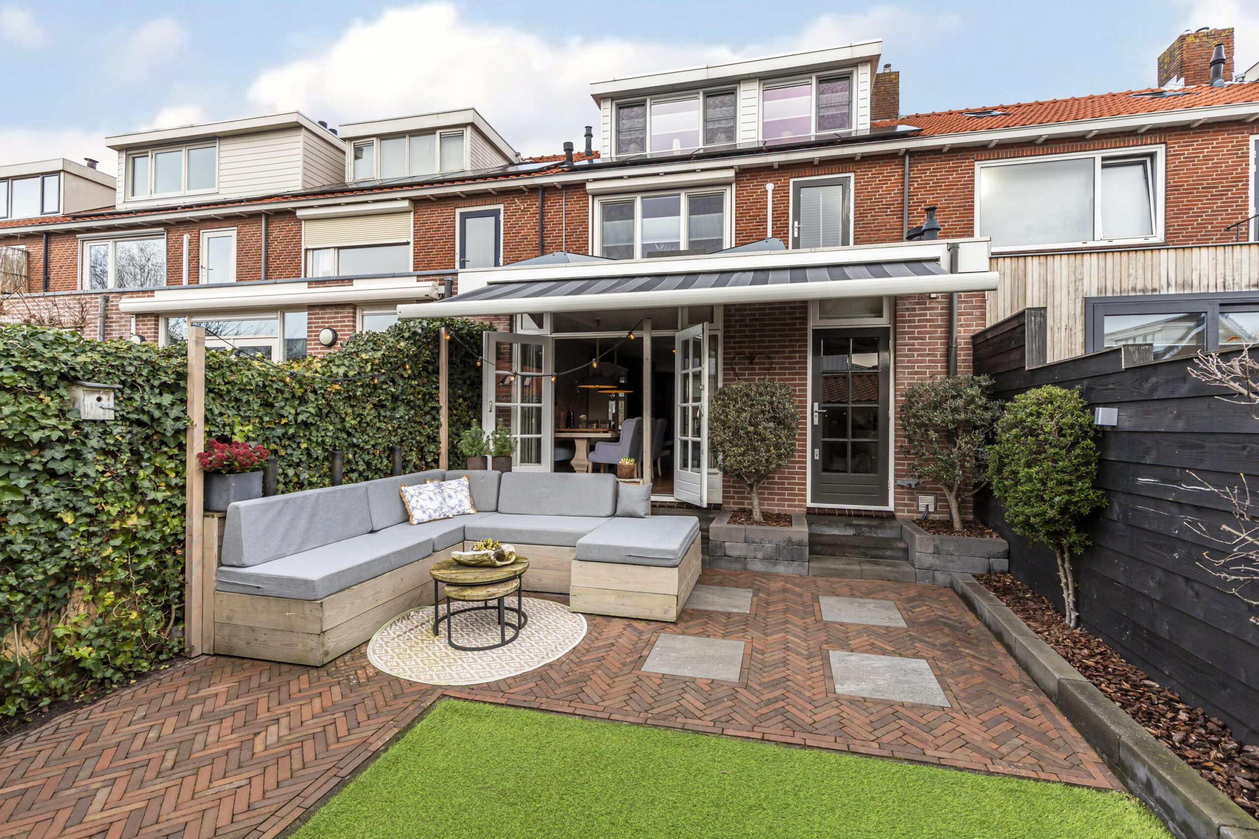 De achtertuin is onderhoudsvriendelijk aangelegd, ligt op het zuiden en voelt prettig beschut. Dankzij de zonnige ligging kun je hier al vroeg op de dag van de zon genieten.