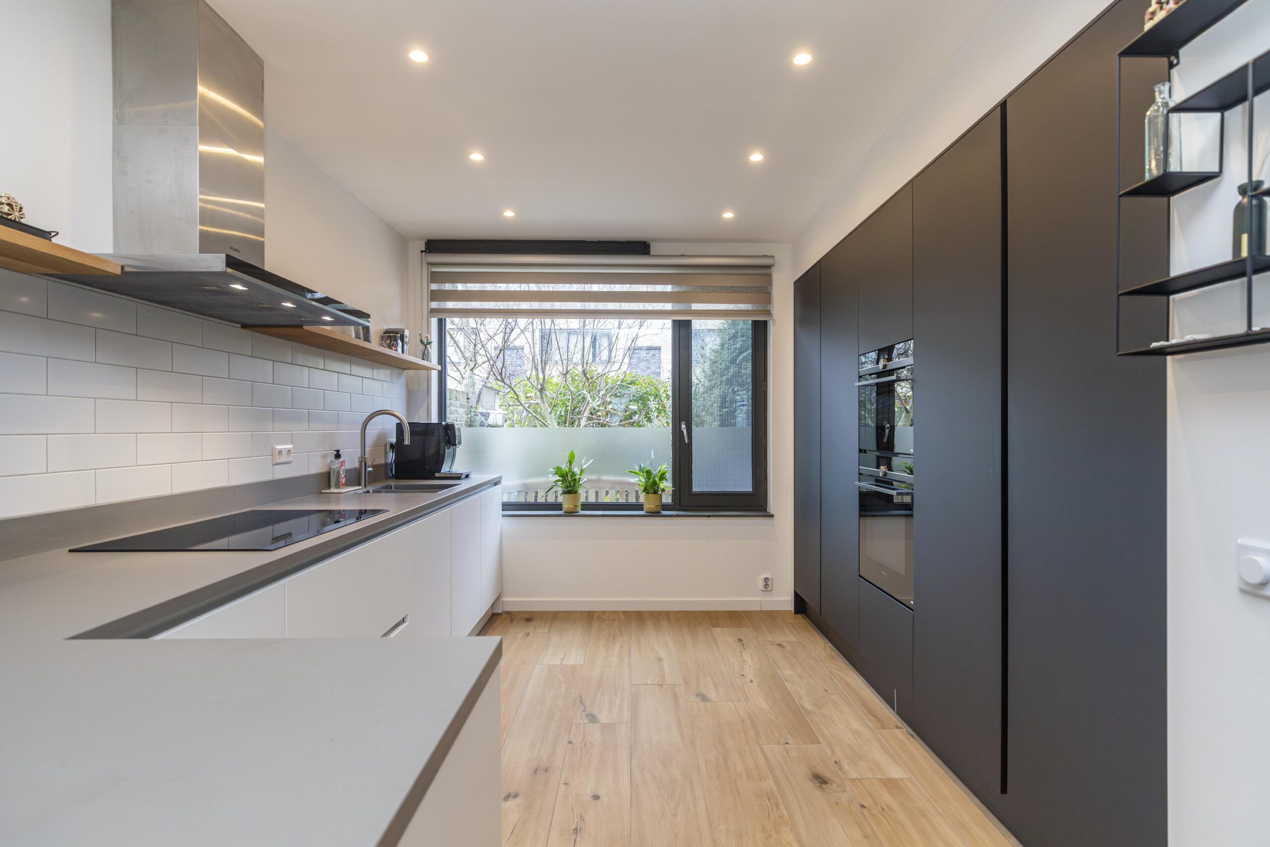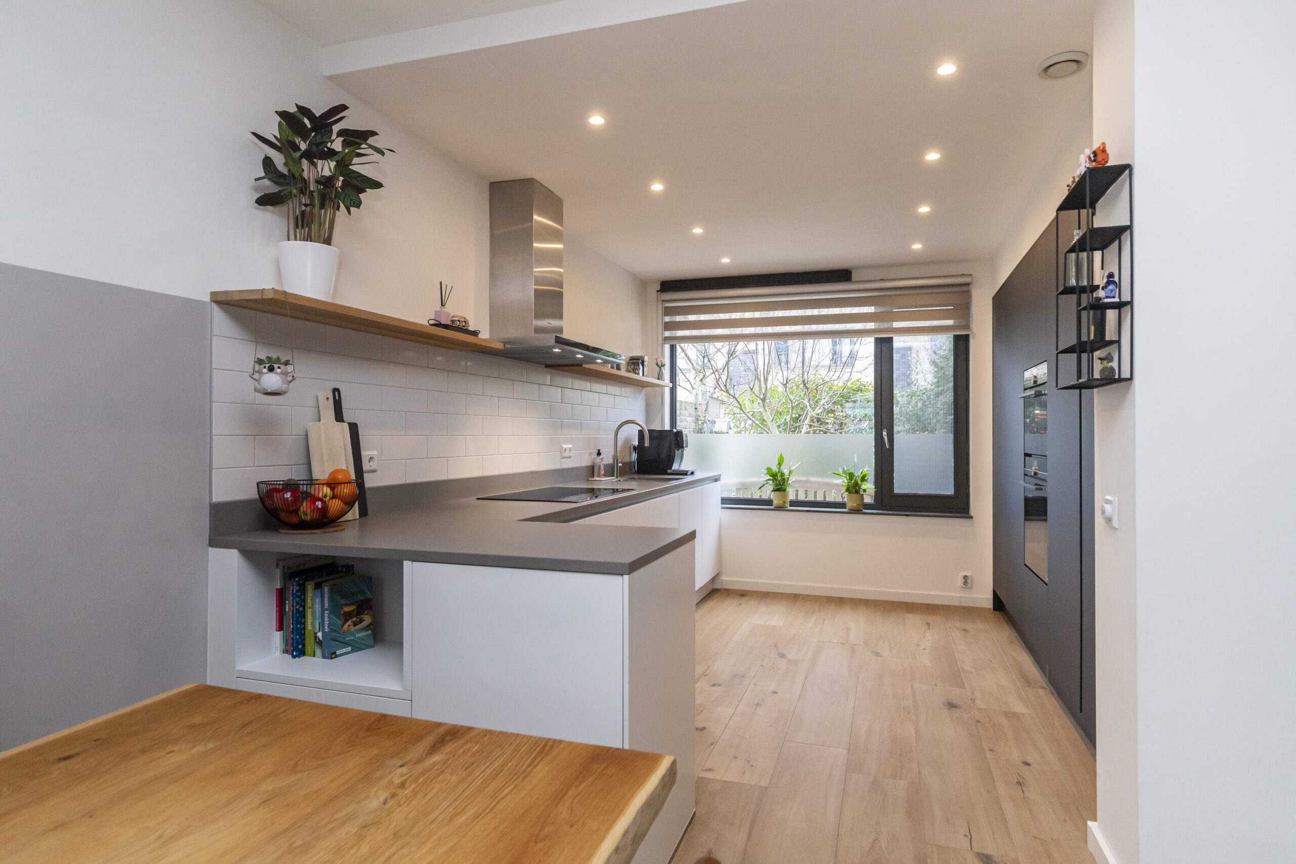 De keuken is aan de voorzijde van de woning gelegen en praktisch ingericht met voldoende werk- en bergruimte. Naast de aanwezige inbouwapparatuur is de keuken uitgerust met een Quooker, wat het dagelijkse gebruik extra comfortabel maakt.