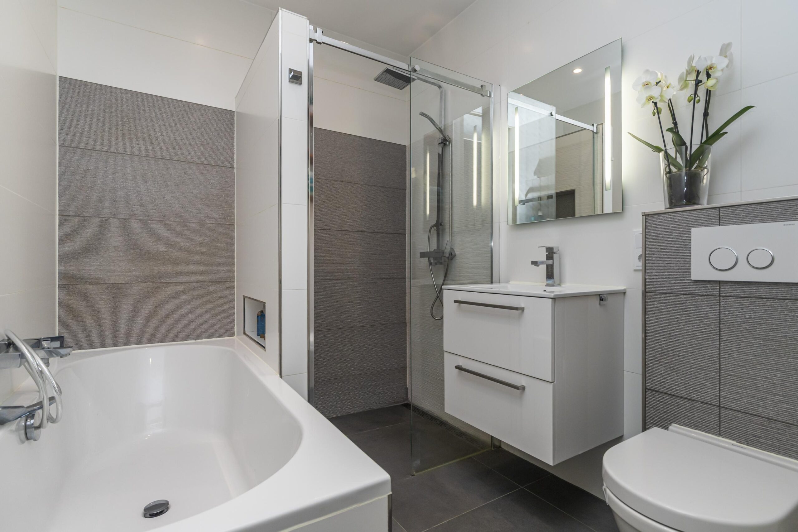 - Badkamervoorzieningen Ligbad, toilet, douche, wastafelmeubel