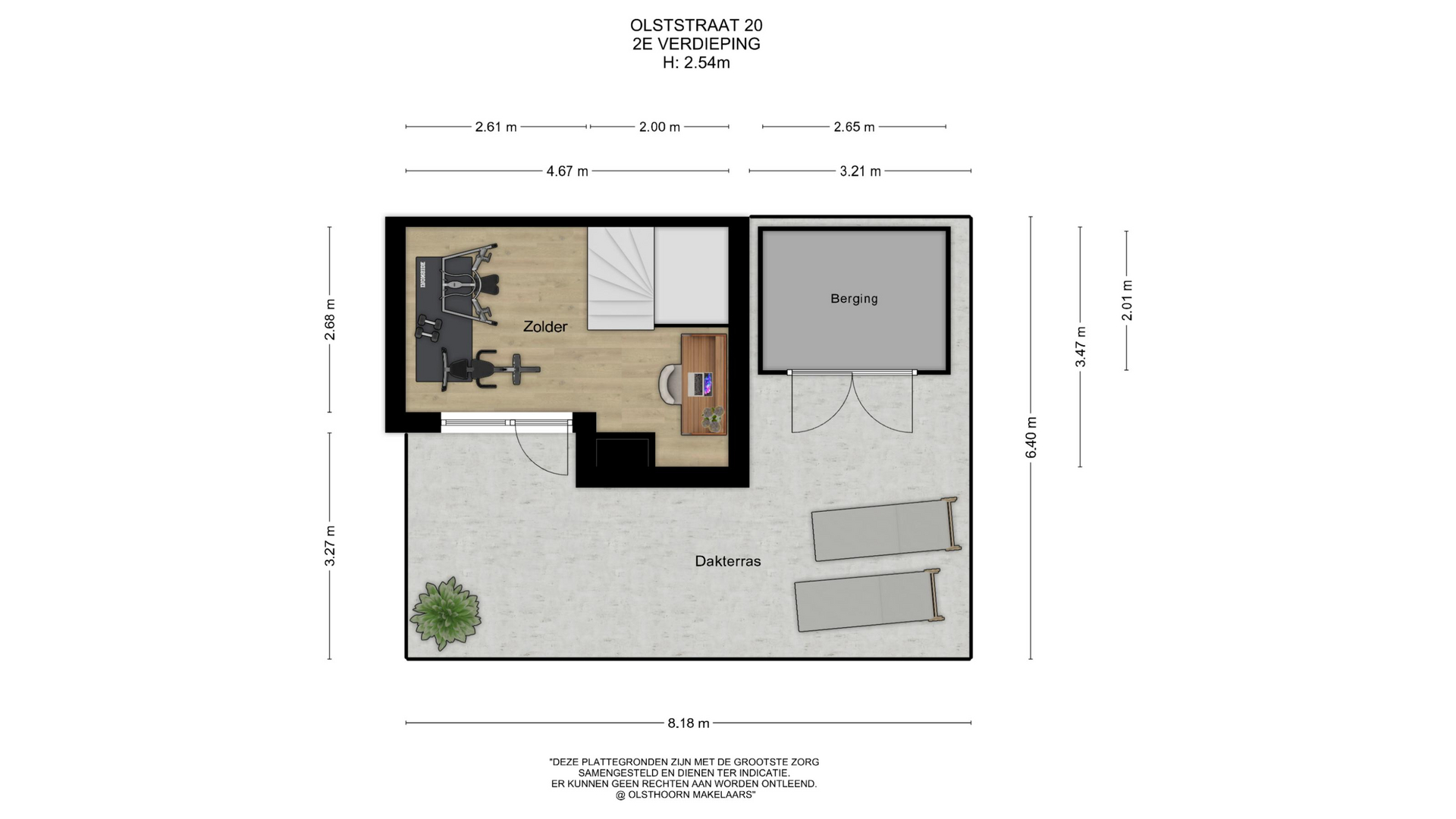 De tweede verdieping is ingericht als een open zolderruimte en biedt volop mogelijkheden, bijvoorbeeld als extra slaapkamer, werkkamer of sportruimte. Vanuit deze verdieping is het ruime dakterras bereikbaar, een heerlijke plek om buiten te zitten en te genieten van zon en privacy. Tevens is hier extra bergruimte aanwezig.