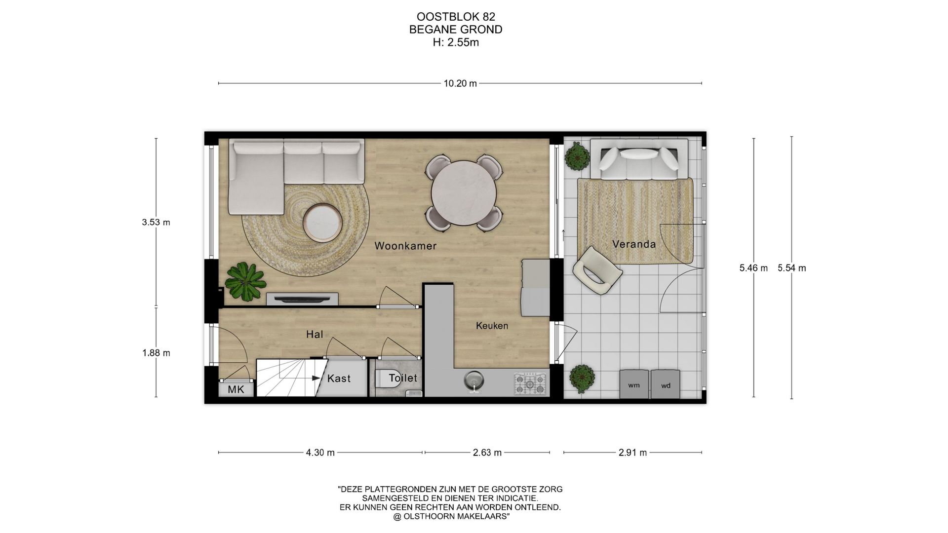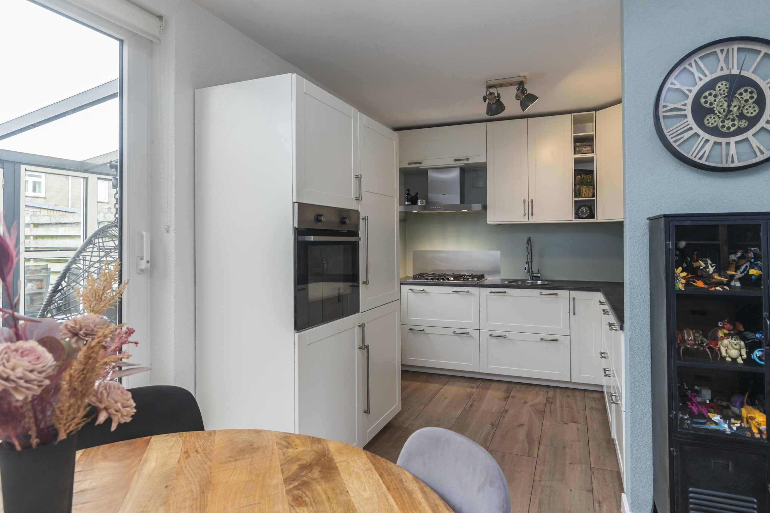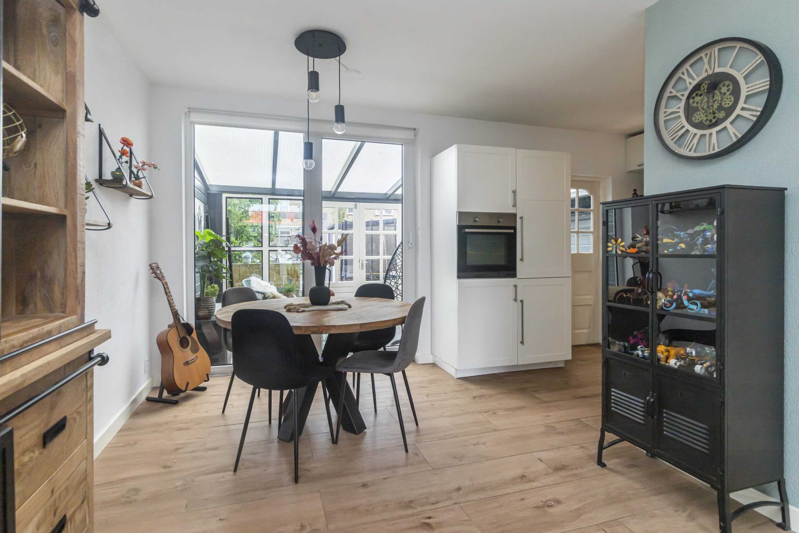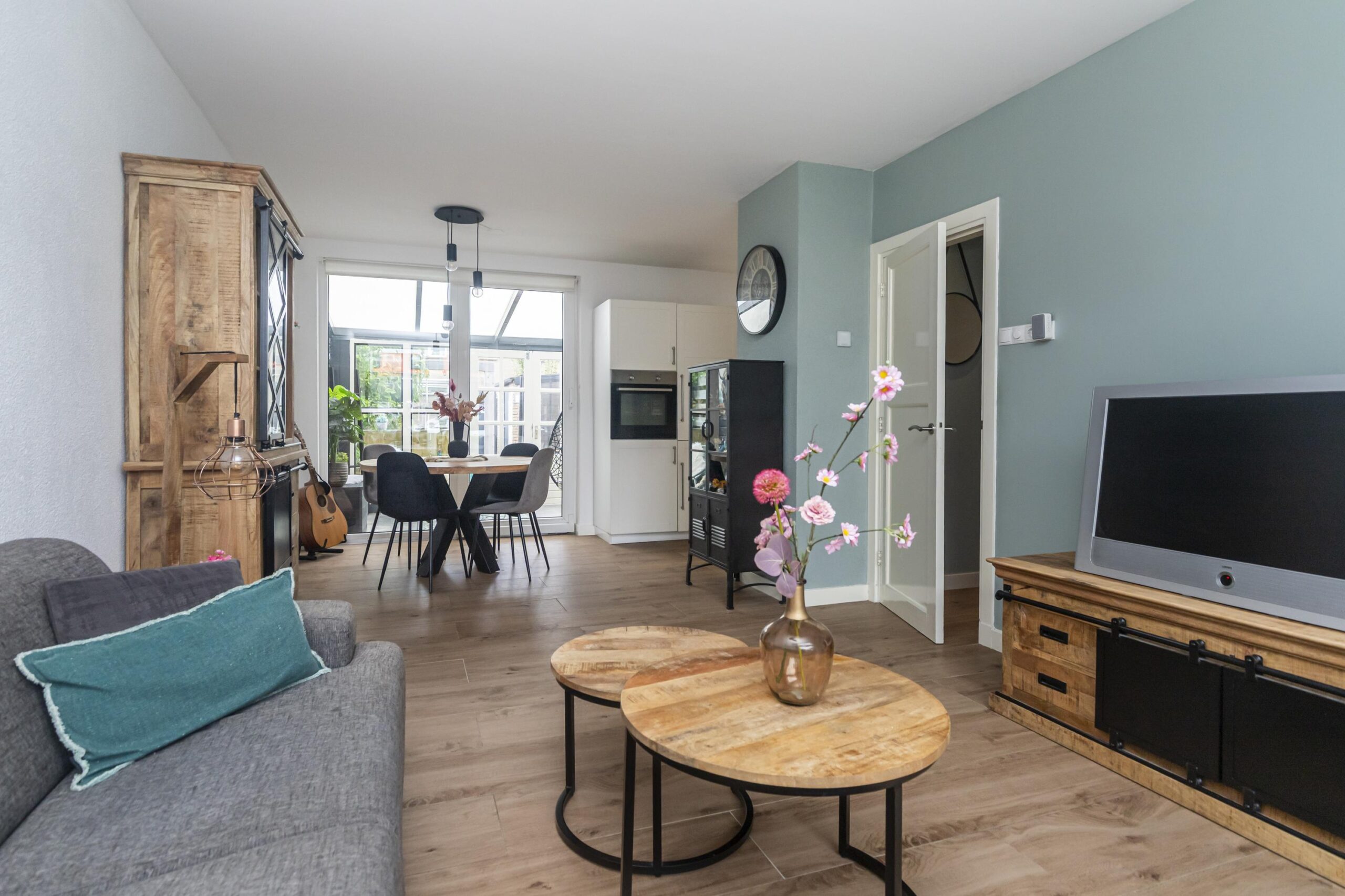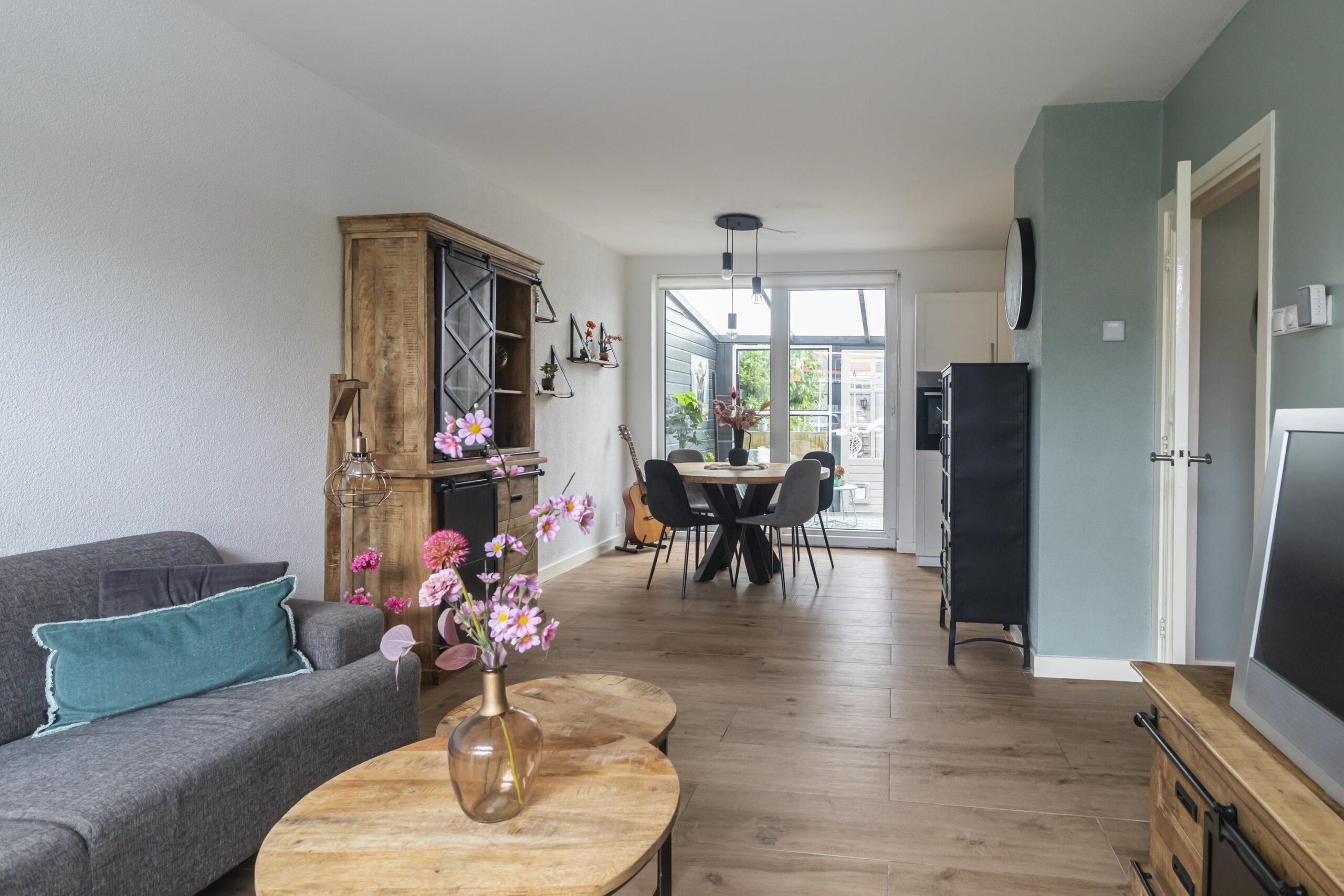 Via de verzorgde voortuin kom je binnen in de hal met meterkast en een modern toilet. De lichte L-vormige woonkamer is ruim opgezet (circa 7 meter diep) en heeft grote ramen aan zowel de voor- als achterzijde, waardoor er veel daglicht binnenvalt. Aan de achterzijde is een royale serre geplaatst over de volle breedte van de woning, perfect als extra leefruimte of speelplek.
