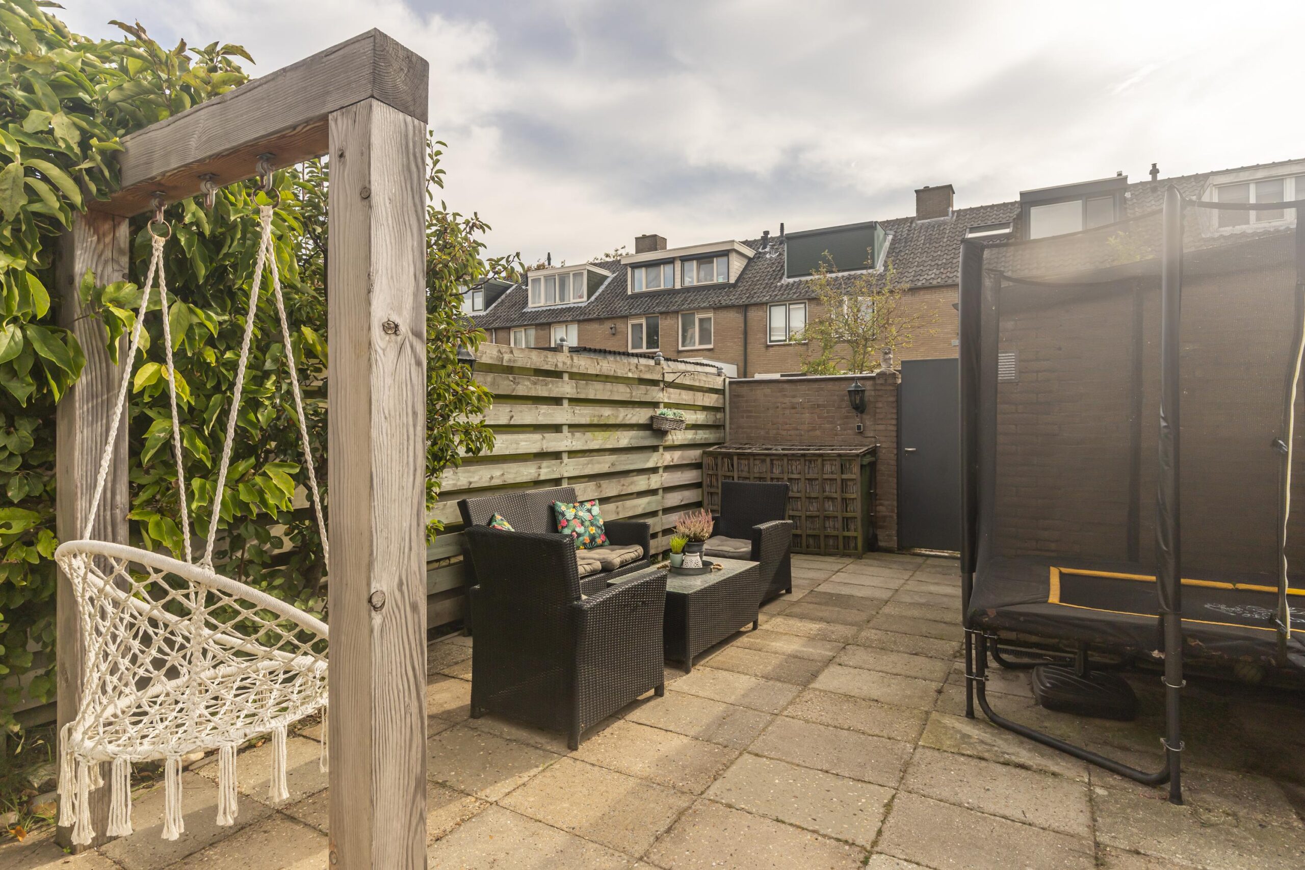 De achtertuin is gunstig gelegen op het zuidoosten: hier geniet je vrijwel de hele dag van de zon. De tuin beschikt over een stenen berging en een afgesloten achterom – ideaal voor fietsen of tuinspullen.