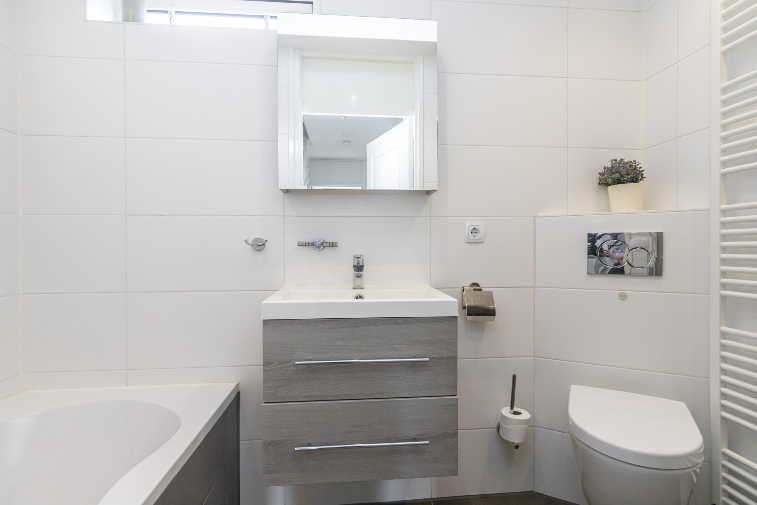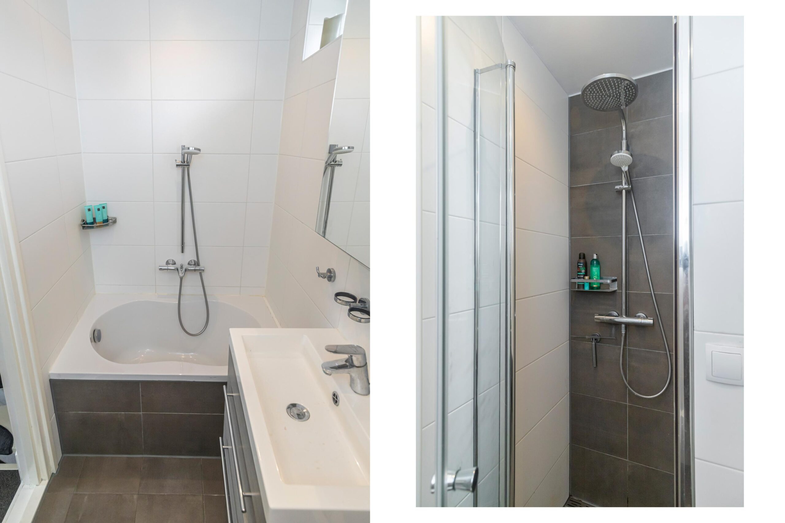 Op deze verdieping bevinden zich drie slaapkamers: één aan de voorzijde en twee aan de achterzijde. De badkamer is licht betegeld en praktisch ingedeeld met een douche, zitbad, wandcloset, wastafelmeubel en een aansluiting voor de wasmachine.