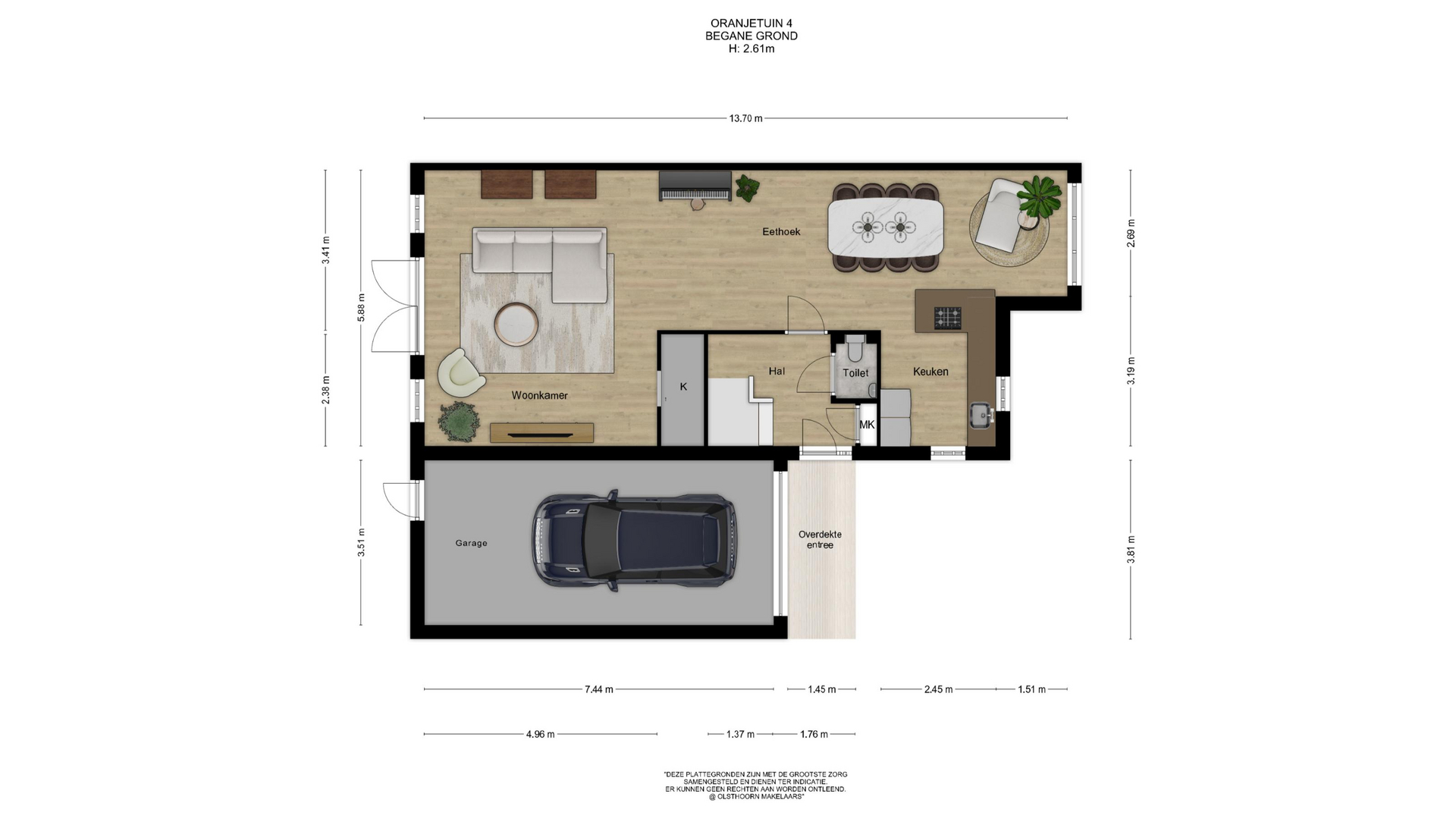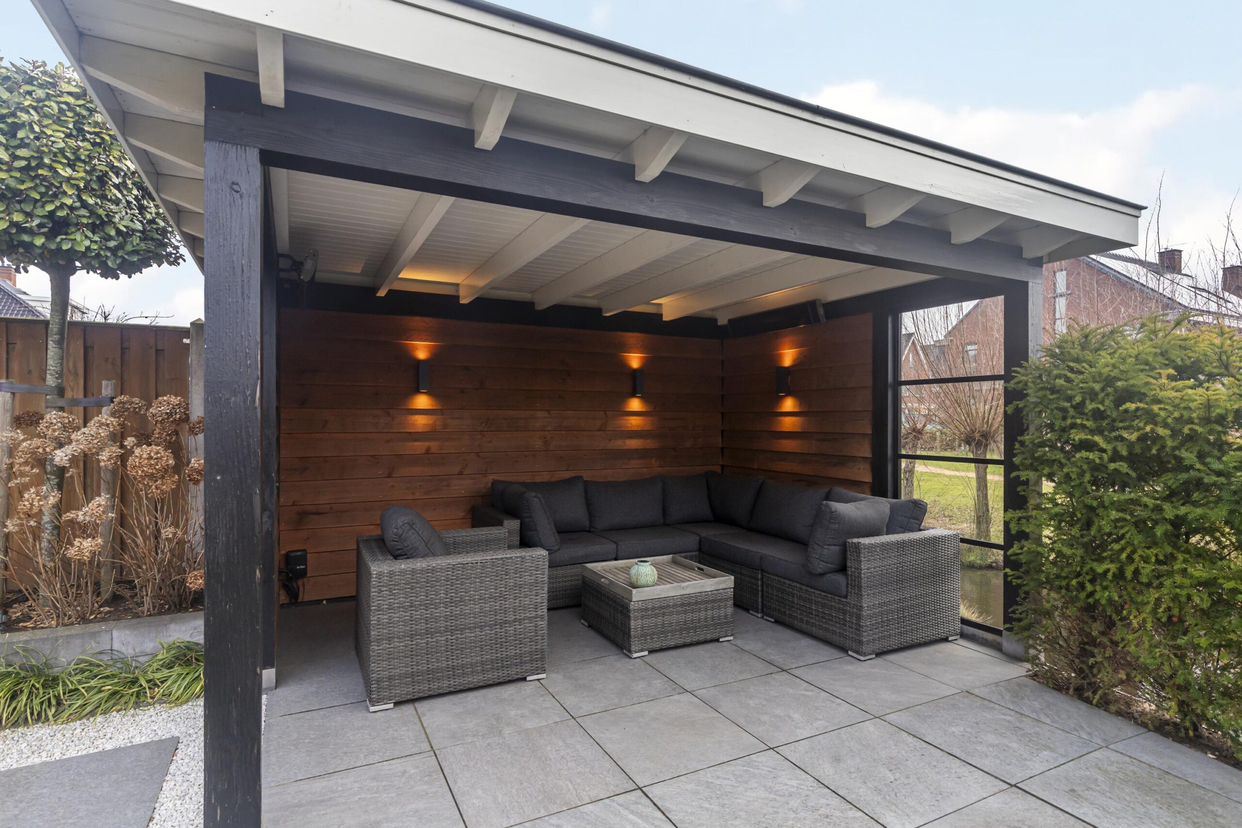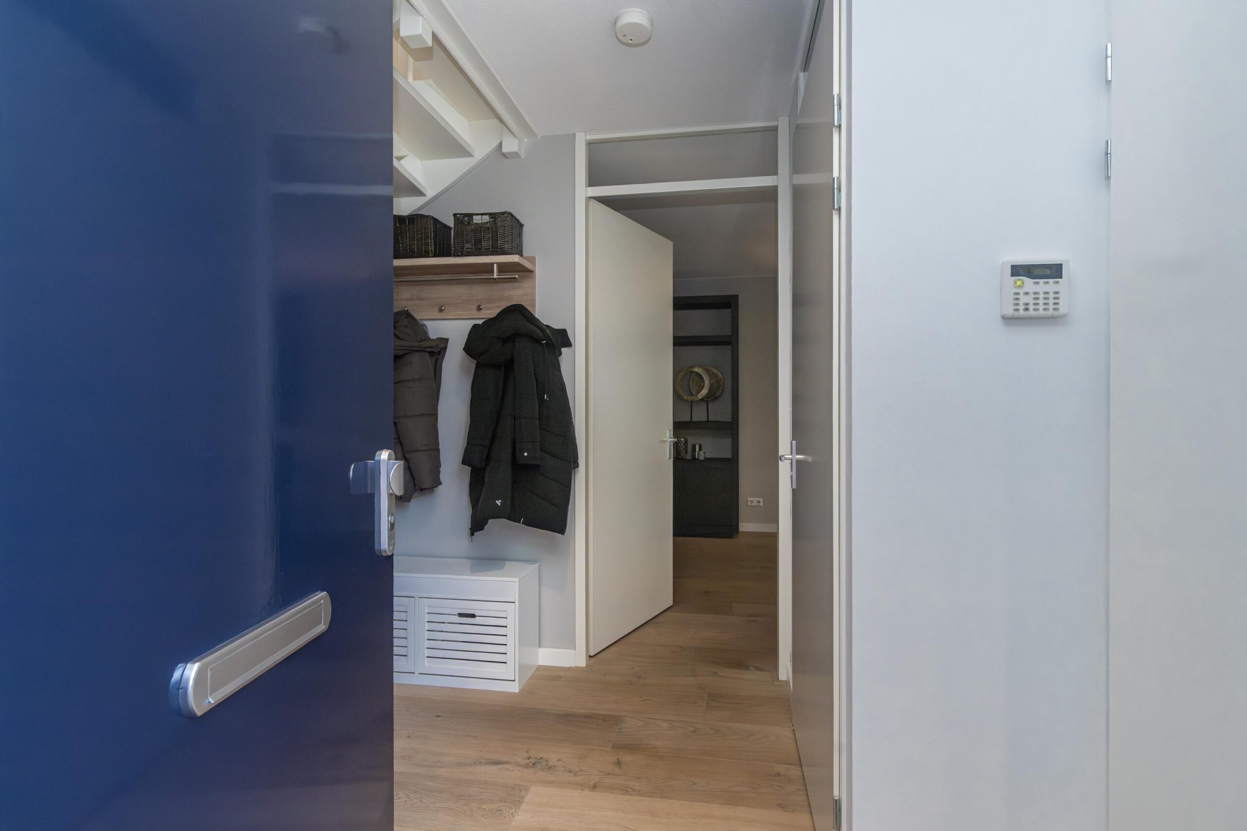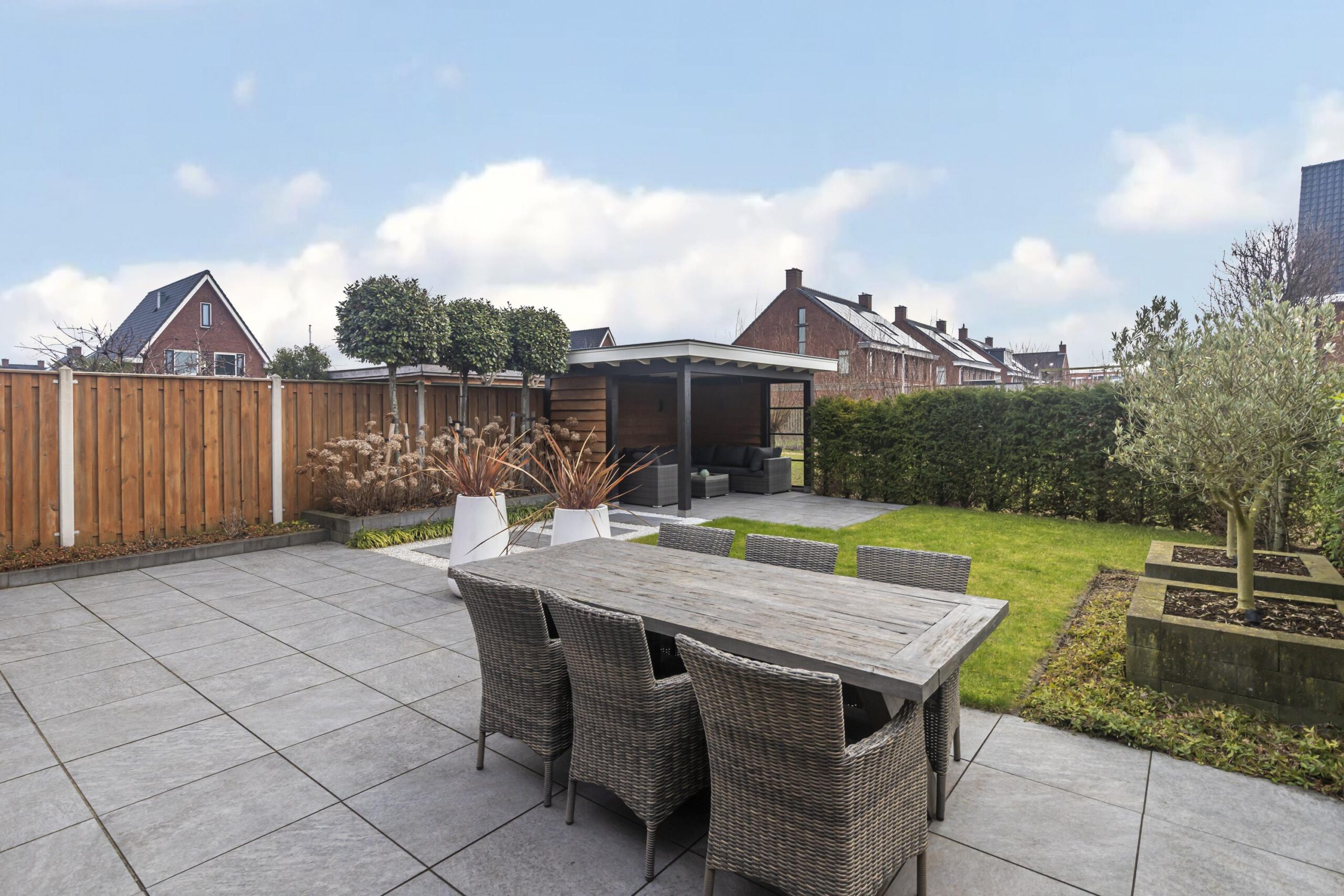Via de overdekte entree betreed je de hal met toilet, meterkast en trapopgang. Aan de voorzijde bevindt zich de luxe keuken, uitgevoerd met hoogwaardige inbouwapparatuur zoals een gaskookplaat, oven, vaatwasser en koel-vriescombinatie. De ruime woonkamer is voorzien van een strakke vloerafwerking met vloerverwarming, veel daglicht en openslaande deuren naar de tuin, waardoor binnen en buiten mooi met elkaar verbonden zijn.