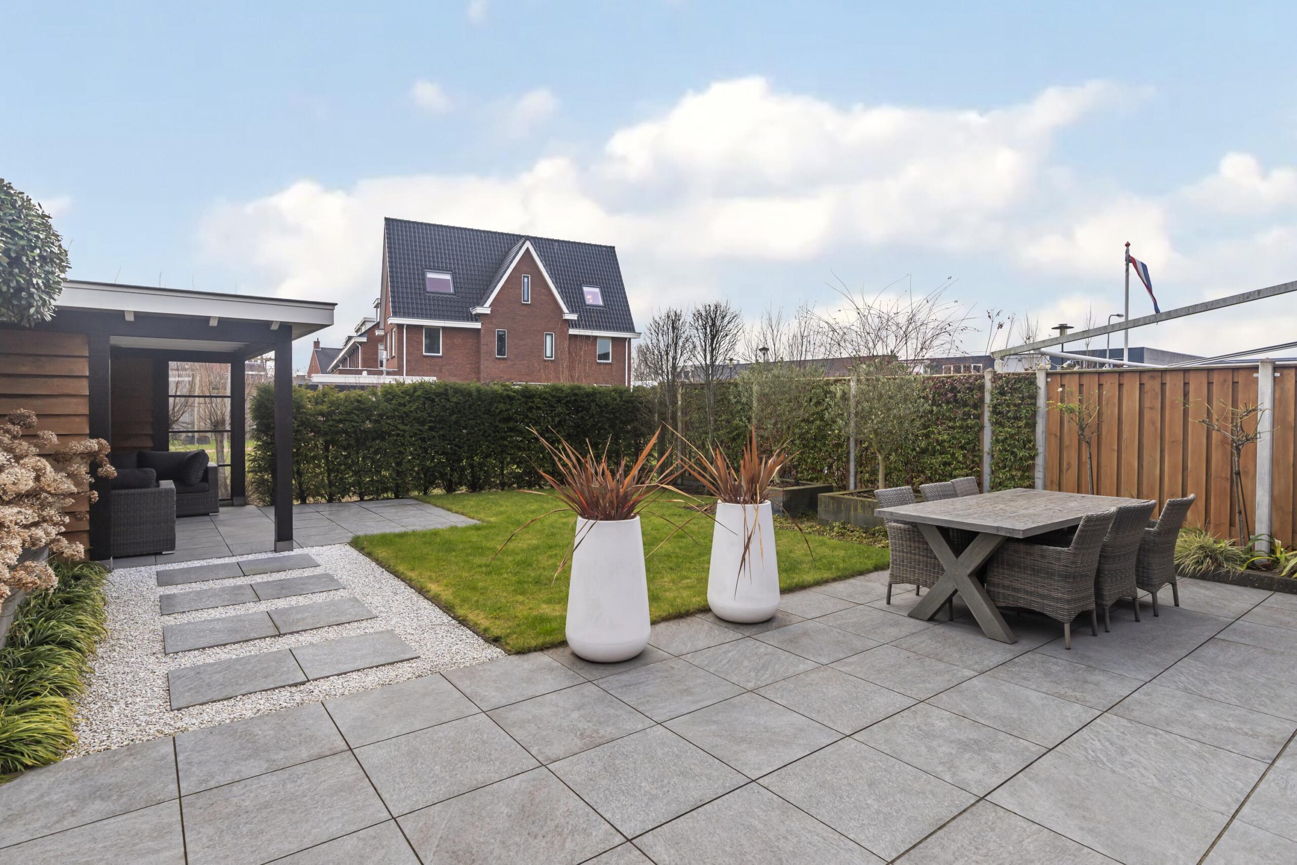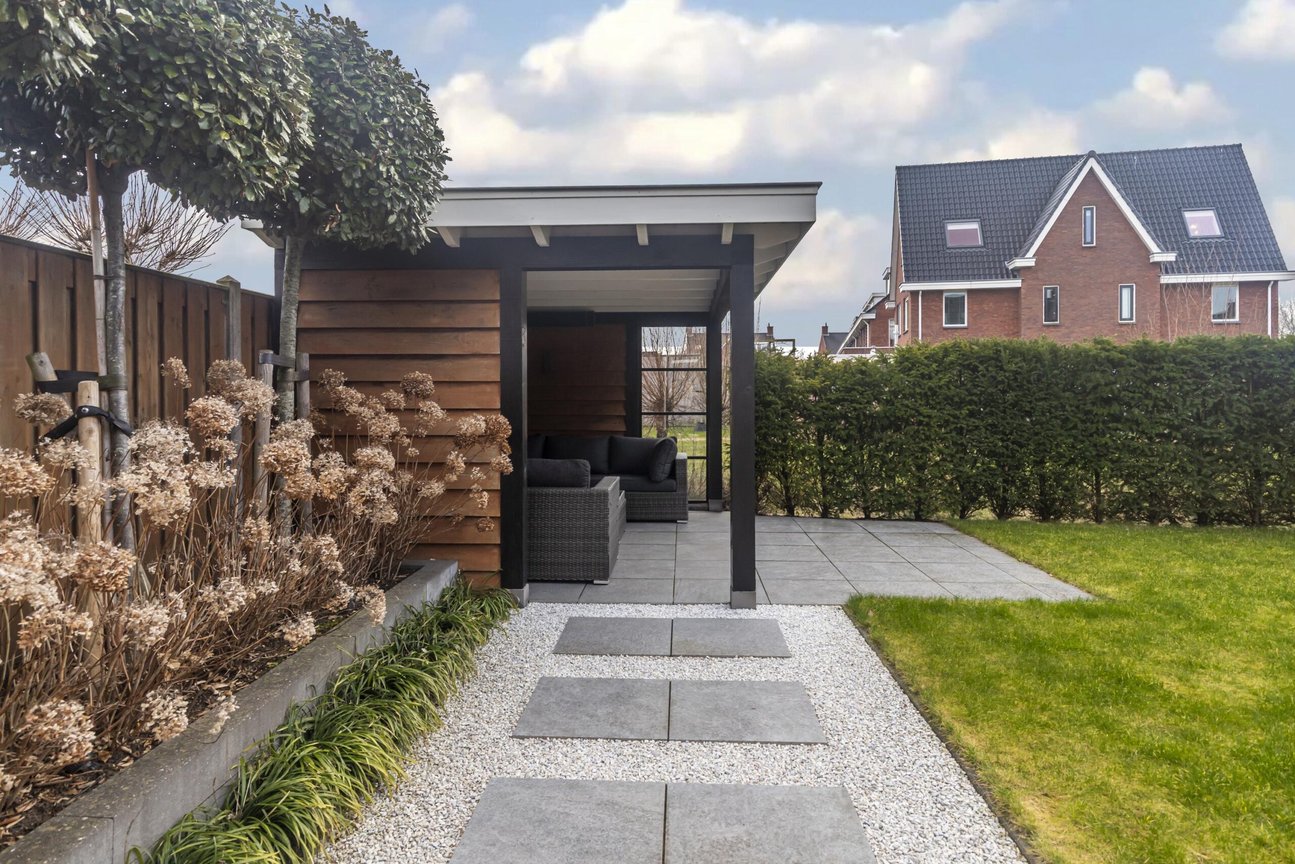 De tuin op het zuidoosten is een heerlijke plek om van het buitenleven te genieten. Onder de veranda zit je hier beschut en comfortabel – ideaal voor lange zomeravonden of een ontspannen moment in de schaduw. Parkeren op eigen terrein biedt dagelijks gemak en daarnaast beschikt de woning over een garage, perfect voor het stallen van de auto, fietsen of extra opslagruimte.