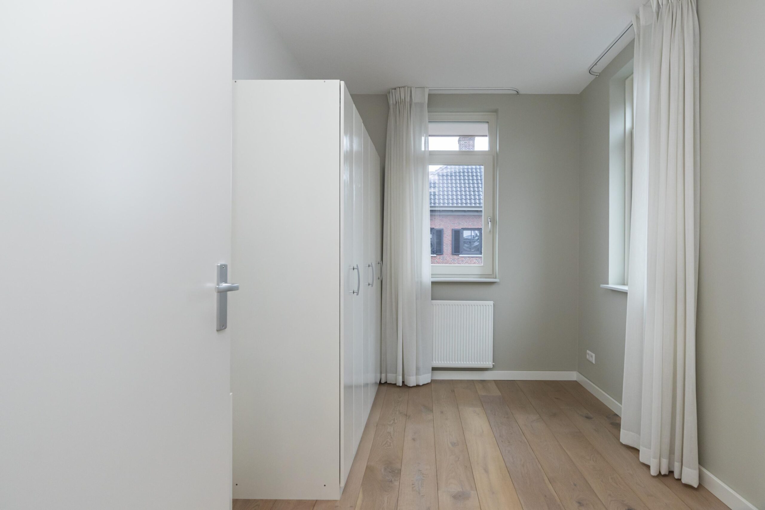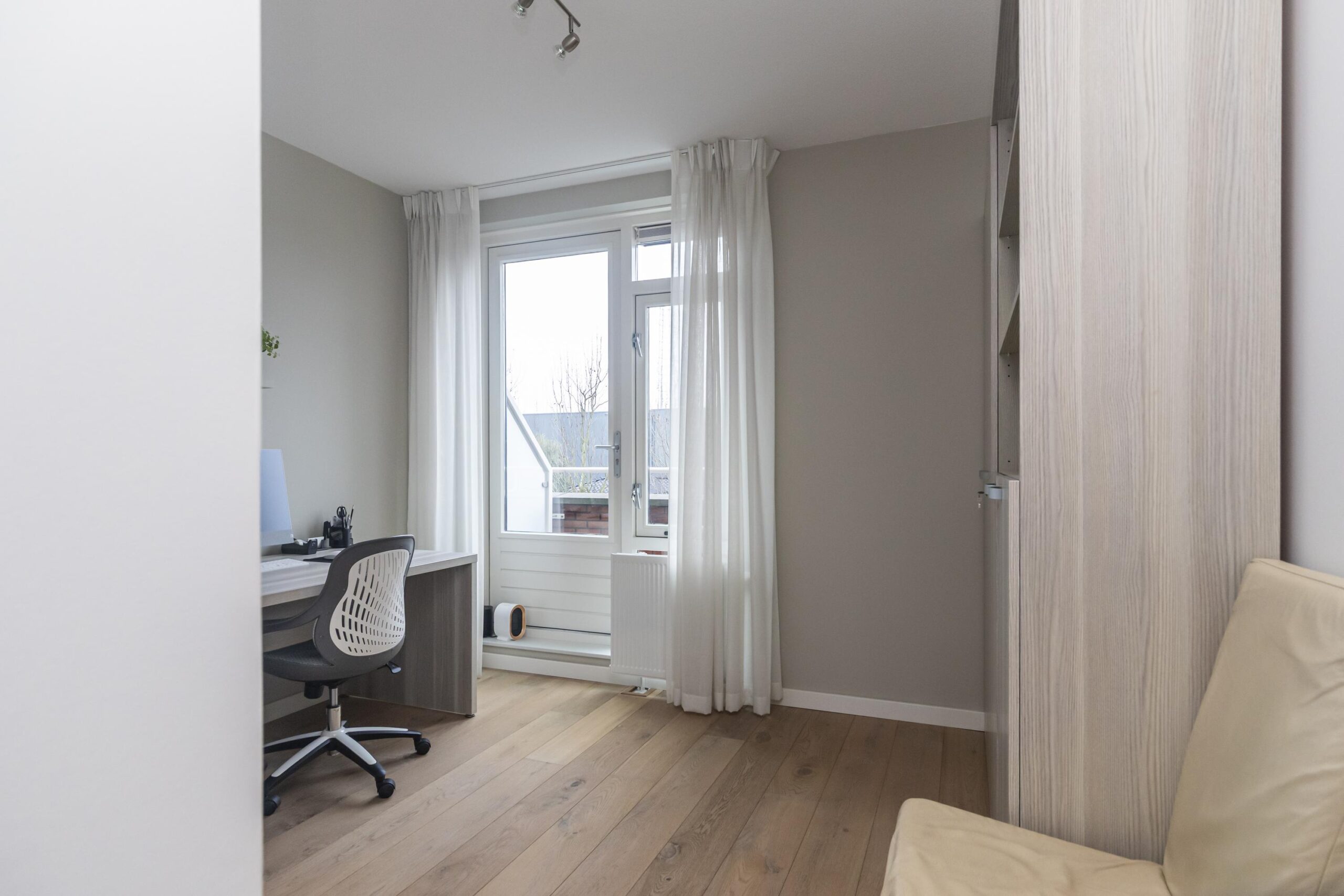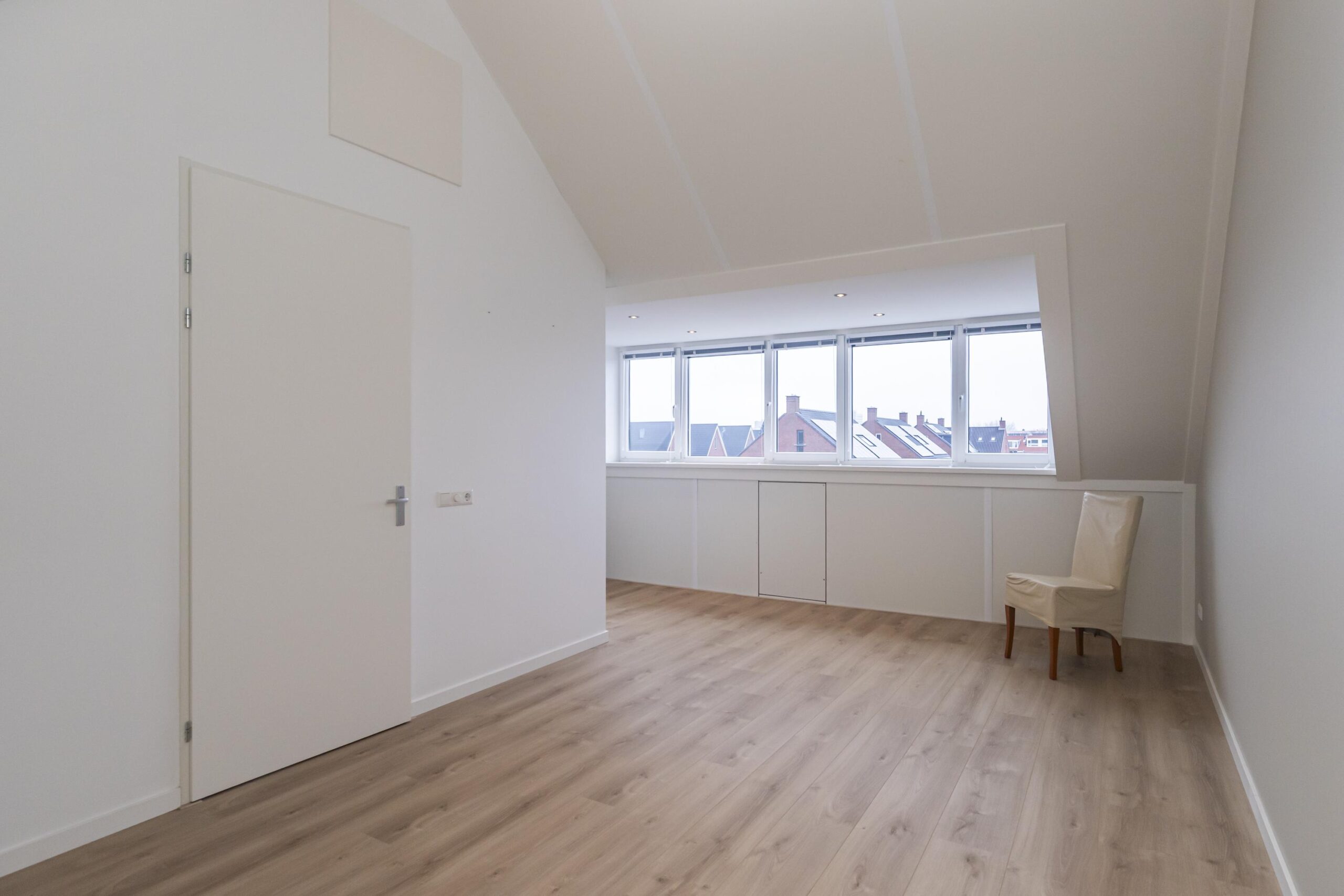 De overloop geeft toegang tot drie comfortabel bemeten slaapkamers. Aan de voorzijde bevinden zich twee slaapkamers, waarvan één met een balkon. De moderne badkamer is hoogwaardig afgewerkt en beschikt over een ligbad, een ruime inloopdouche, een toilet en een strak wastafelmeubel. De slaapkamer aan de achterzijde vormt een echte master bedroom en is voorzien van een praktische inloopkast. De afwerking is consistent hoog, met nette vloerafwerking en veel daglicht.