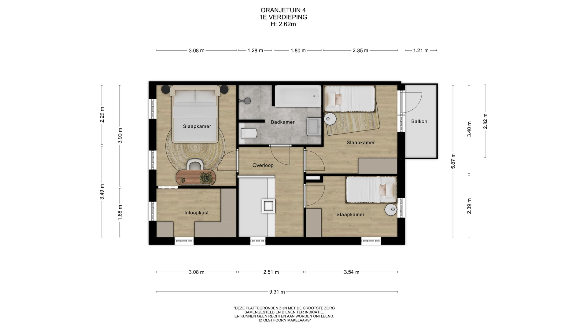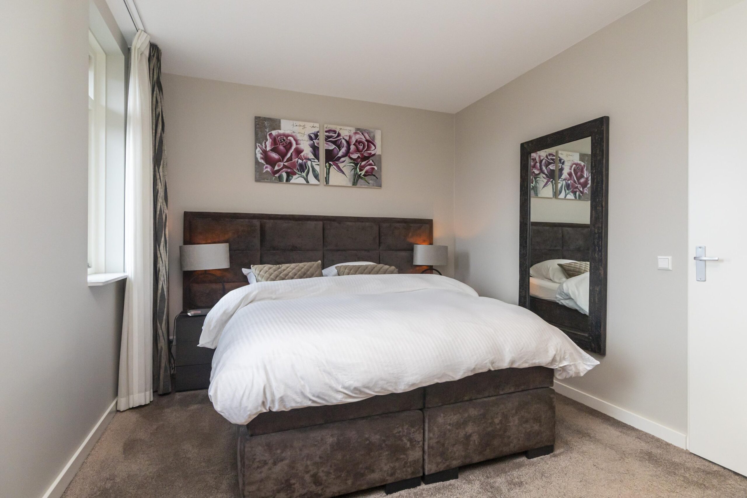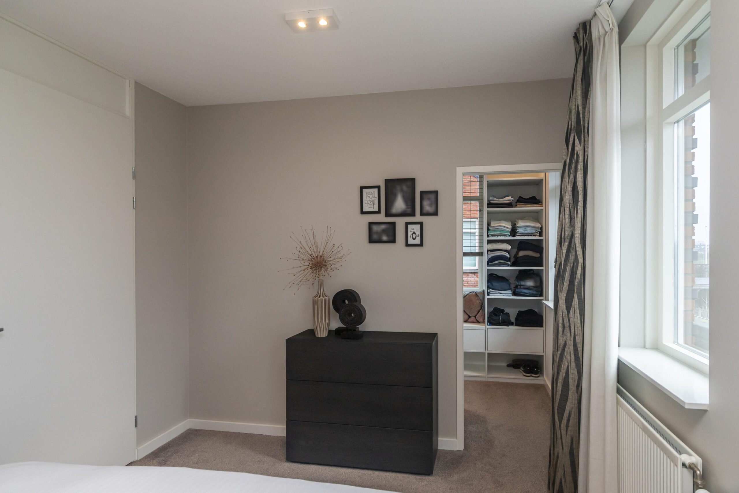 De overloop geeft toegang tot drie comfortabel bemeten slaapkamers. Aan de voorzijde bevinden zich twee slaapkamers, waarvan één met een balkon. De moderne badkamer is hoogwaardig afgewerkt en beschikt over een ligbad, een ruime inloopdouche, een toilet en een strak wastafelmeubel. De slaapkamer aan de achterzijde vormt een echte master bedroom en is voorzien van een praktische inloopkast. De afwerking is consistent hoog, met nette vloerafwerking en veel daglicht.