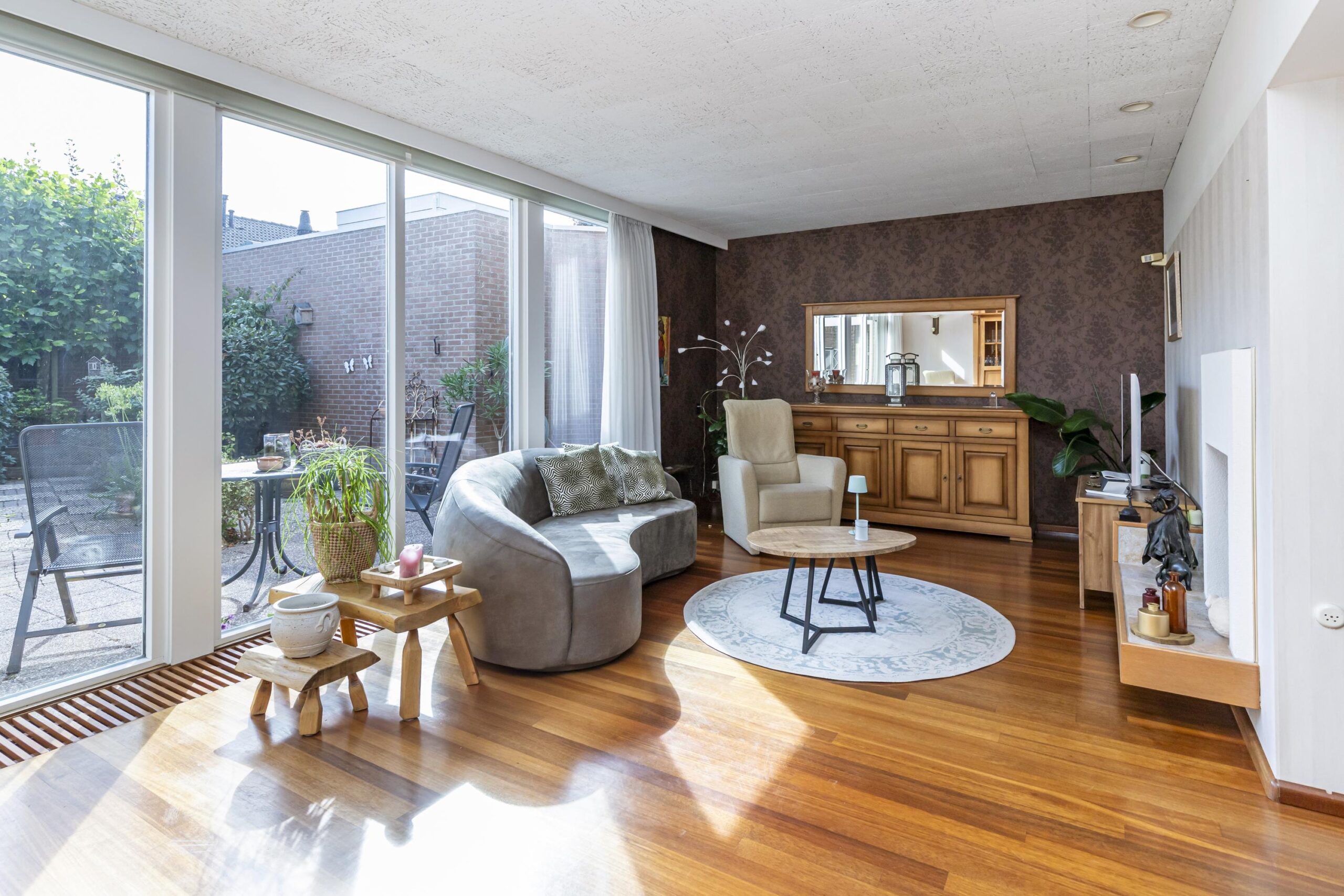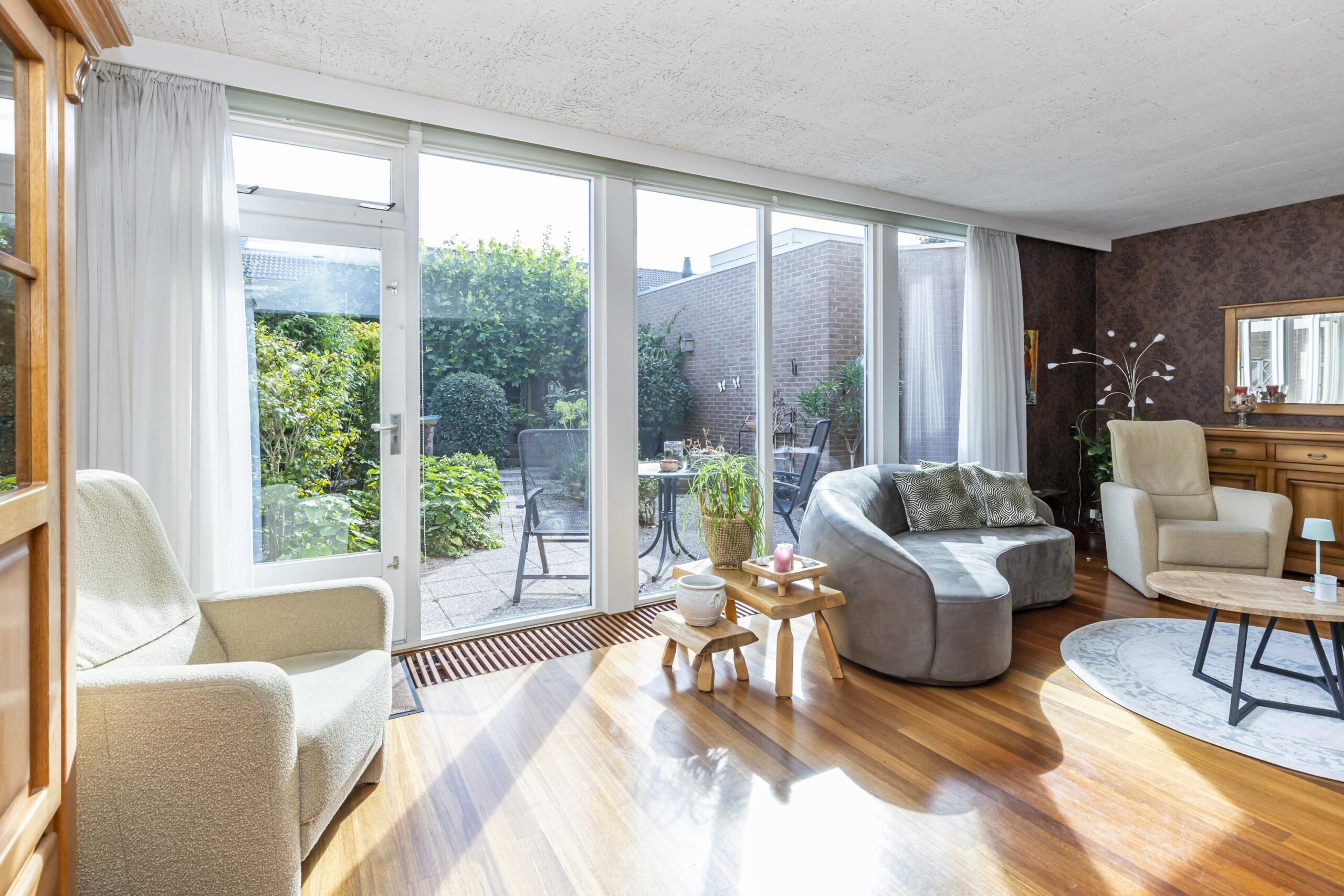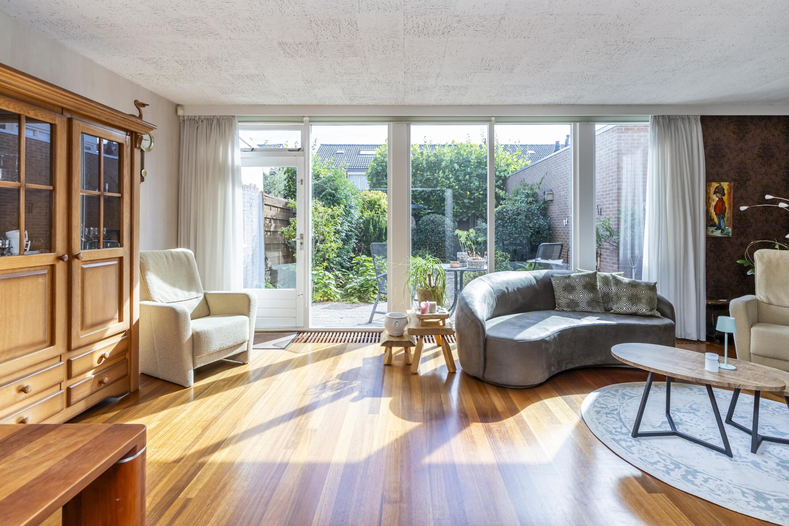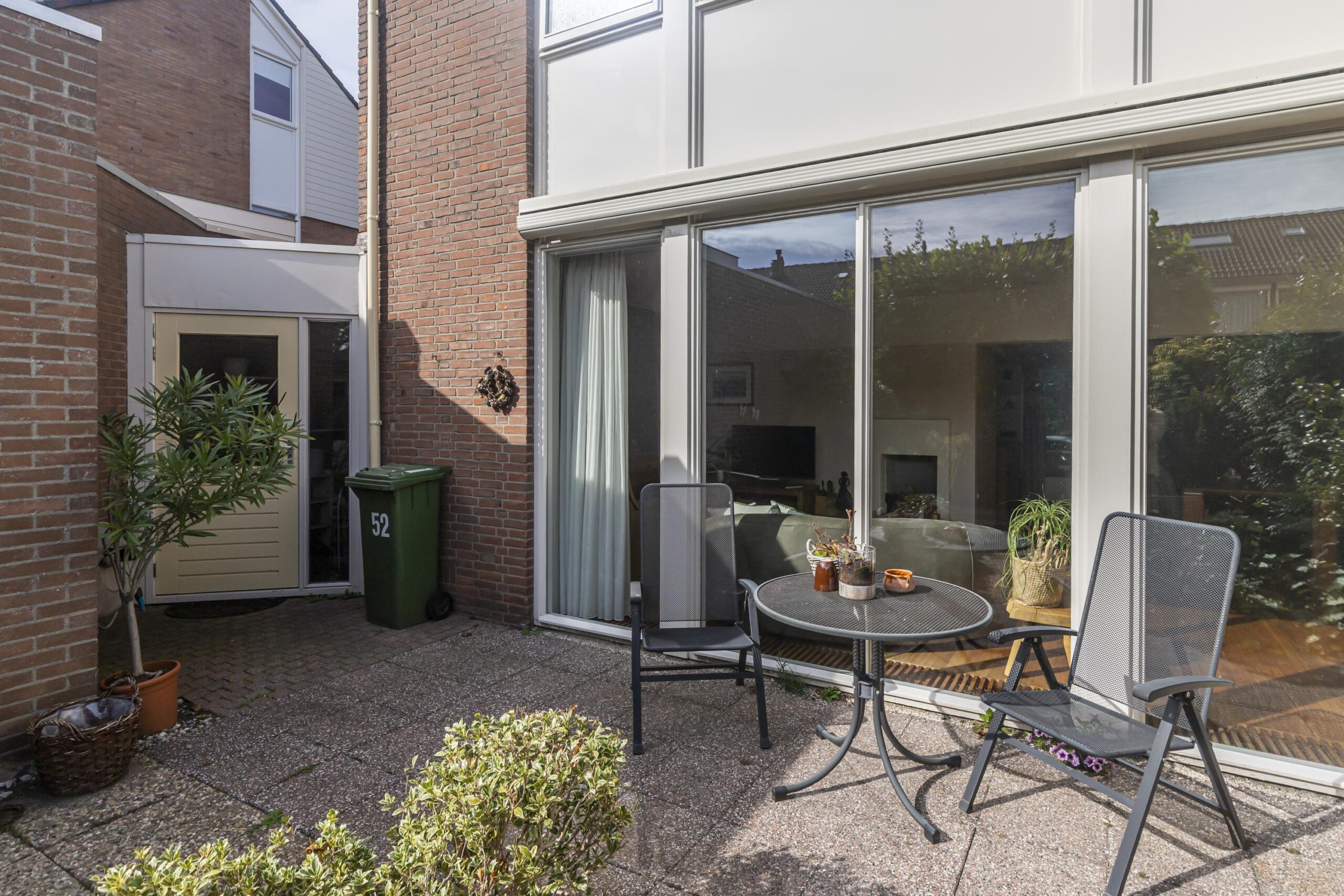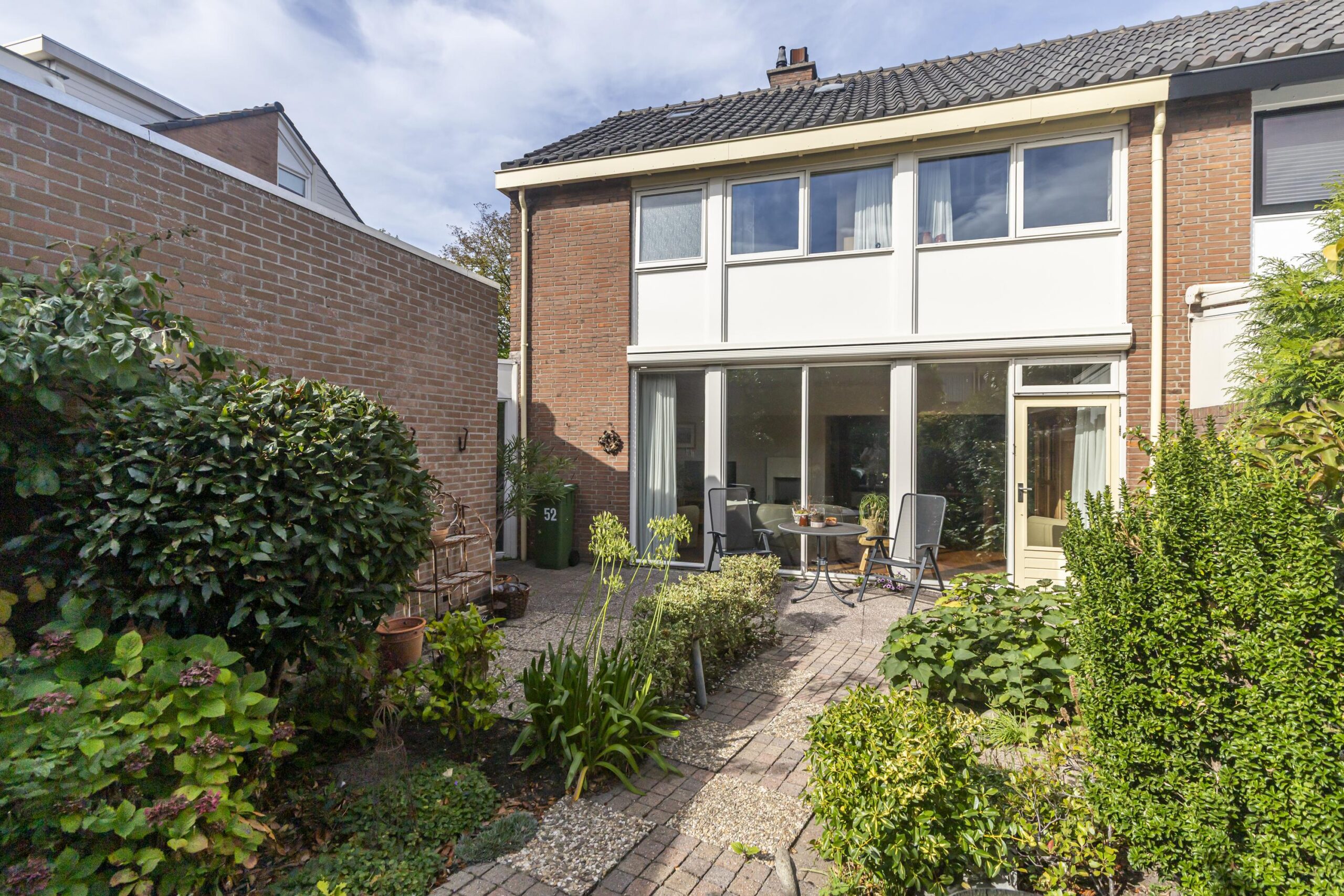 De tuin, gelegen op het zuiden, heeft het hele jaar door veel zonlicht, waardoor het een heerlijk lichte en zonnige buitenruimte is. Het is een plek waar je volop kunt genieten van de zon, terwijl je tegelijkertijd veel privacy behoudt. De gezellige tuin biedt voldoende ruimte voor een terras, groene elementen en is perfect voor rustige momenten of gezellige bijeenkomsten met vrienden en familie.