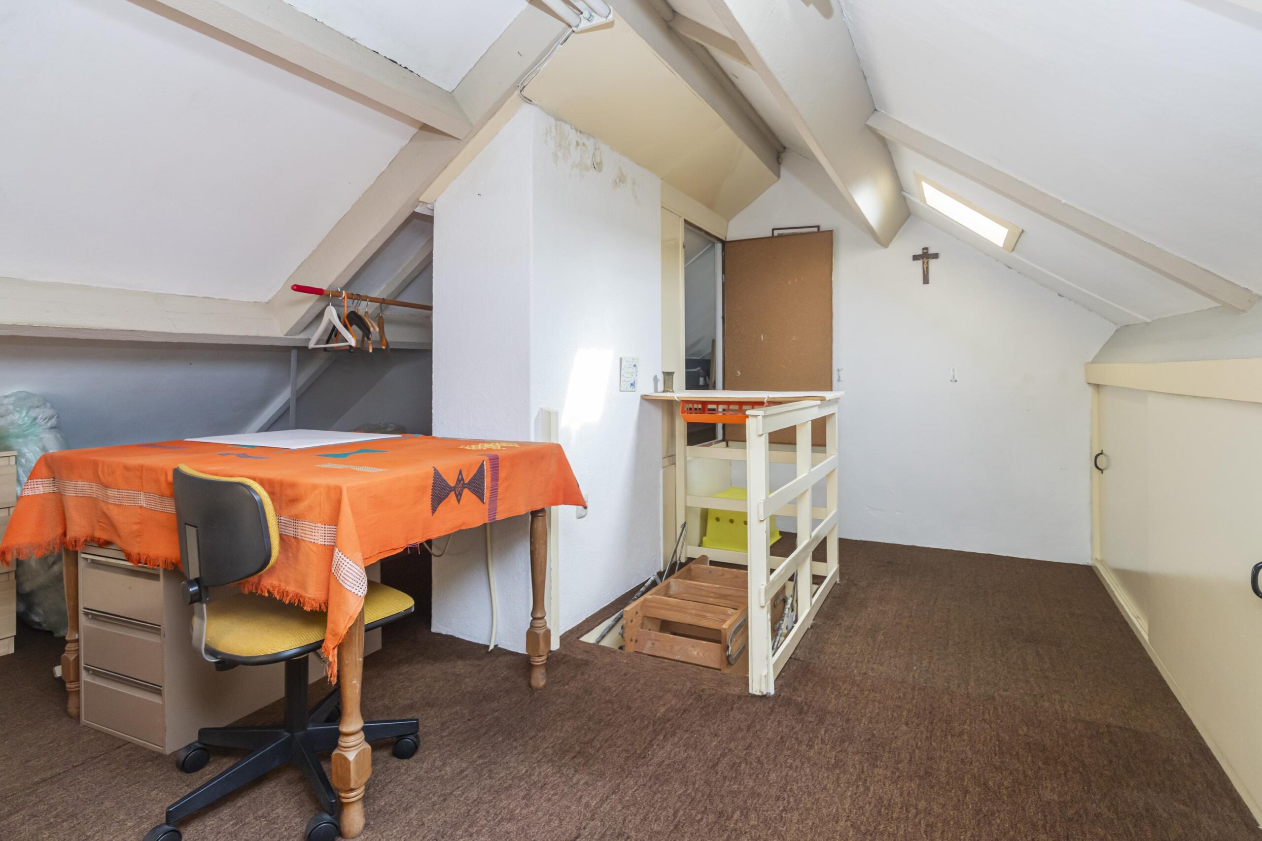 De zolder, bereikbaar via een vlizotrap, biedt een zee aan mogelijkheden. Dankzij de twee dakramen is de ruimte lekker licht, en je kunt het naar eigen wens invullen. Of je nu extra opslagruimte nodig hebt, of de ruimte wilt gebruiken voor een hobby of werkplek, de zolder biedt volop potentieel.