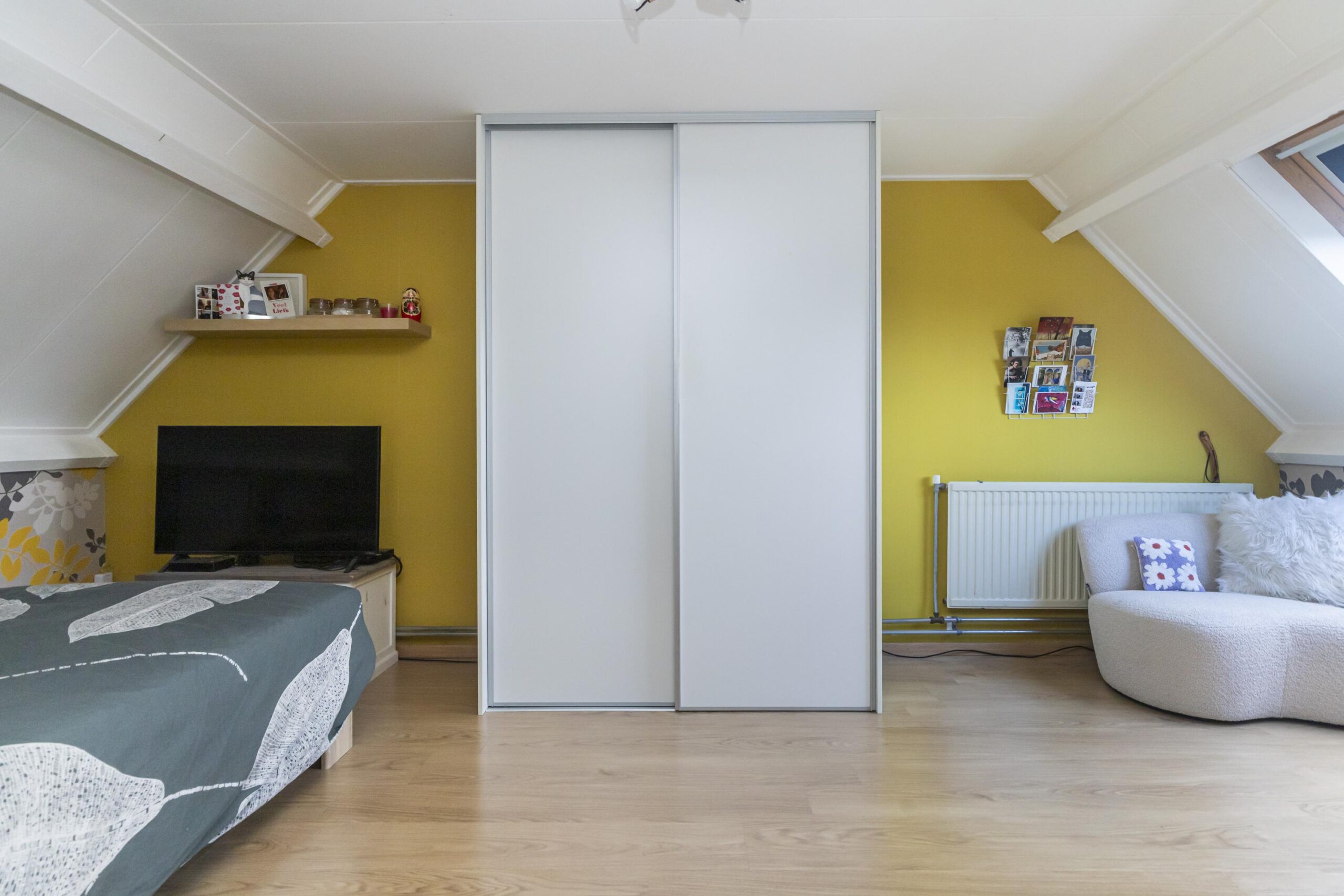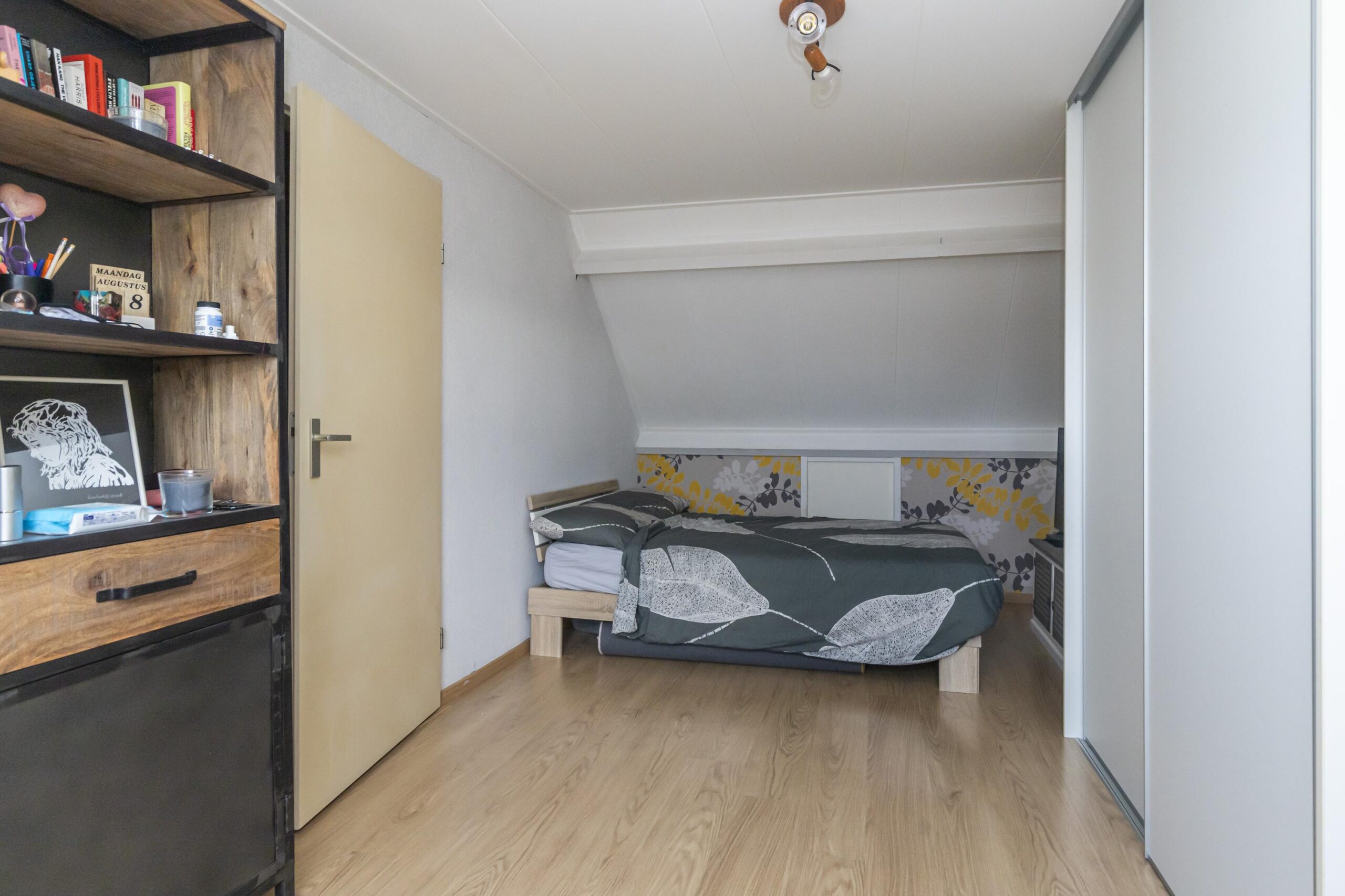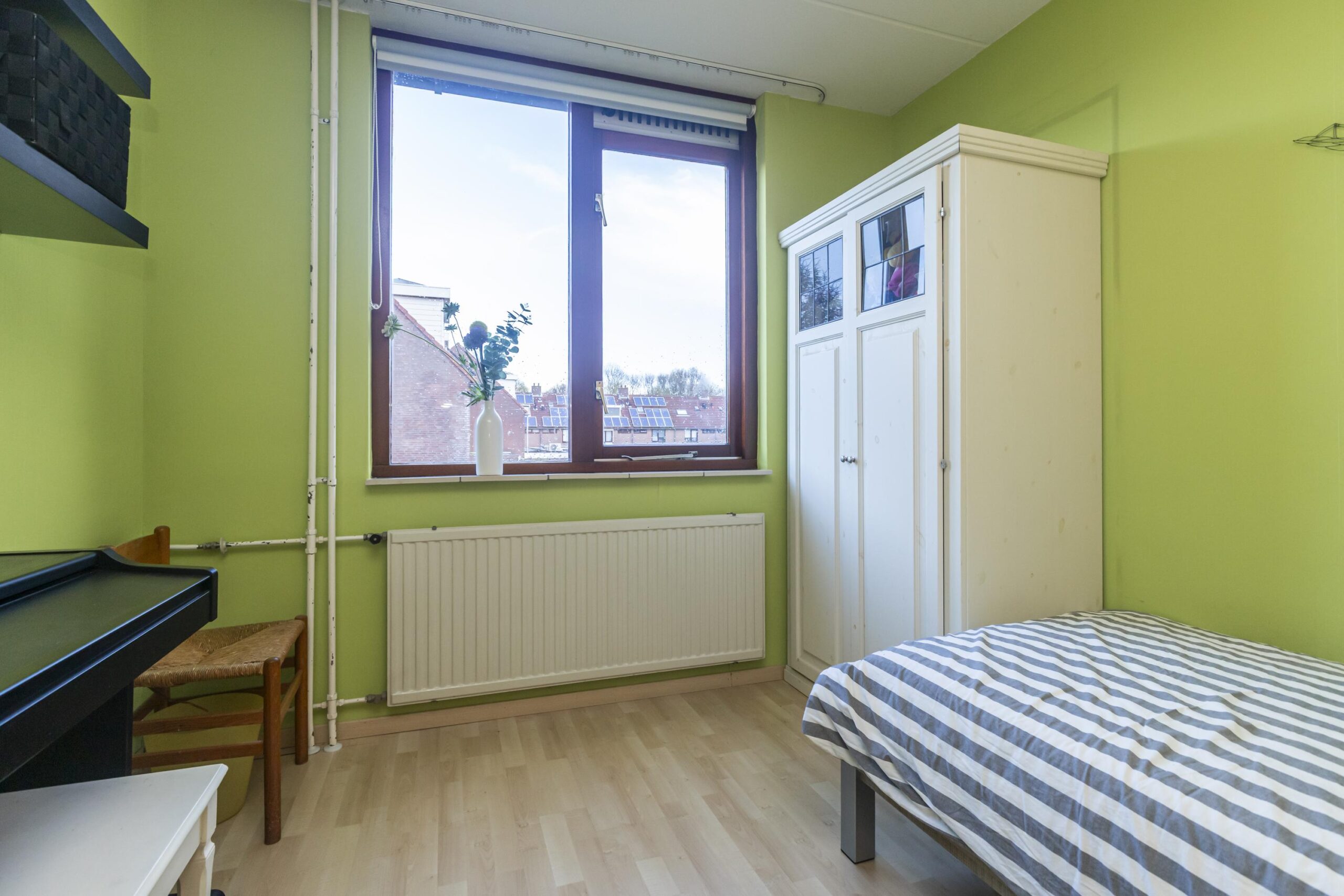 De tweede verdieping is een ruime verdieping die momenteel als vierde slaapkamer fungeert, maar ook uitstekend geschikt is als werkruimte of hobbykamer. Hier vind je tevens de CV-ketel en de aansluitingen voor de wasmachine en droger.