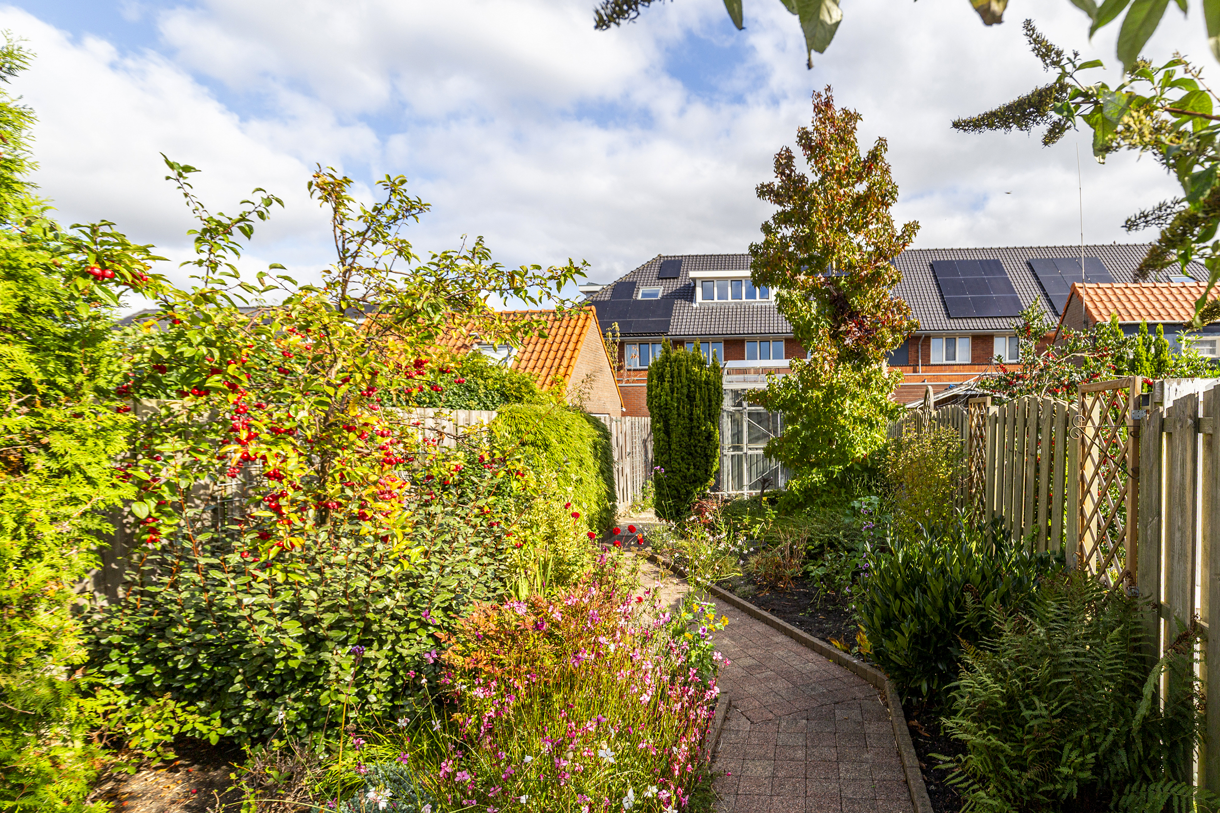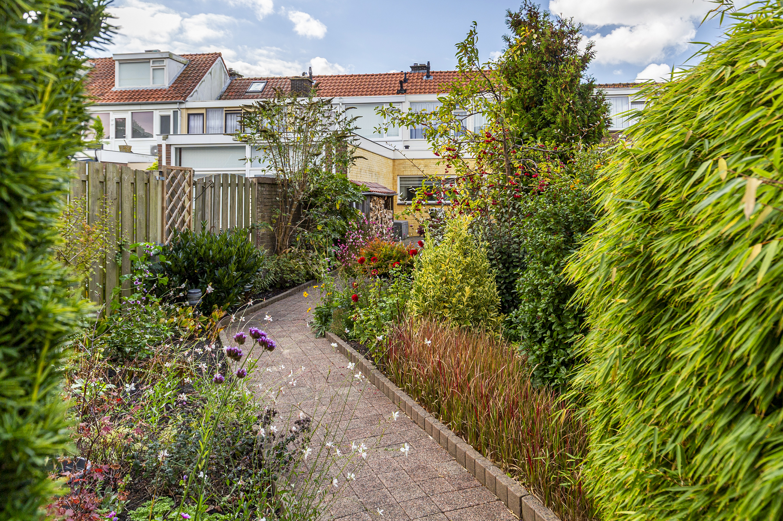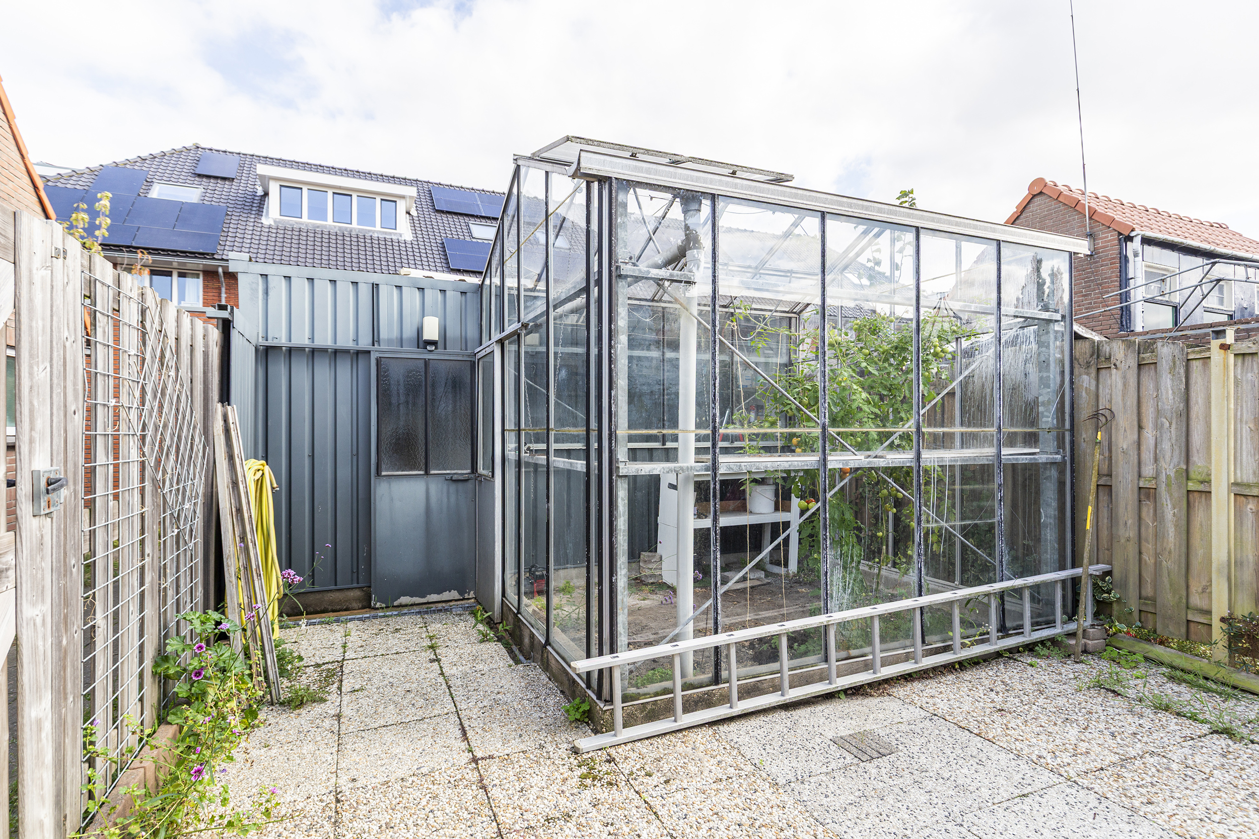 De woning heeft een achtertuin op het noordoosten met een oppervlakte van 147 m², waar je heerlijk kunt genieten van de buitenlucht. De tuin is goed onderhouden en biedt ruimte voor een gezellig zitgedeelte of een moestuin. De voortuin is verzorgd aangelegd. Daarnaast is er een vrijstaande berging voorzien van elektra, perfect voor opslag of een werkplek.