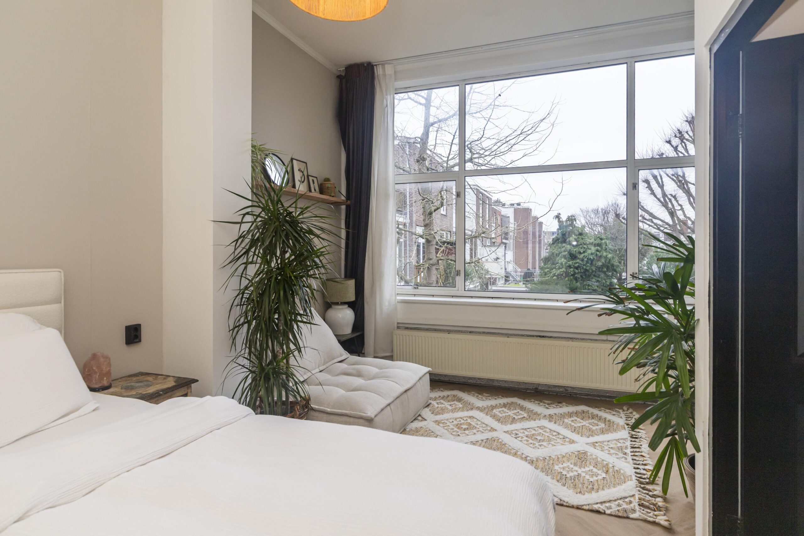 Aan de rustige achterzijde bevinden zich twee ruime slaapkamers. De hoofdslaapkamer is uitzonderlijk ruim en biedt veel privacy. De tweede slaapkamer beschikt over een eigen achterbalkon, een fijne extra buitenruimte aan de koele zijde van de woning.