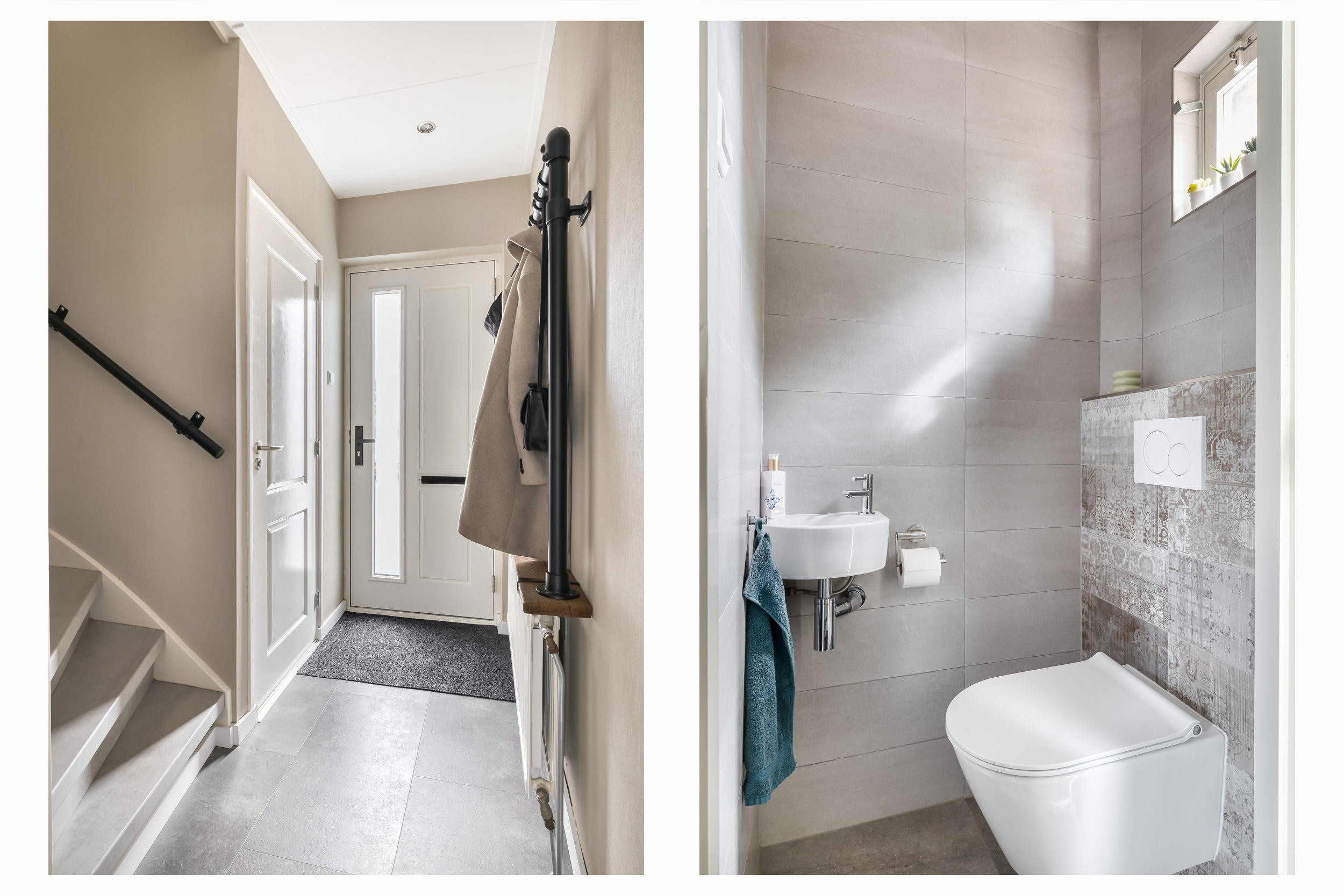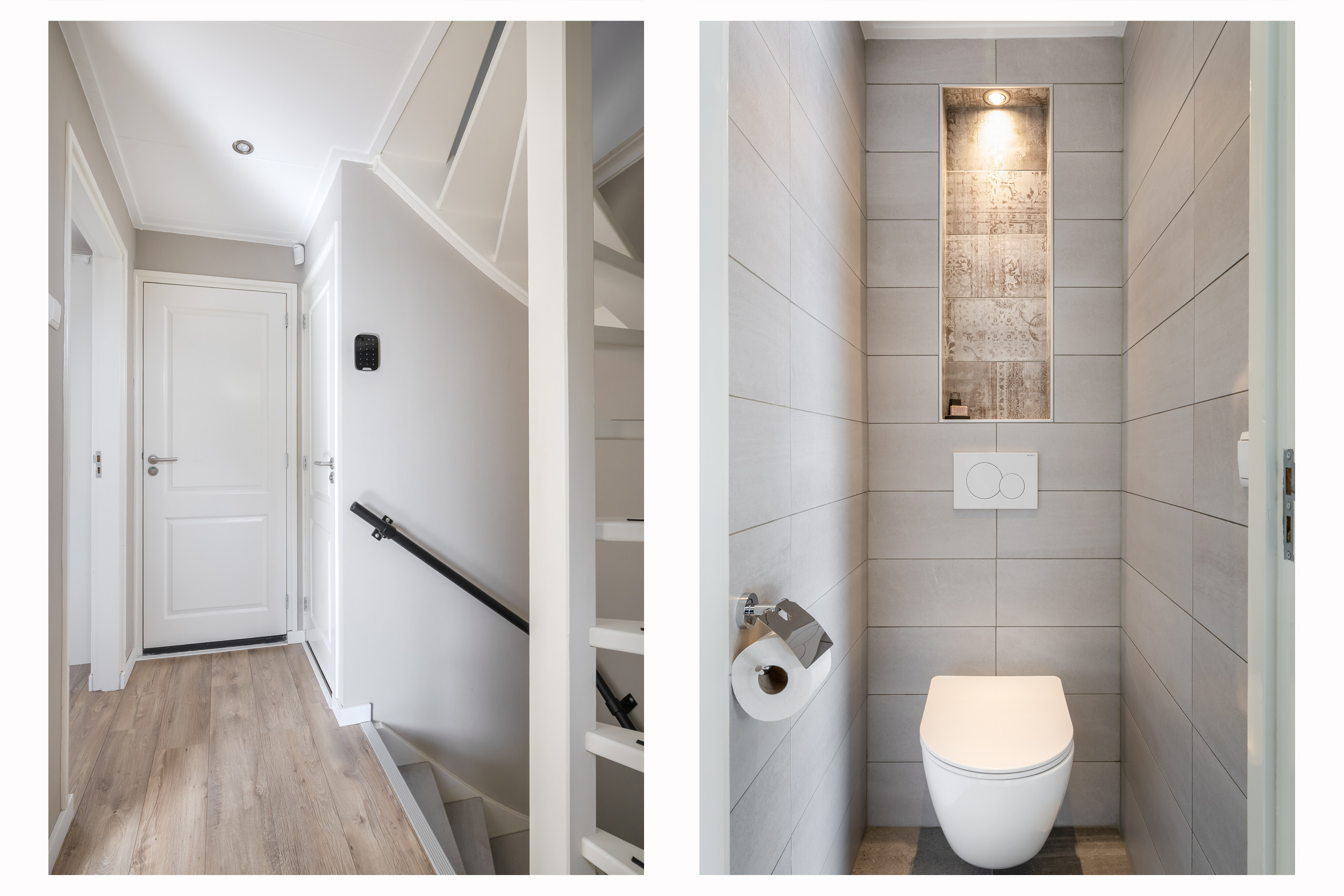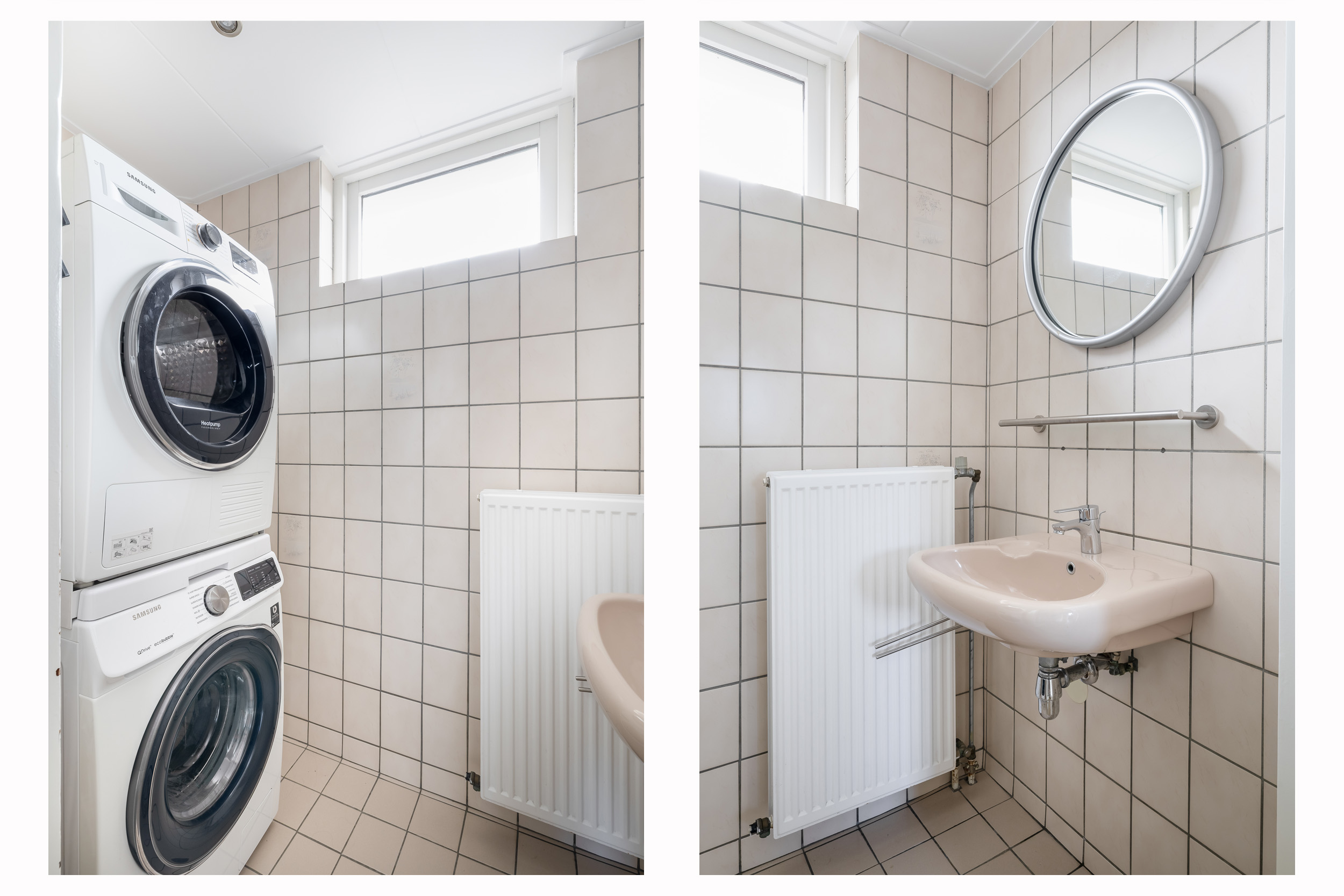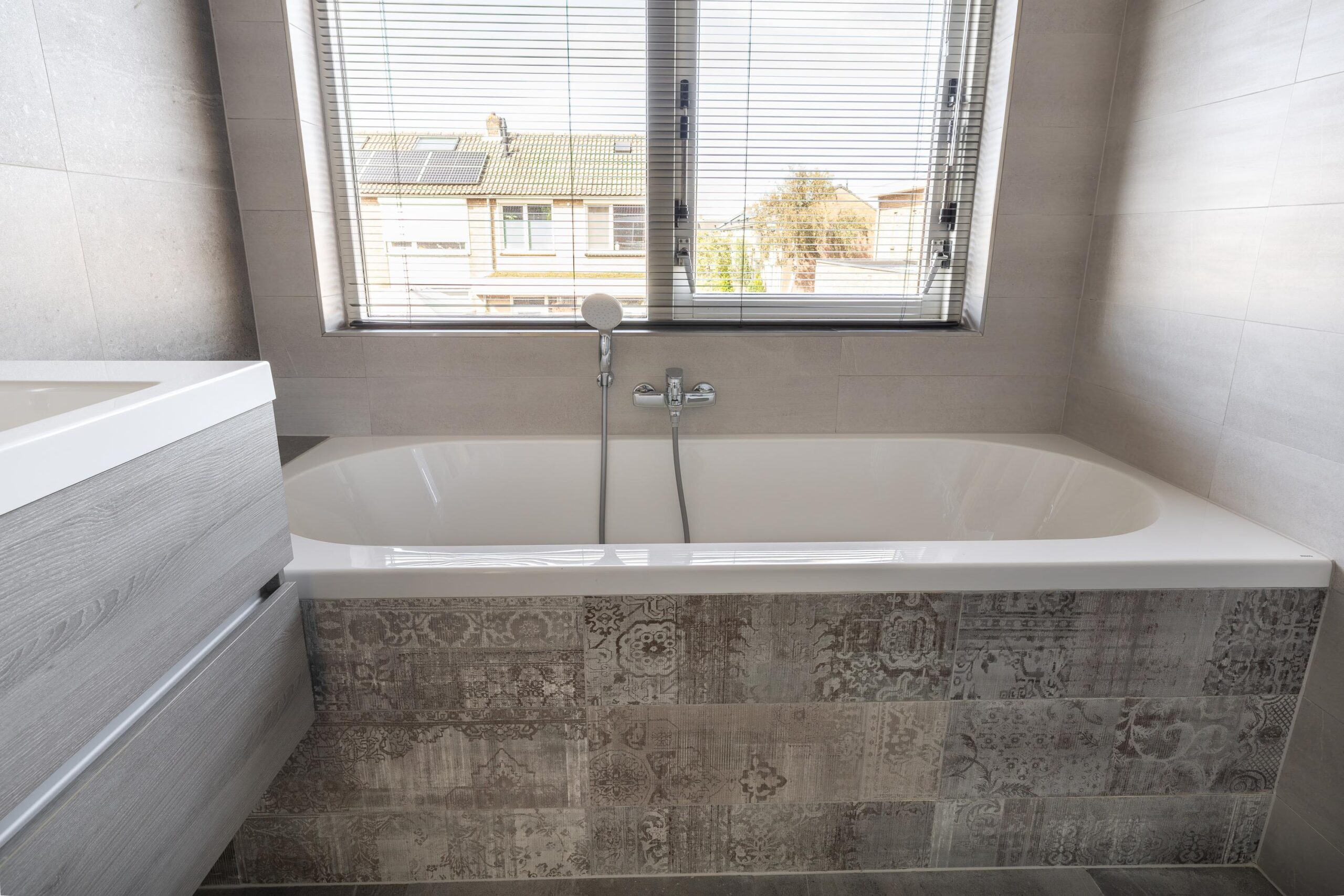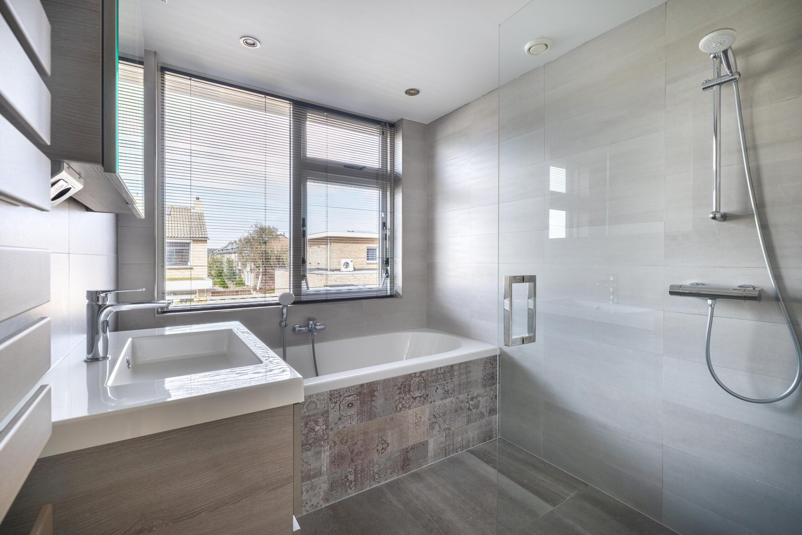 Op de eerste verdieping zijn twee ruime slaapkamers aanwezig, één aan de voorzijde en één aan de achterzijde. De badkamer is modern uitgevoerd met inloopdouche, wastafelmeubel en een toilet. De voormalige badkamer wordt nu gebruikt als praktische wasruimte met wasbak.