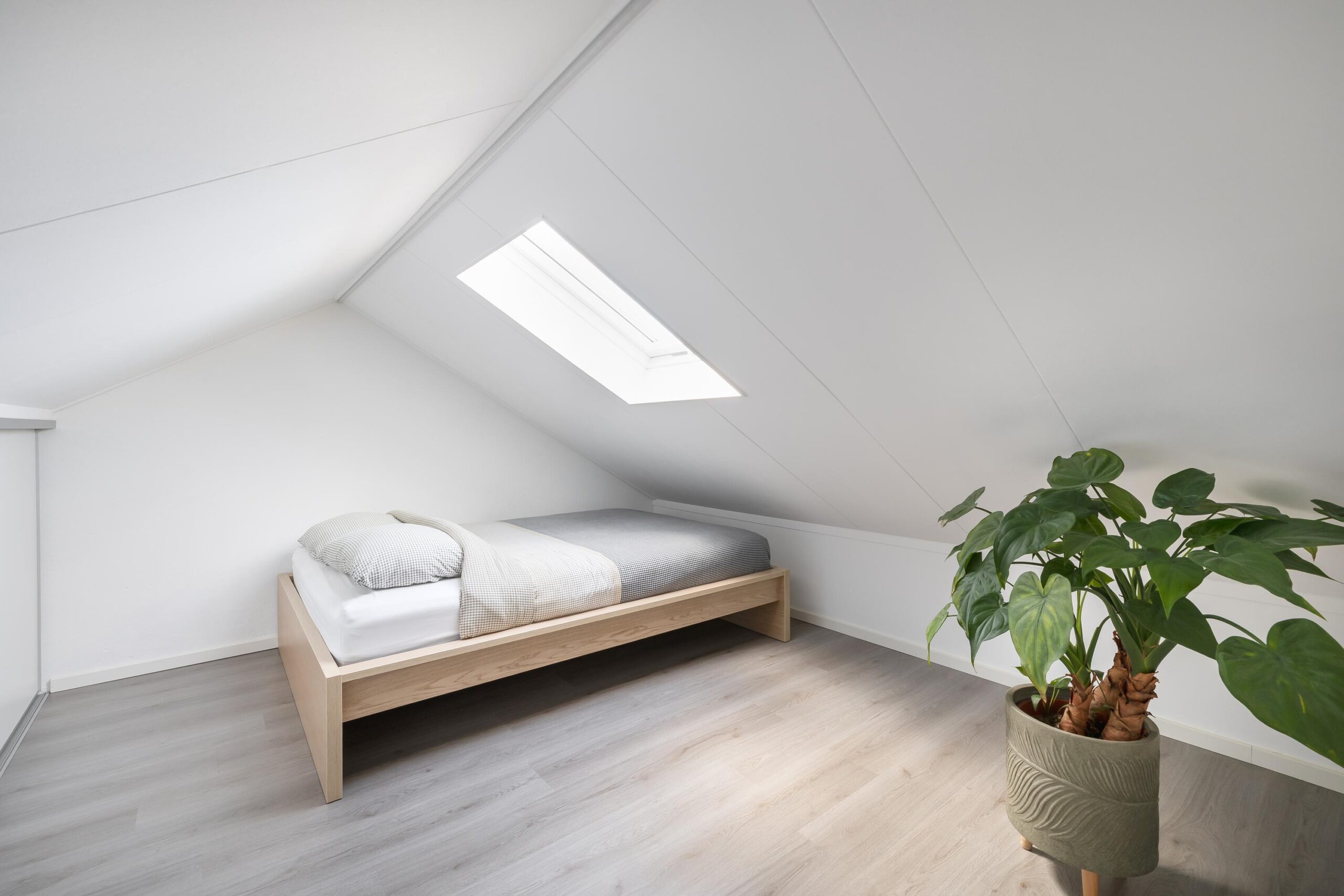 Via een vaste trap bereik je de zolder, waar in 2020 extra isolatie is aangebracht (170 mm steenwol). Dankzij het dakraam is er daglicht aanwezig en biedt deze verdieping mogelijkheden voor een extra slaapkamer of werkruimte. Hier staat ook de cv-installatie (2011).