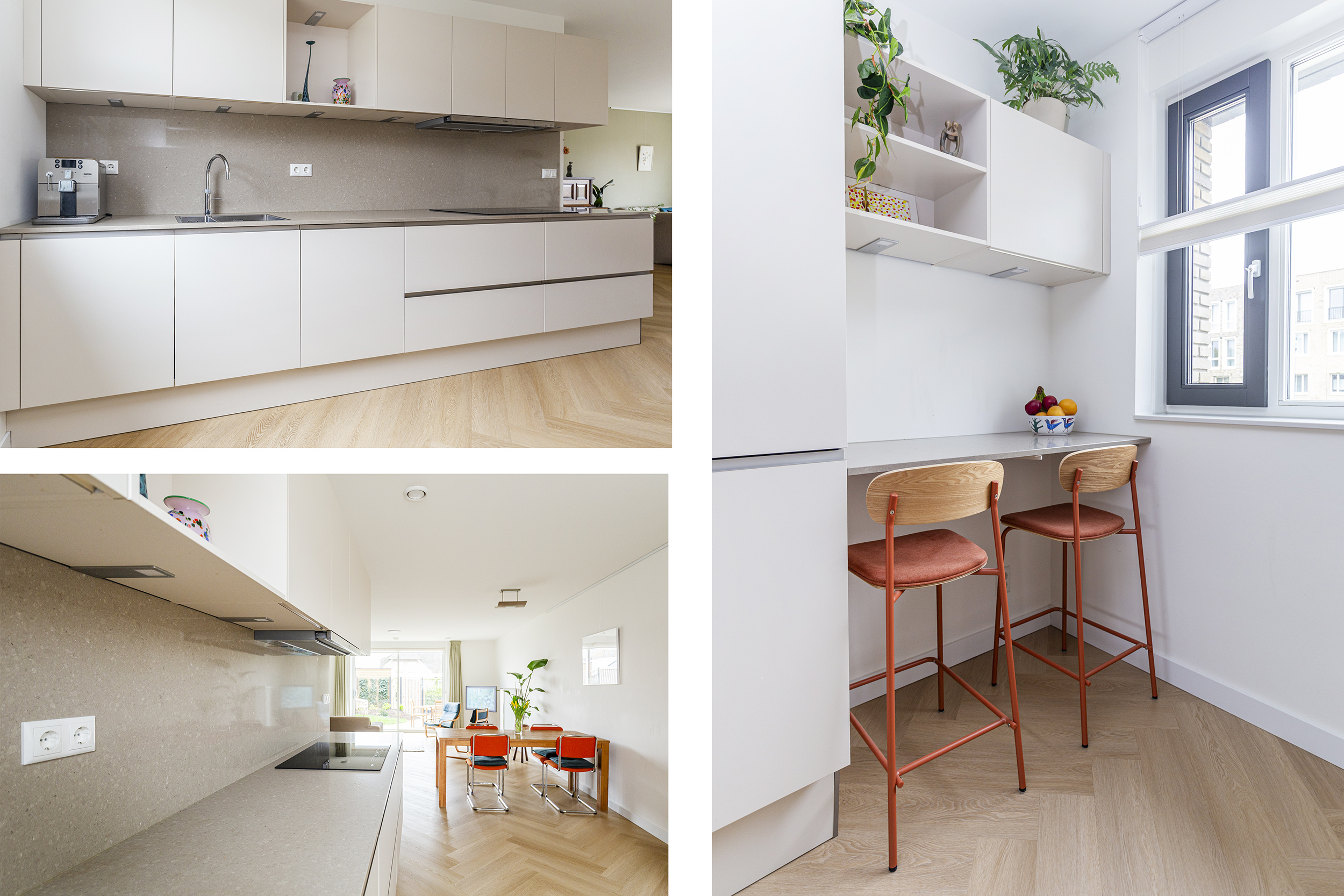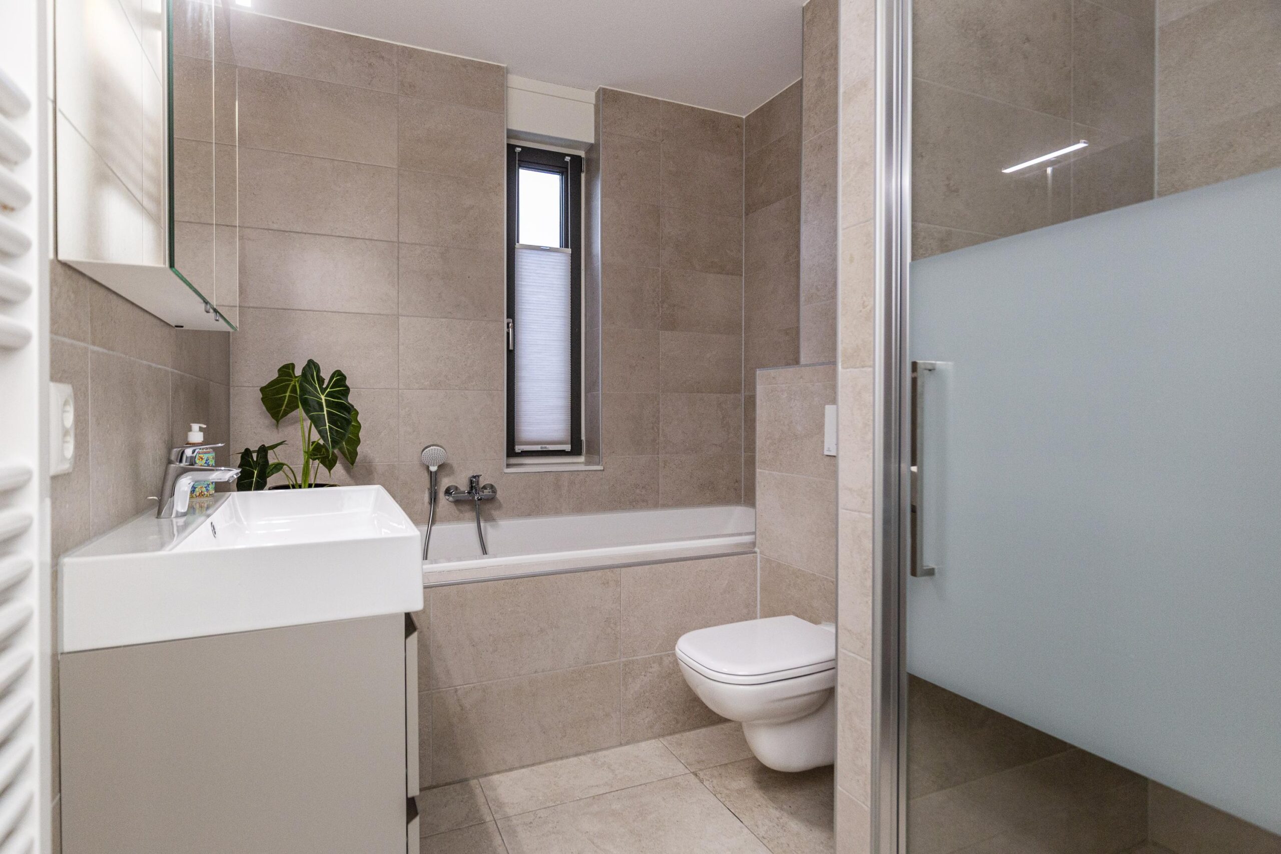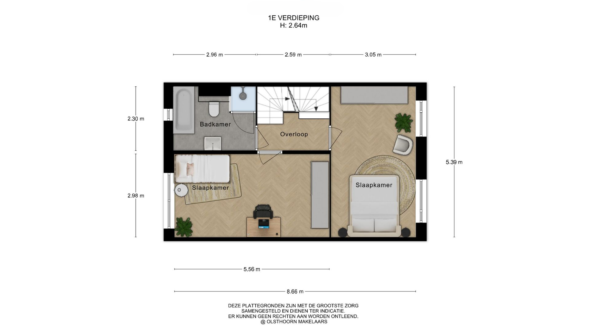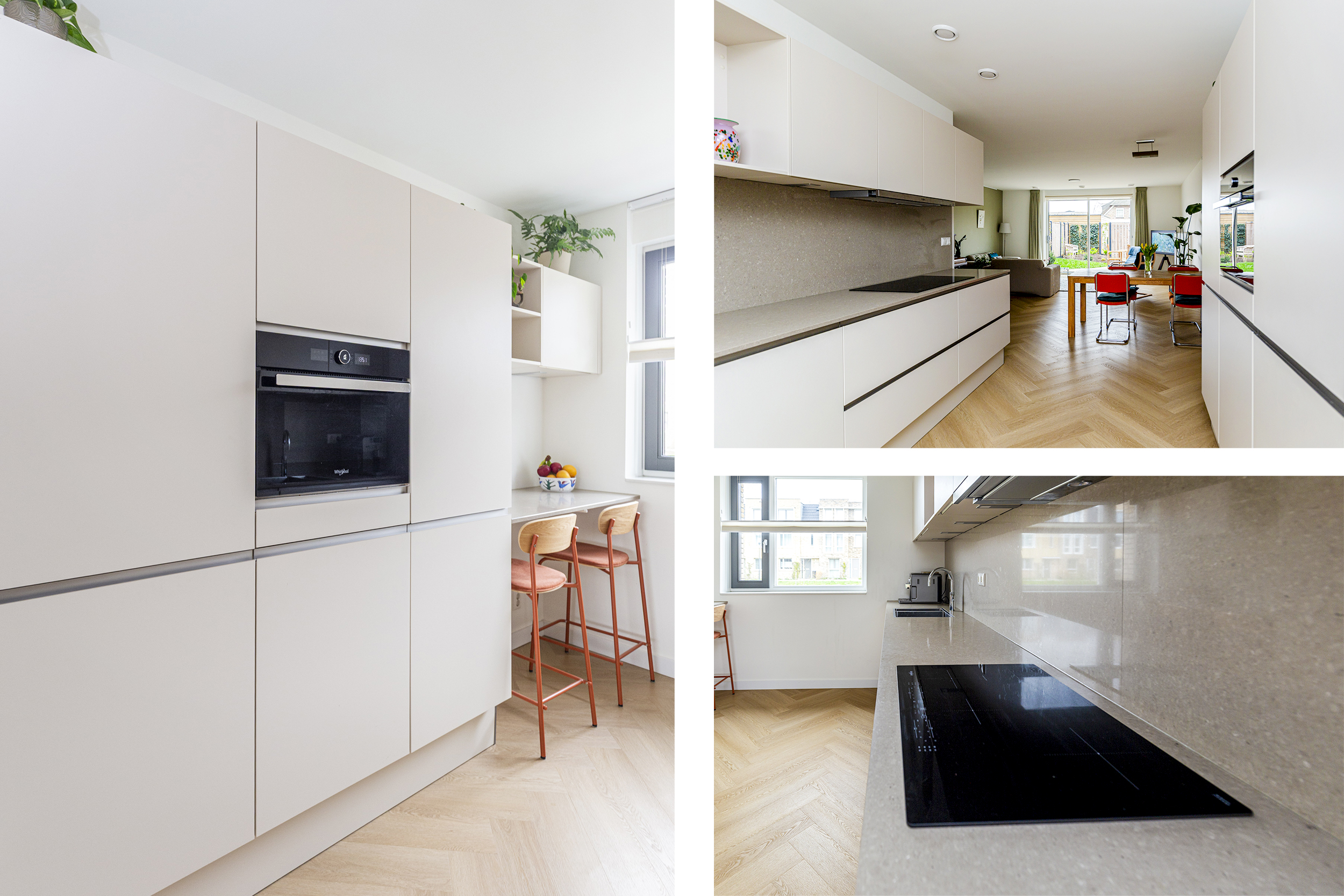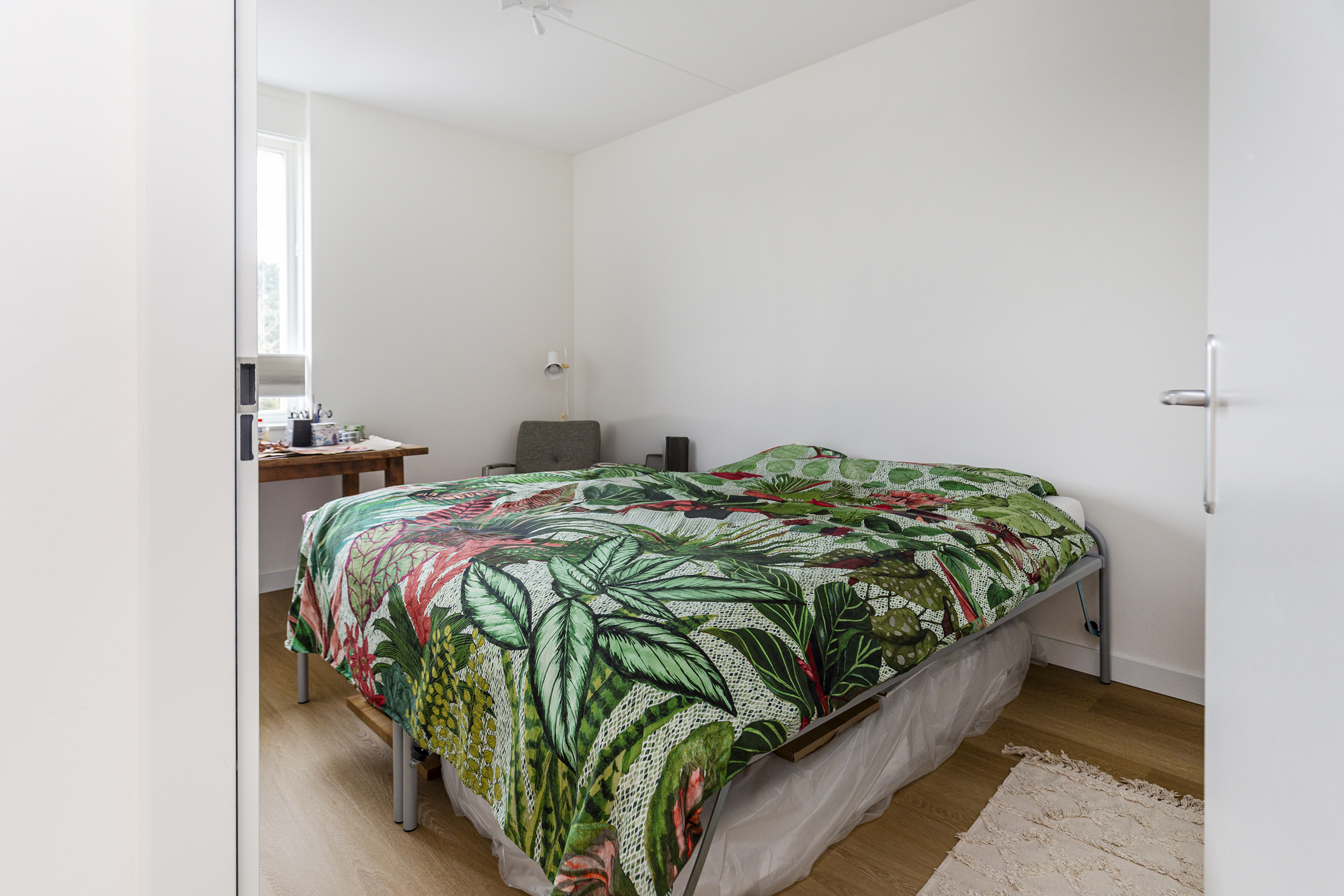 De tweede verdieping biedt drie slaapkamers en een technische ruimte, hier bevindt zich de warmtepomp met boiler en wasmachineaansluiting.