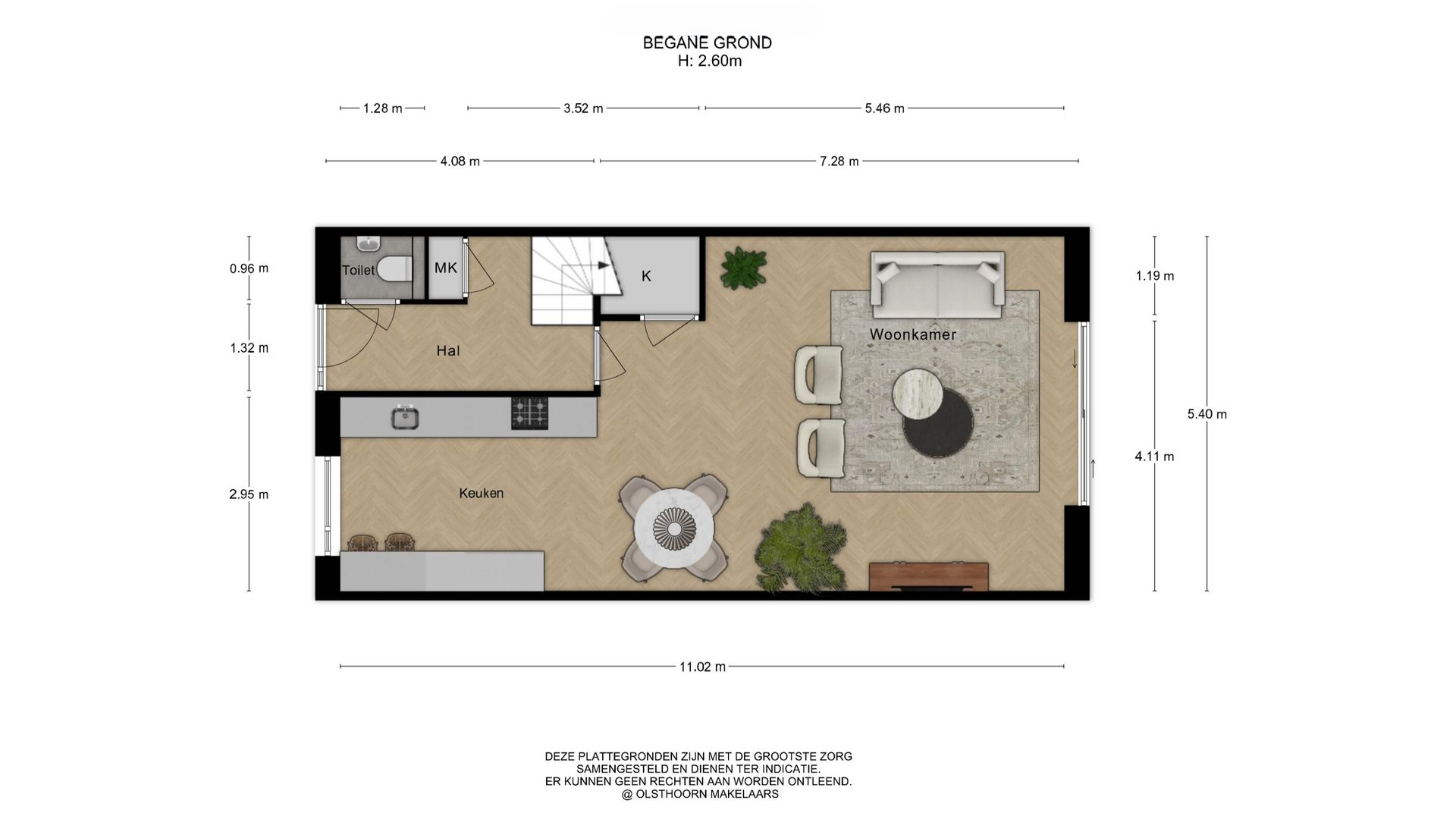 - Kaveloppervlakte circa 169 m²