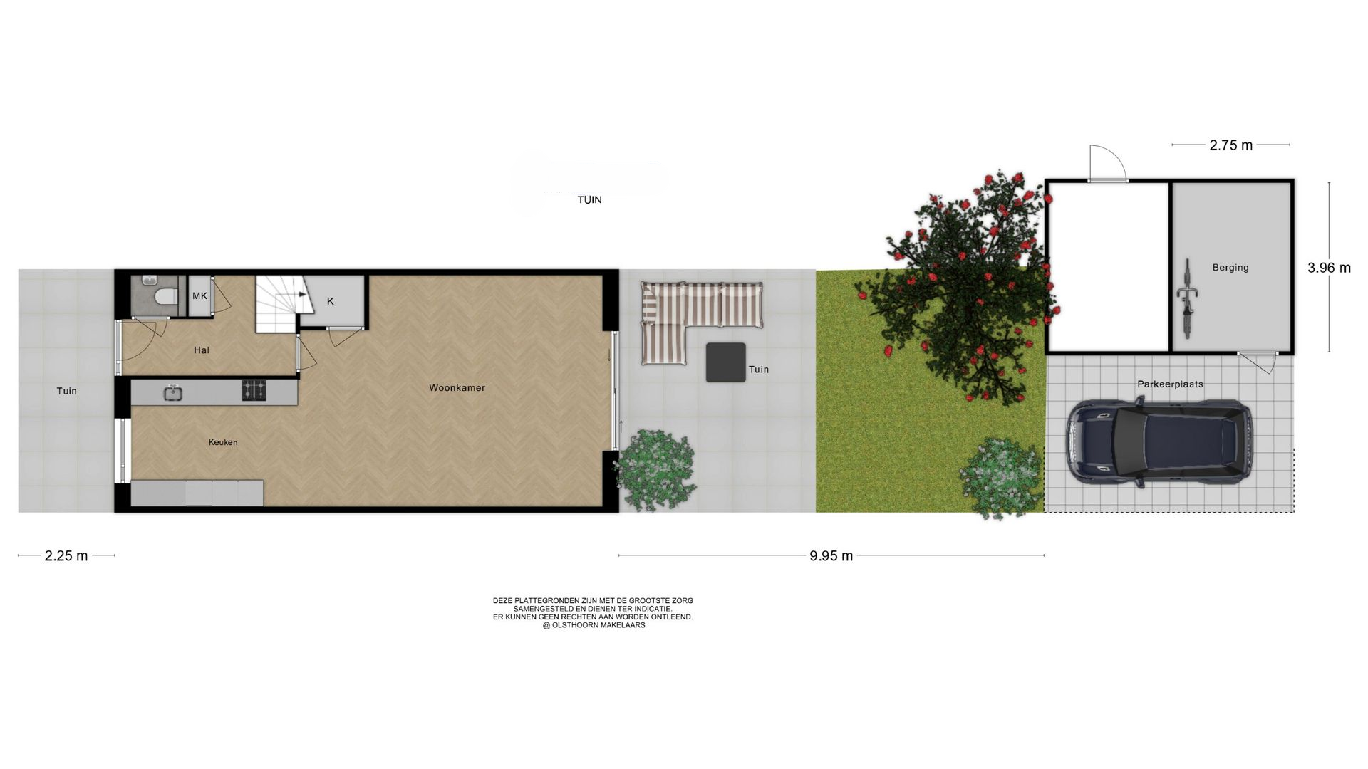 - Parkeergelegenheid op eigen terrein en ruime berging direct achter de tuin