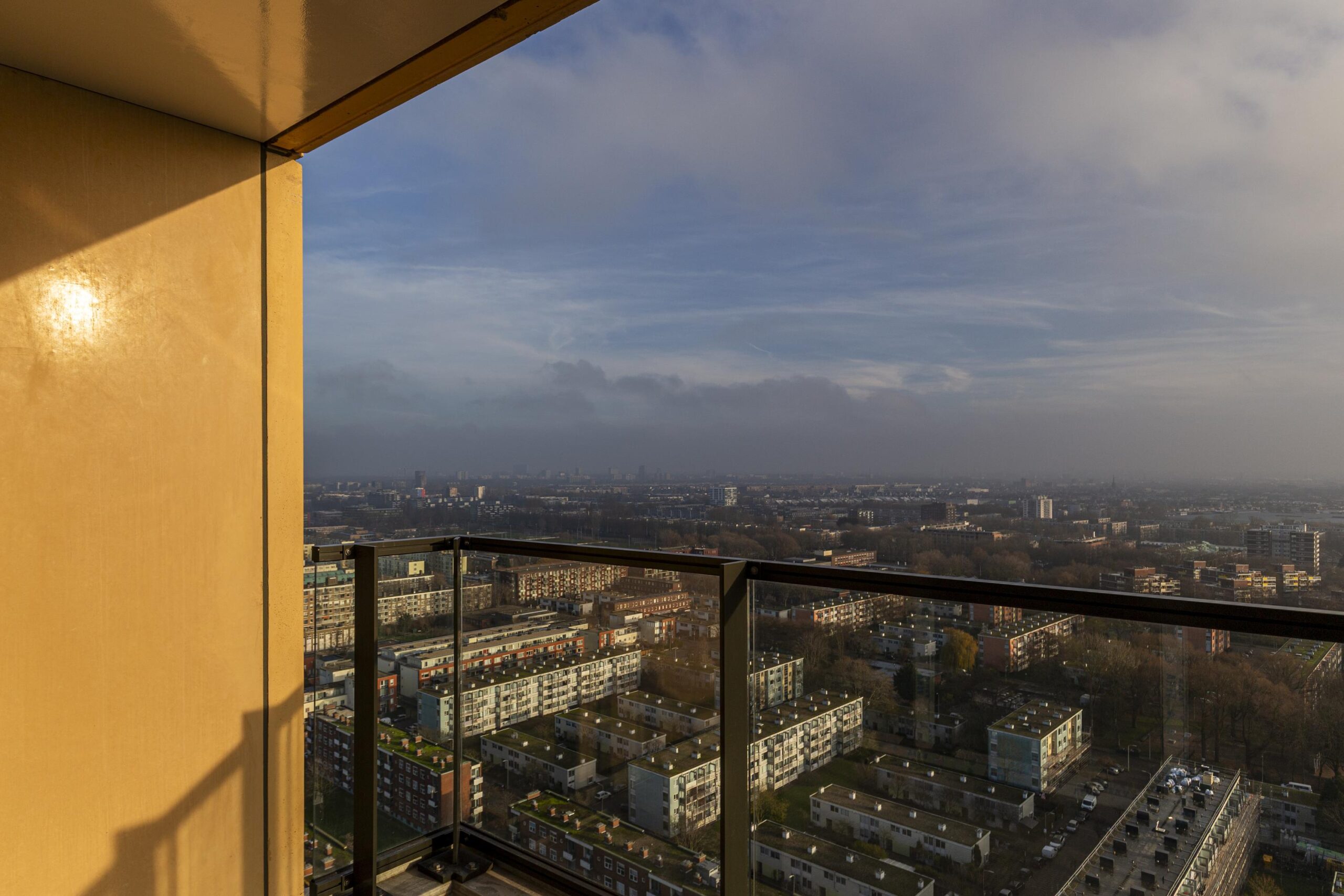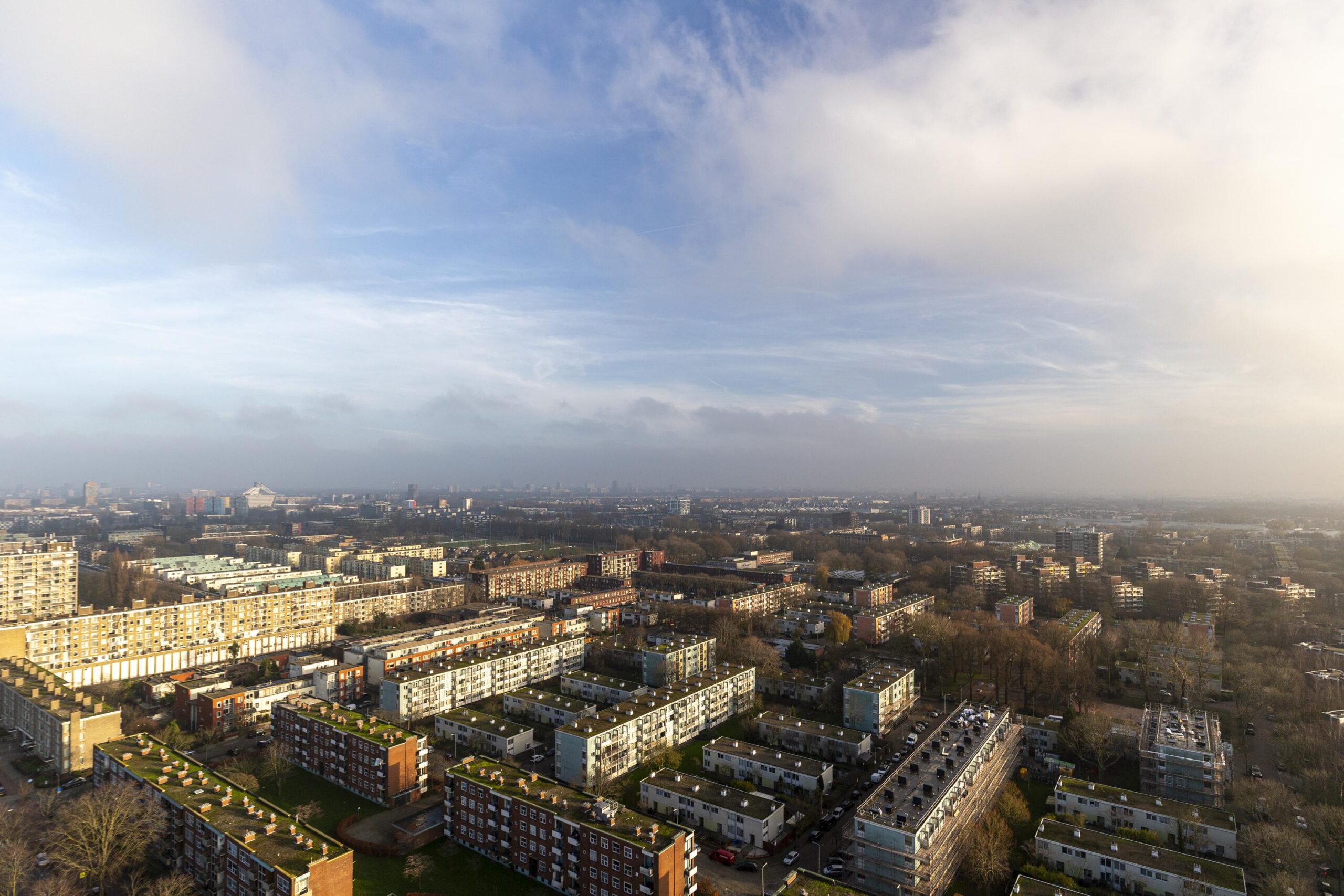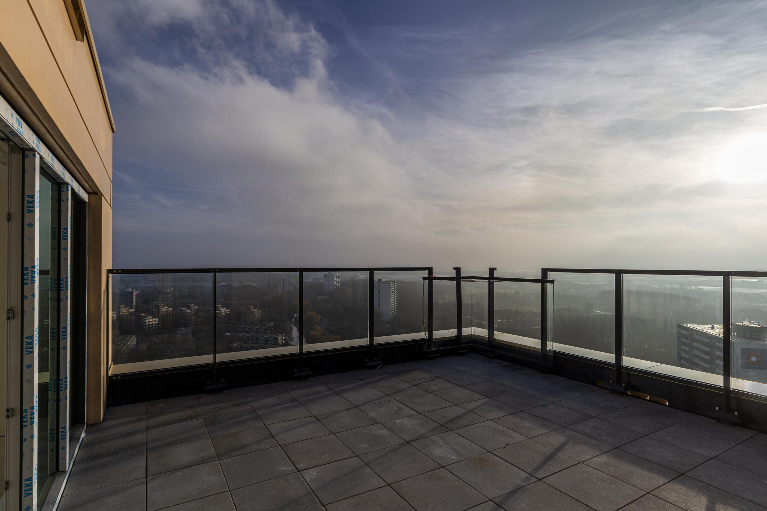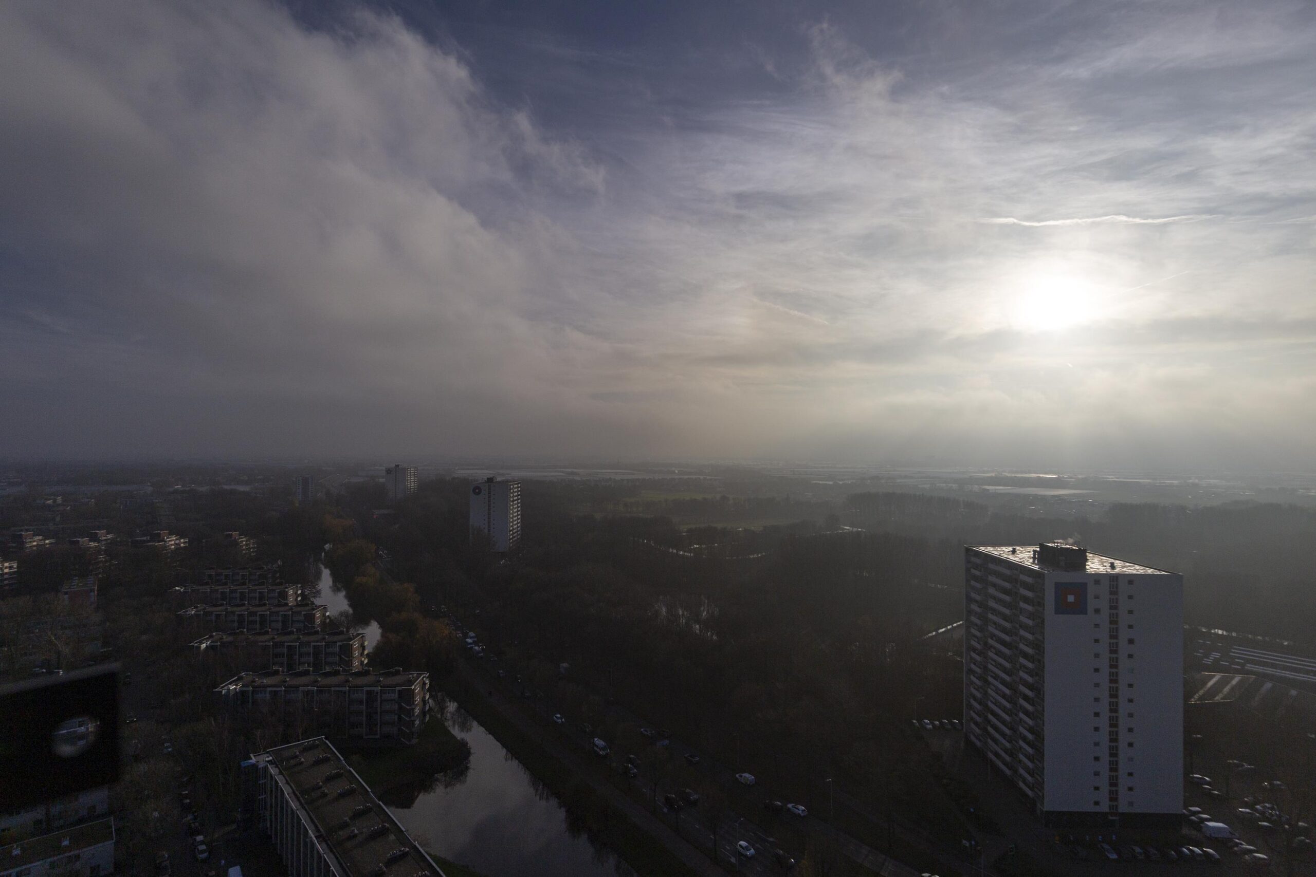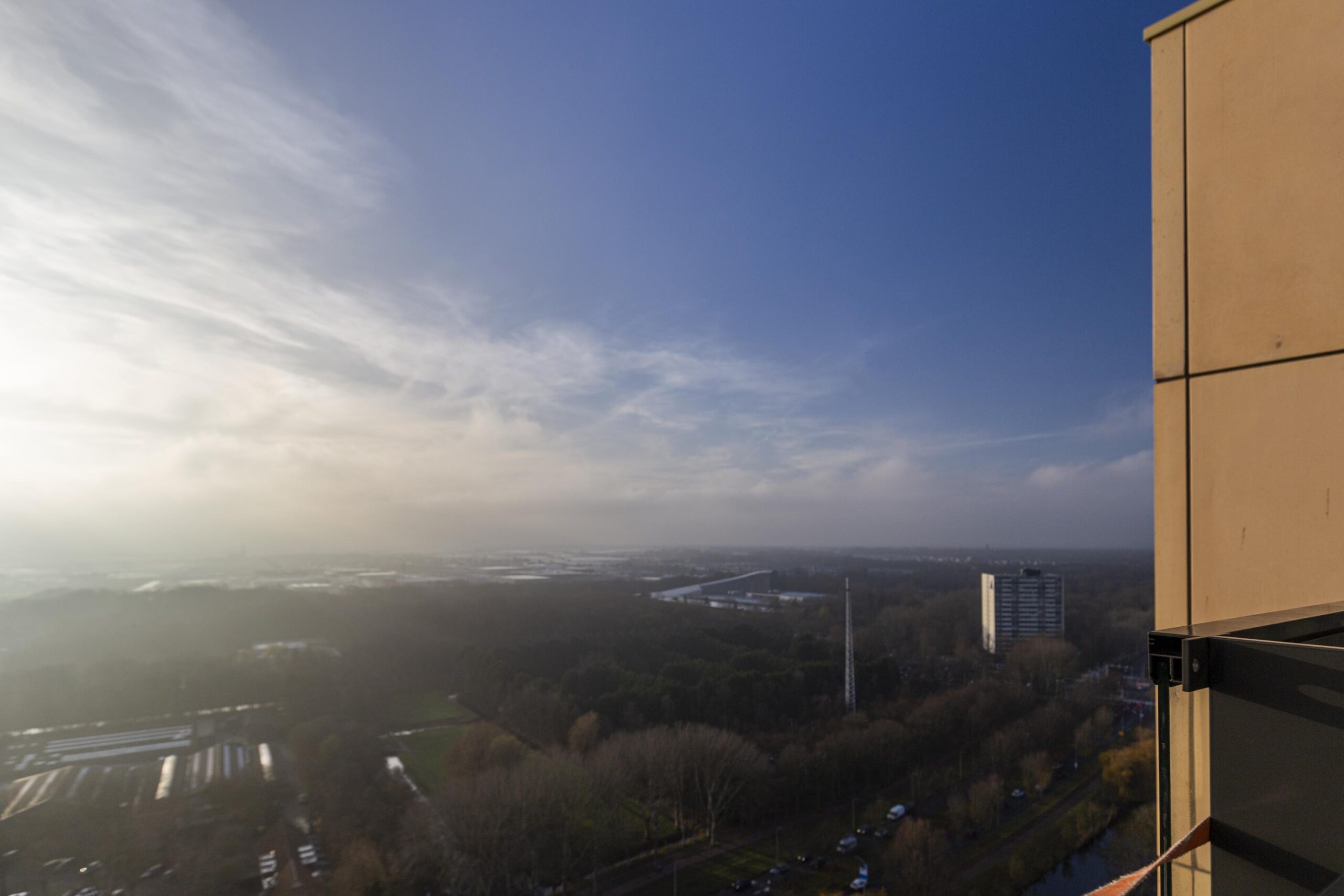 Omdat het terras aan de zijkant van het gebouw ligt, kijkt u zowel richting het centrum als richting Wateringen en bij goed weer ziet u zelfs Rotterdam liggen!