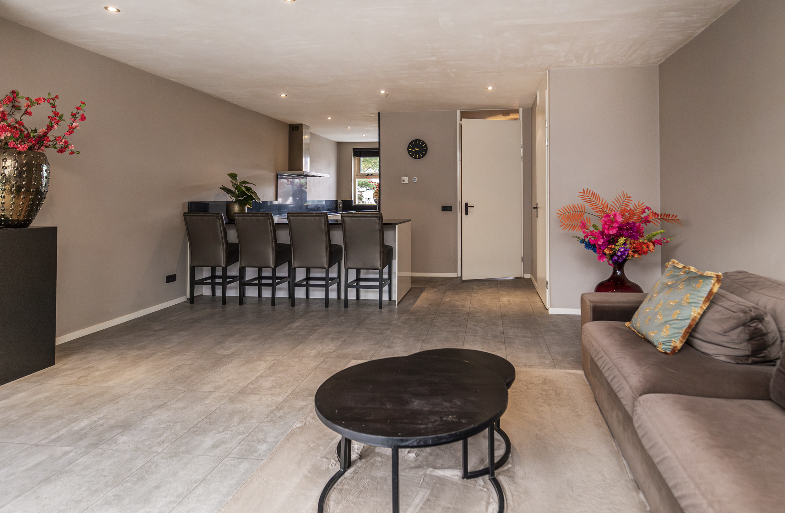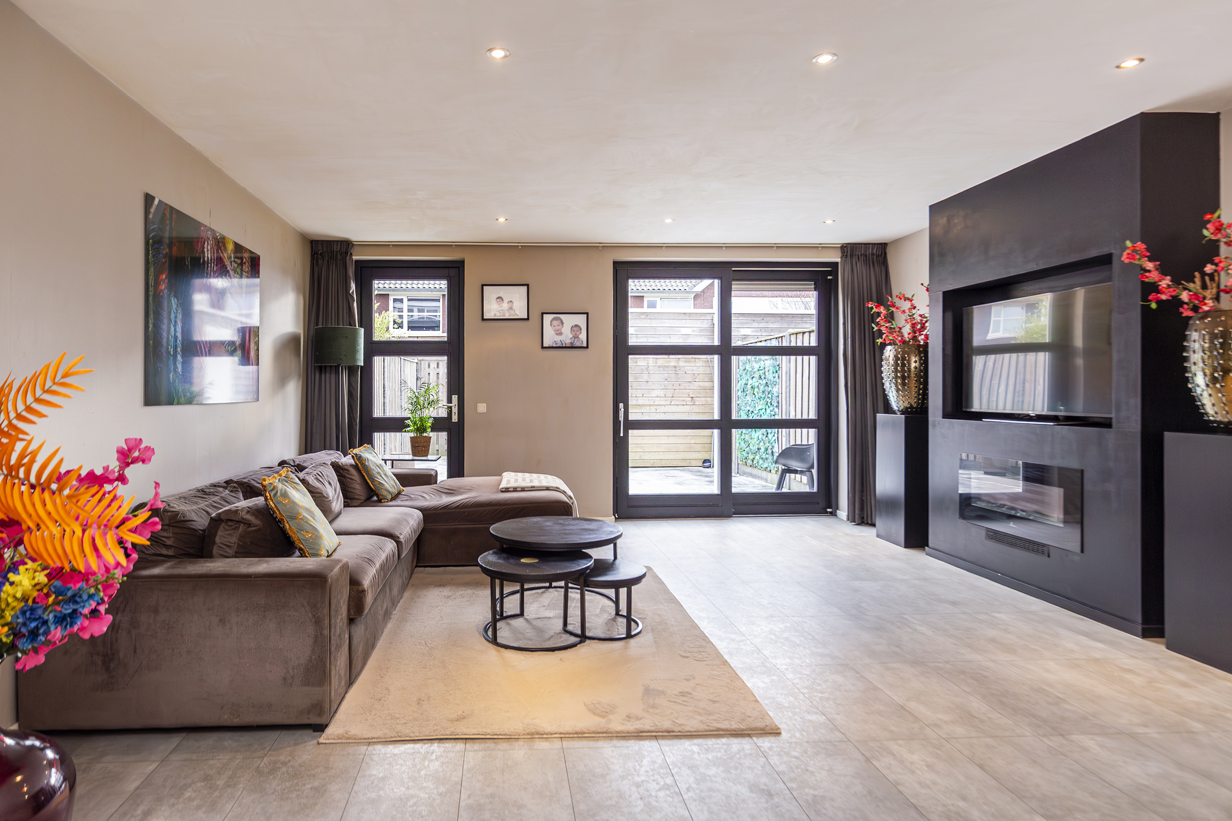 Via de entree komt u binnen in een ruime en nette hal. Hier bevinden zich het moderne toilet met fonteintje, de meterkast en de trap naar de verdiepingen. Vanuit de hal loopt u door naar de woonkamer, een lichte en comfortabele leefruimte met een fraaie tegelvloer en vloerverwarming. De woonkamer biedt voldoende ruimte voor een gezellige zithoek en eethoek en staat via een brede schuifpui in directe verbinding met de op het zuidoosten gelegen achtertuin. De tuin beschikt over een berging met elektra en is tevens bereikbaar via een achterom.