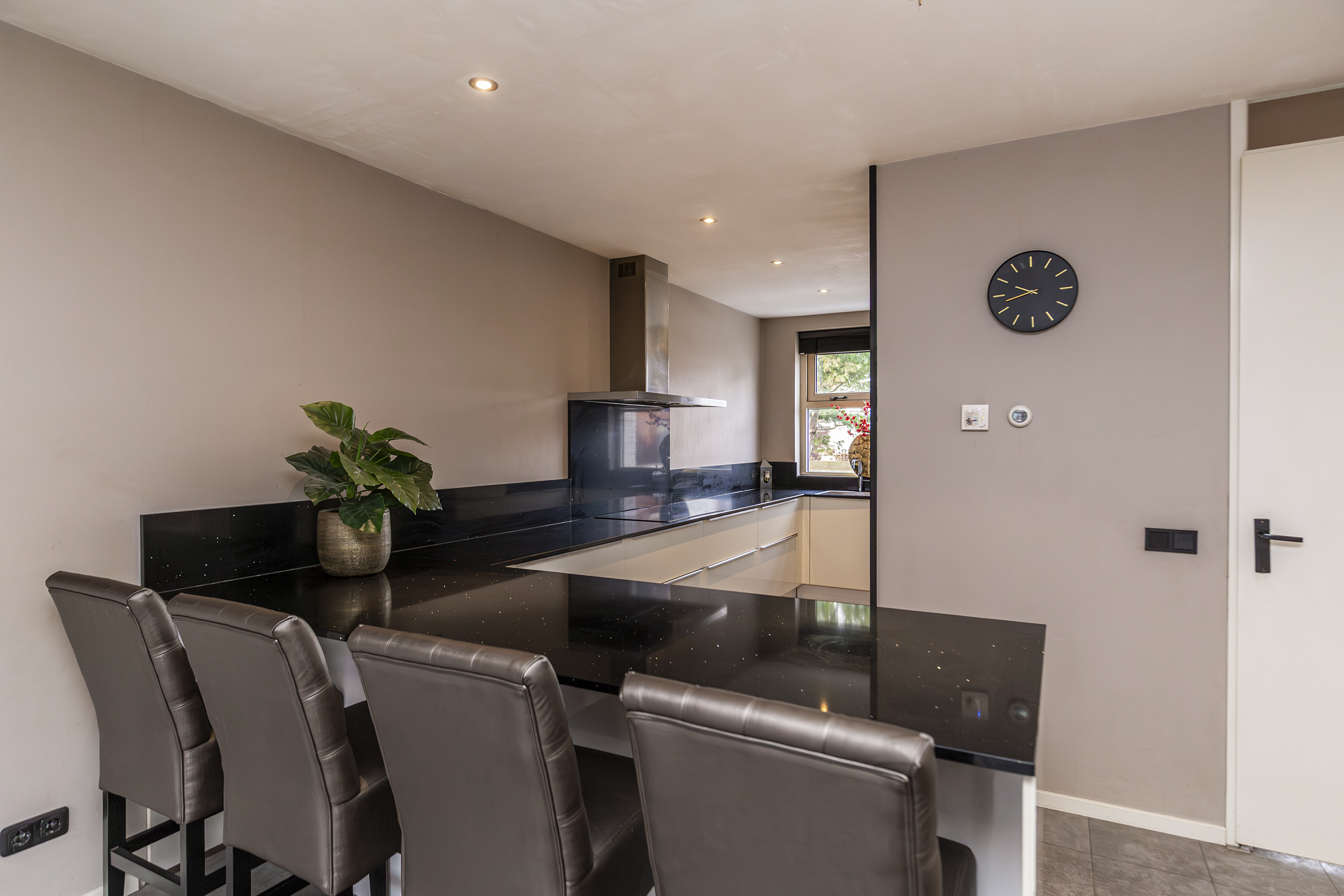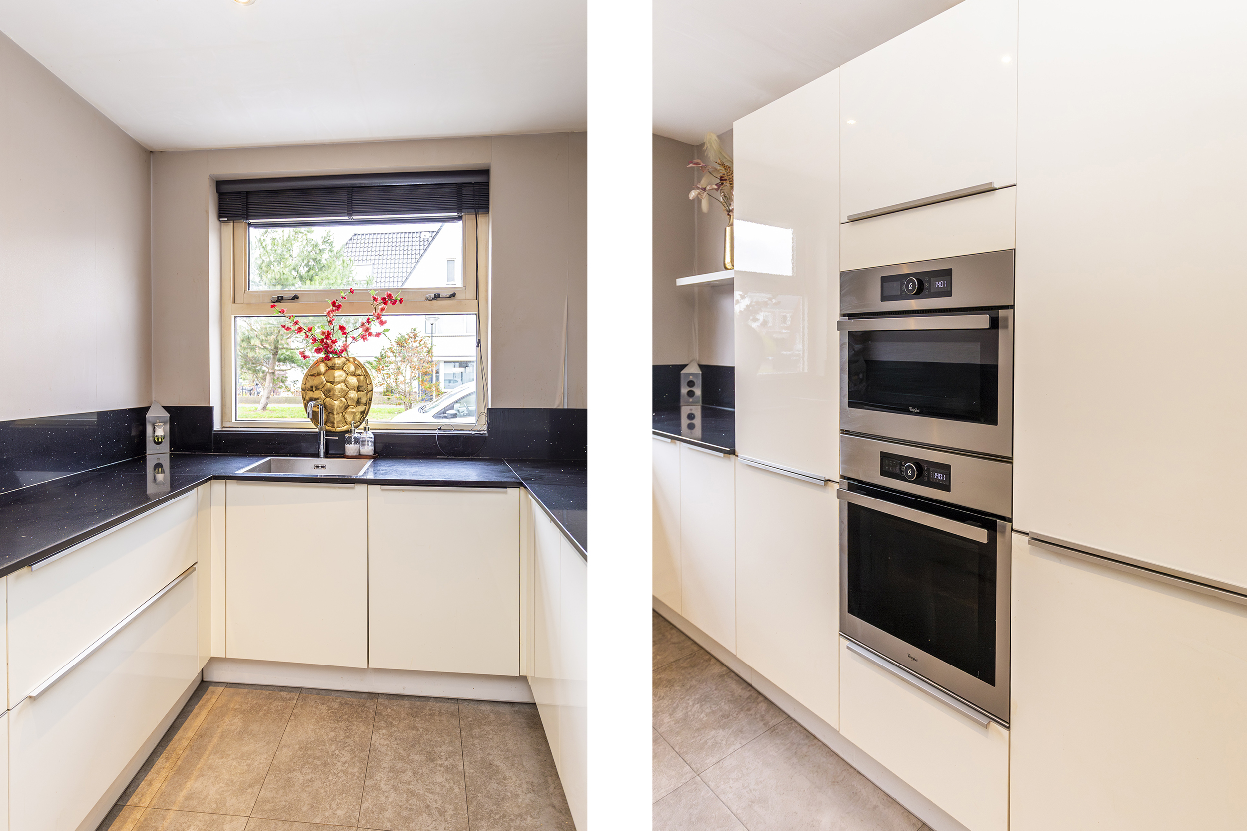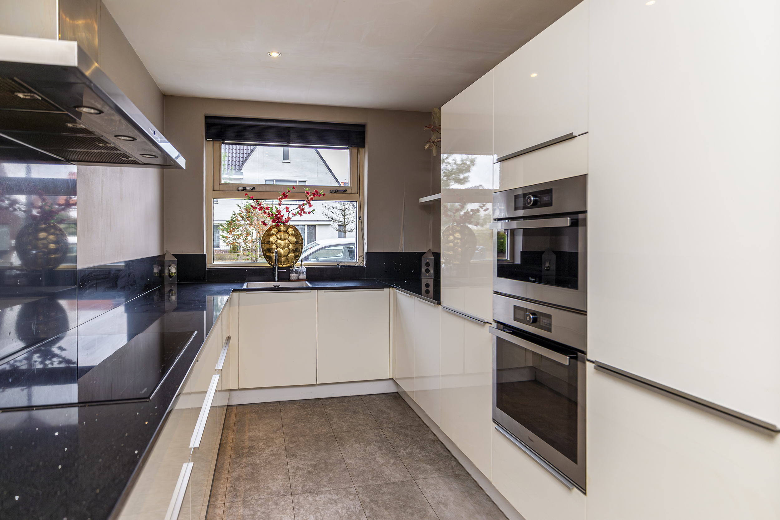 Aan de voorzijde van de woning bevindt zich de open keuken. Deze keuken is royaal van opzet en voorzien van diverse inbouwapparatuur, waardoor koken hier zowel praktisch als plezierig is.