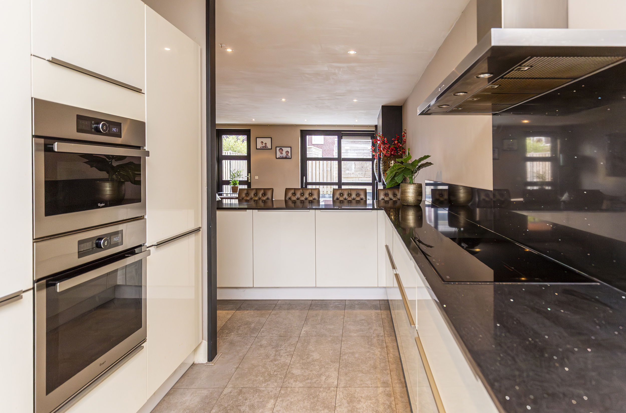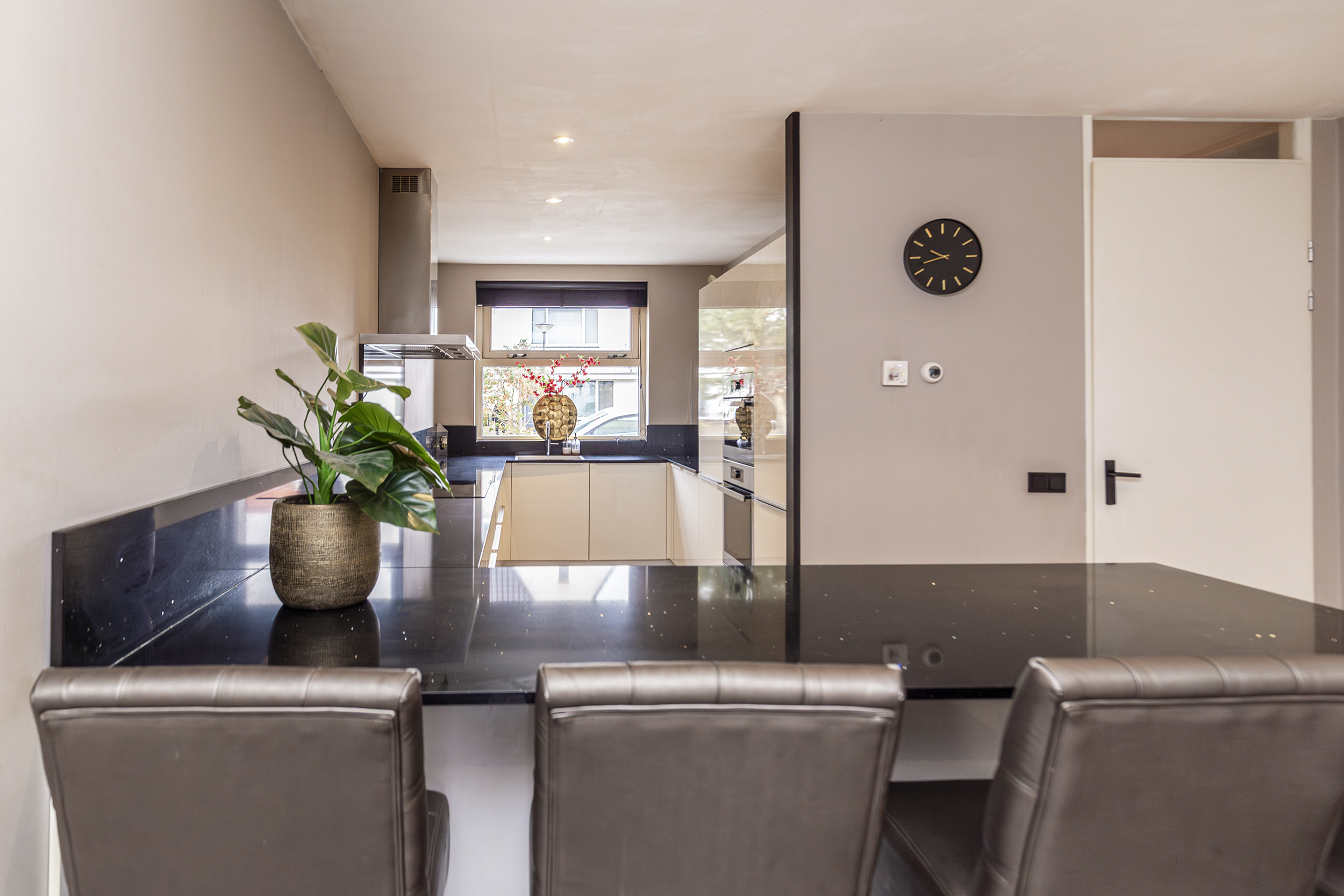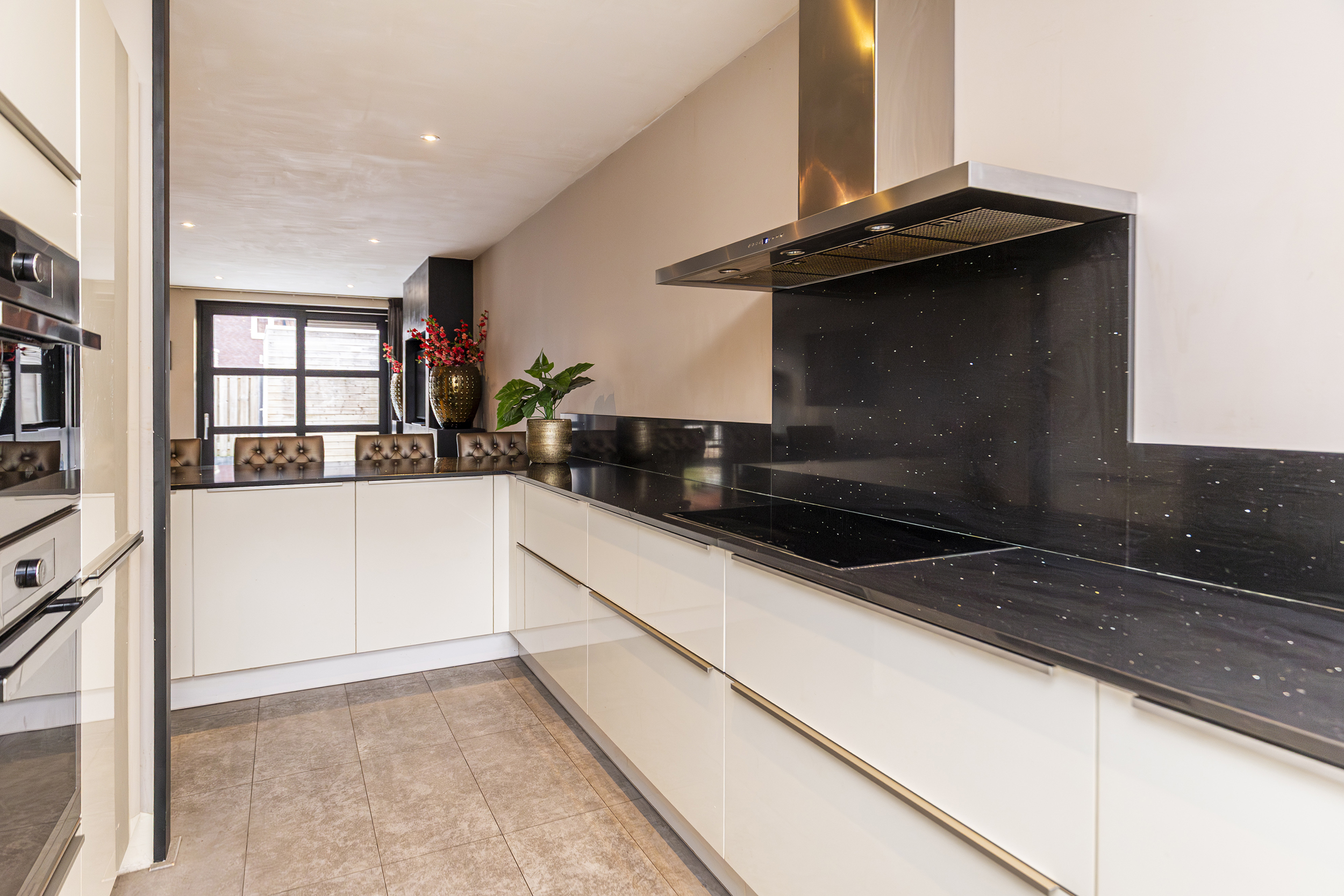 Aan de voorzijde van de woning bevindt zich de open keuken. Deze keuken is royaal van opzet en voorzien van diverse inbouwapparatuur, waardoor koken hier zowel praktisch als plezierig is.
