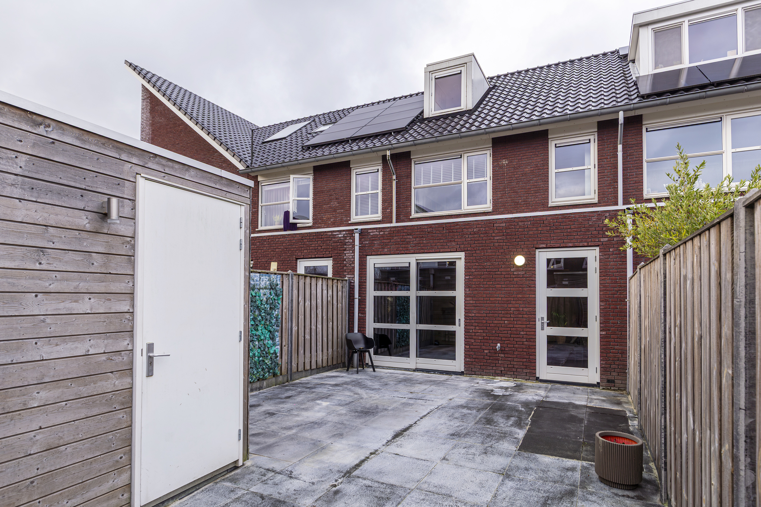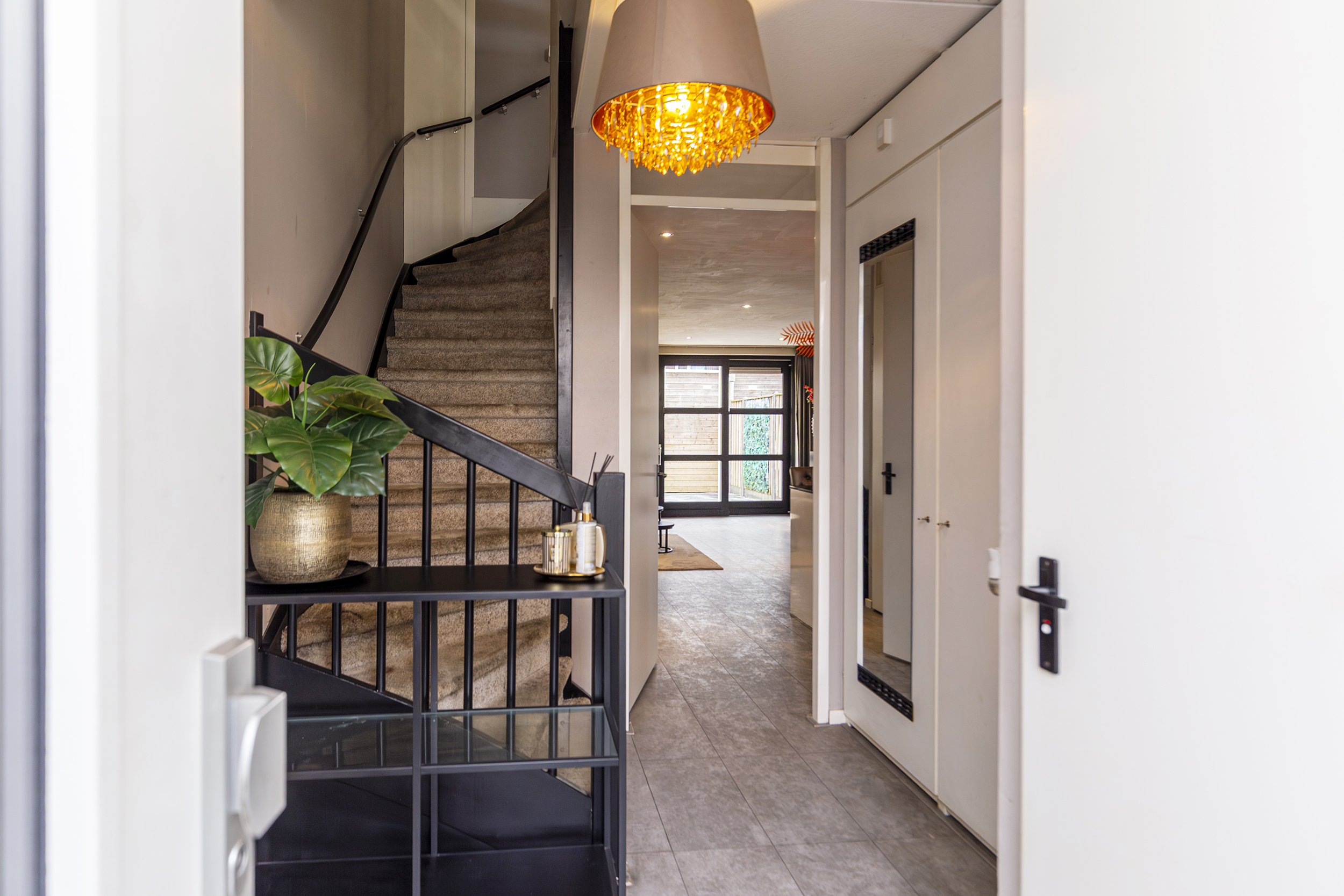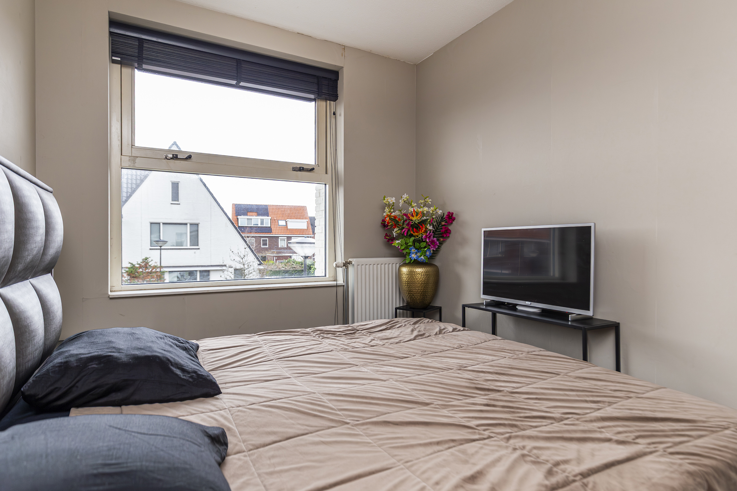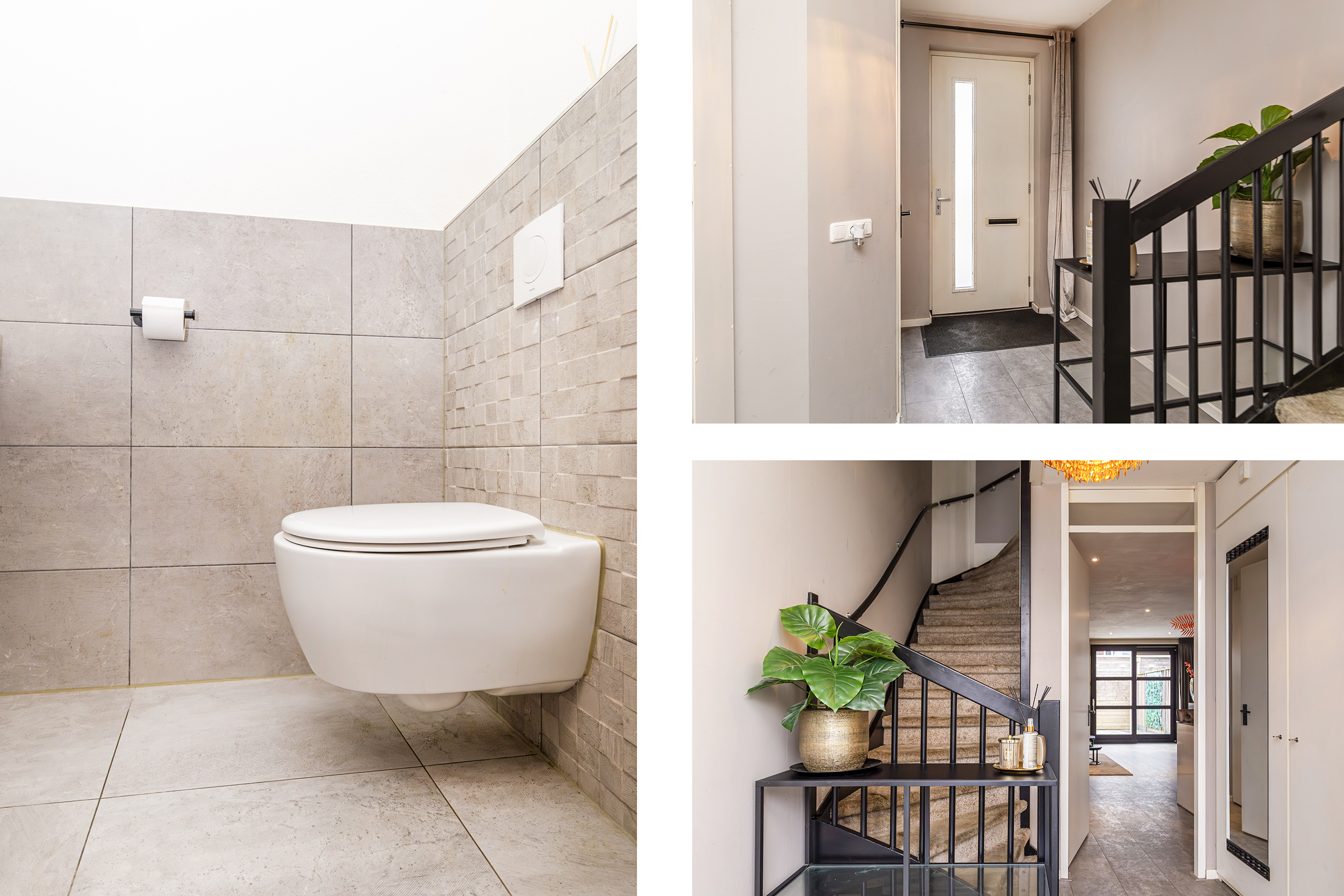 Op de eerste verdieping geeft de overloop toegang tot drie slaapkamers, stuk voor stuk prettig van formaat. De grootste slaapkamer is gelegen aan de rustige achterzijde van de woning. De moderne badkamer is volledig betegeld en ingericht met een ligbad, een inloopdouche, een wastafel en een tweede toilet.