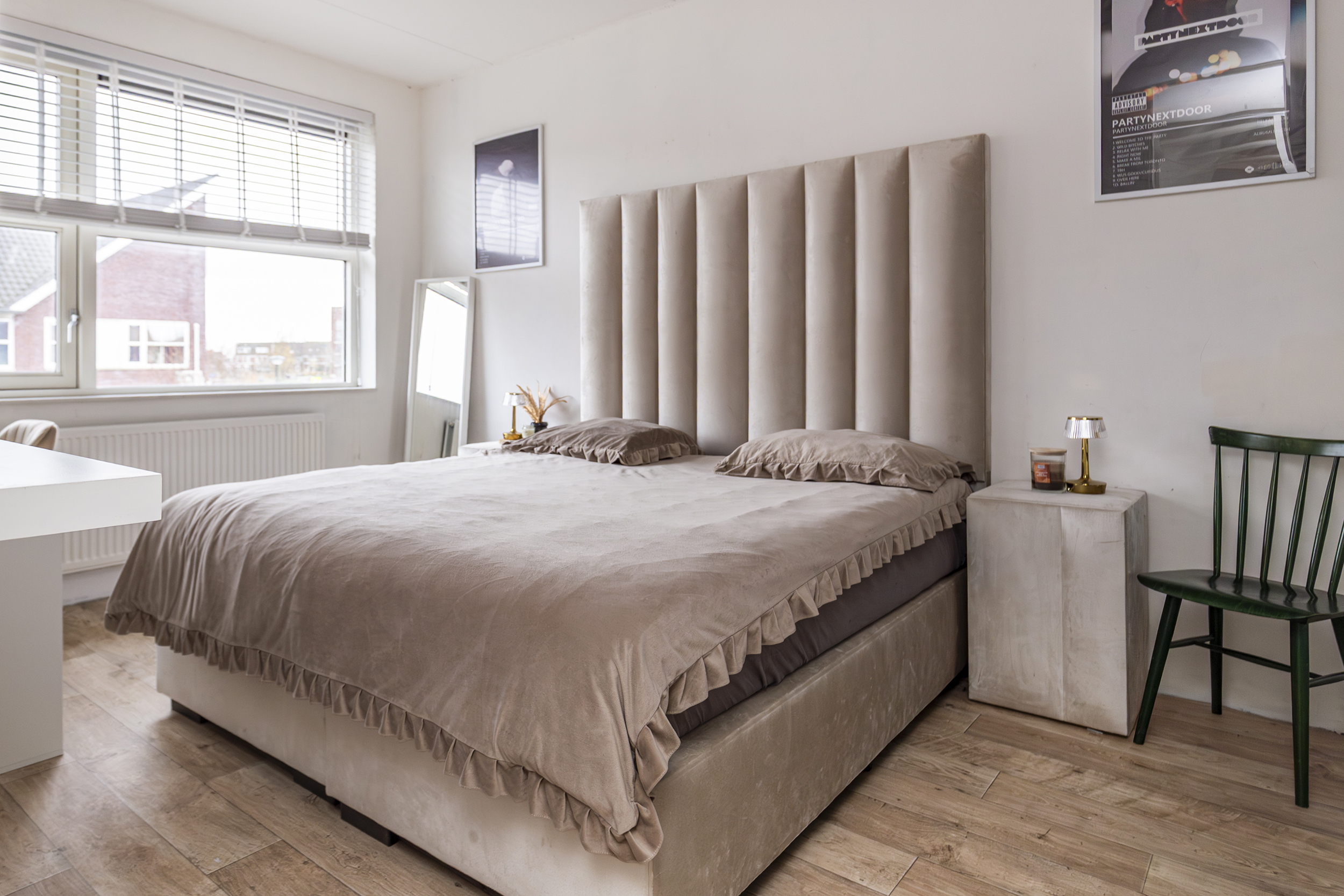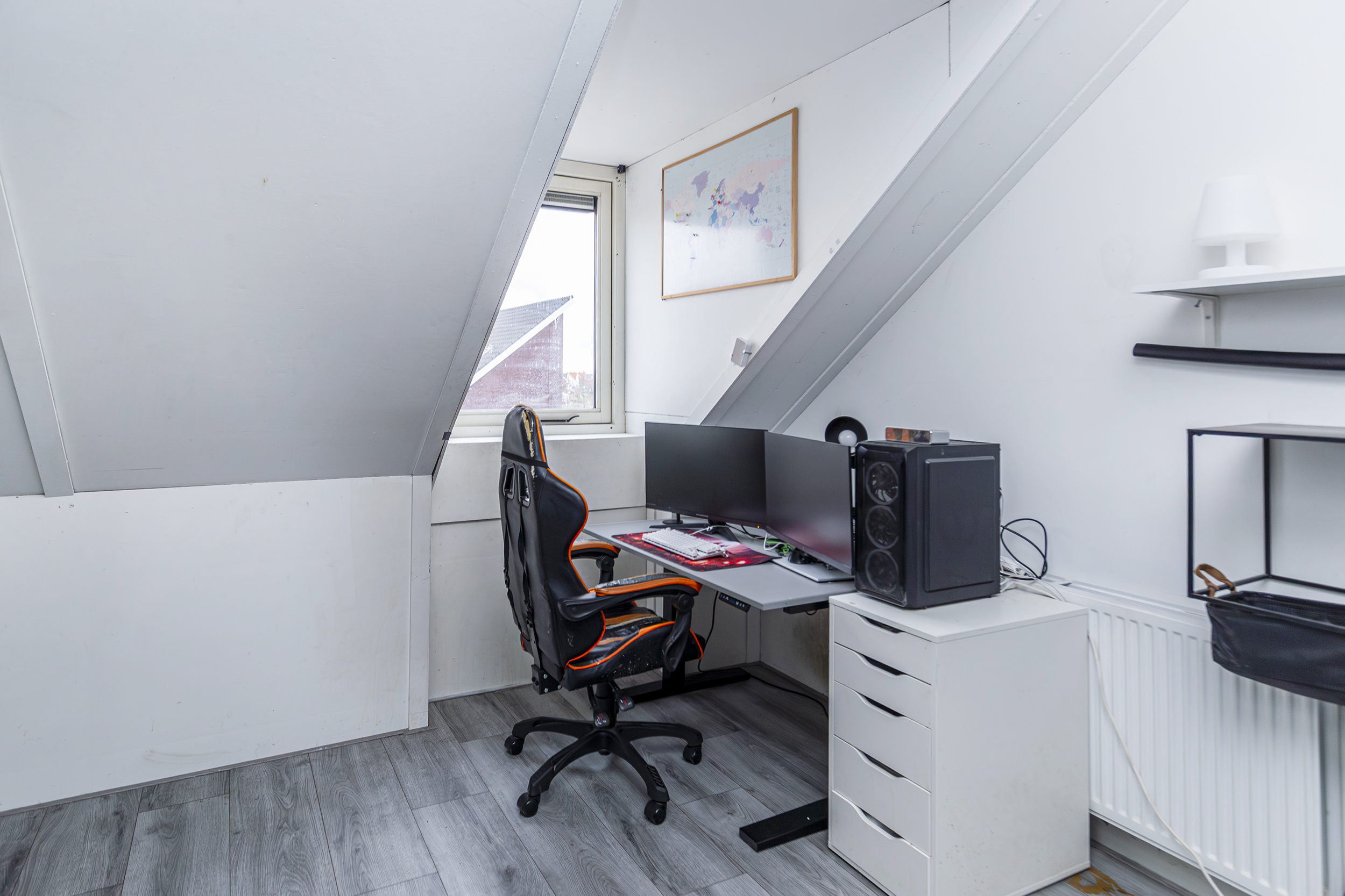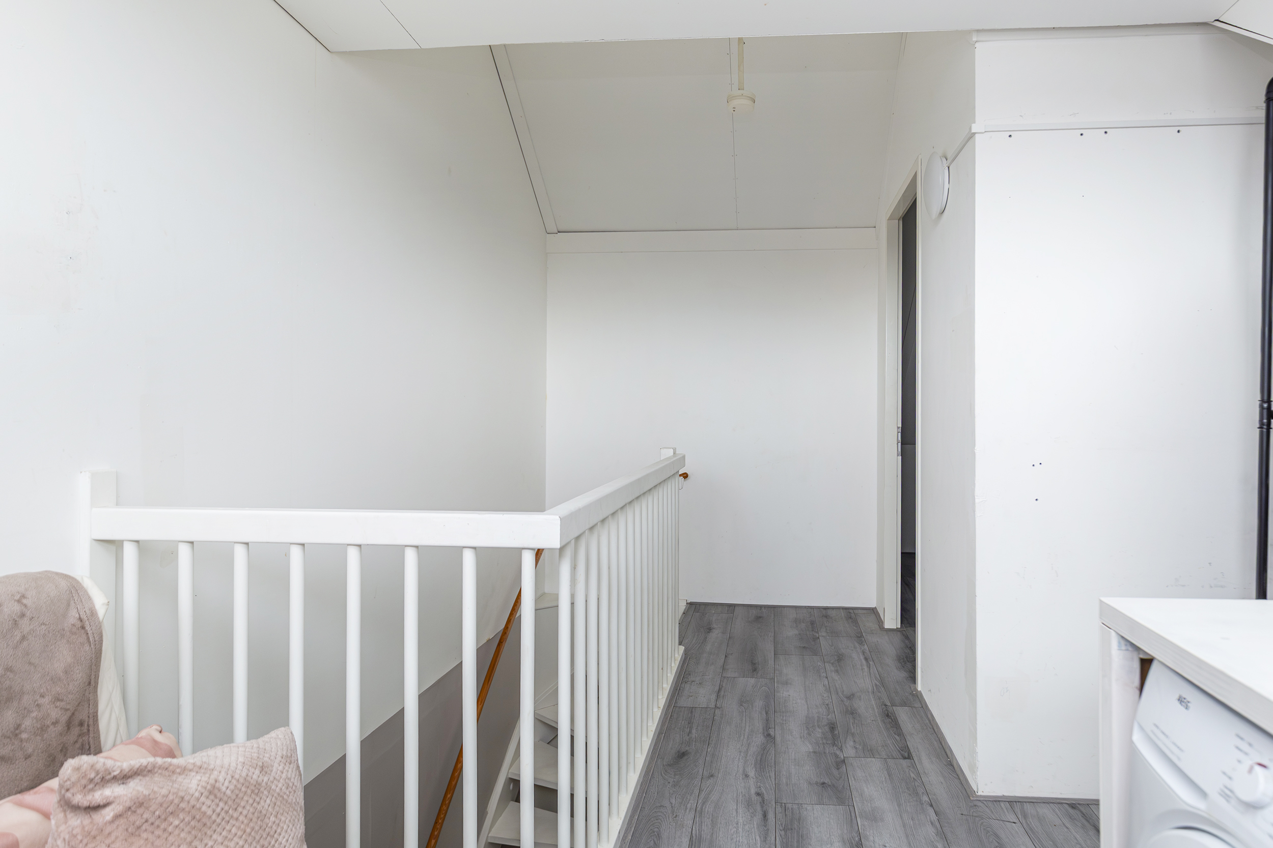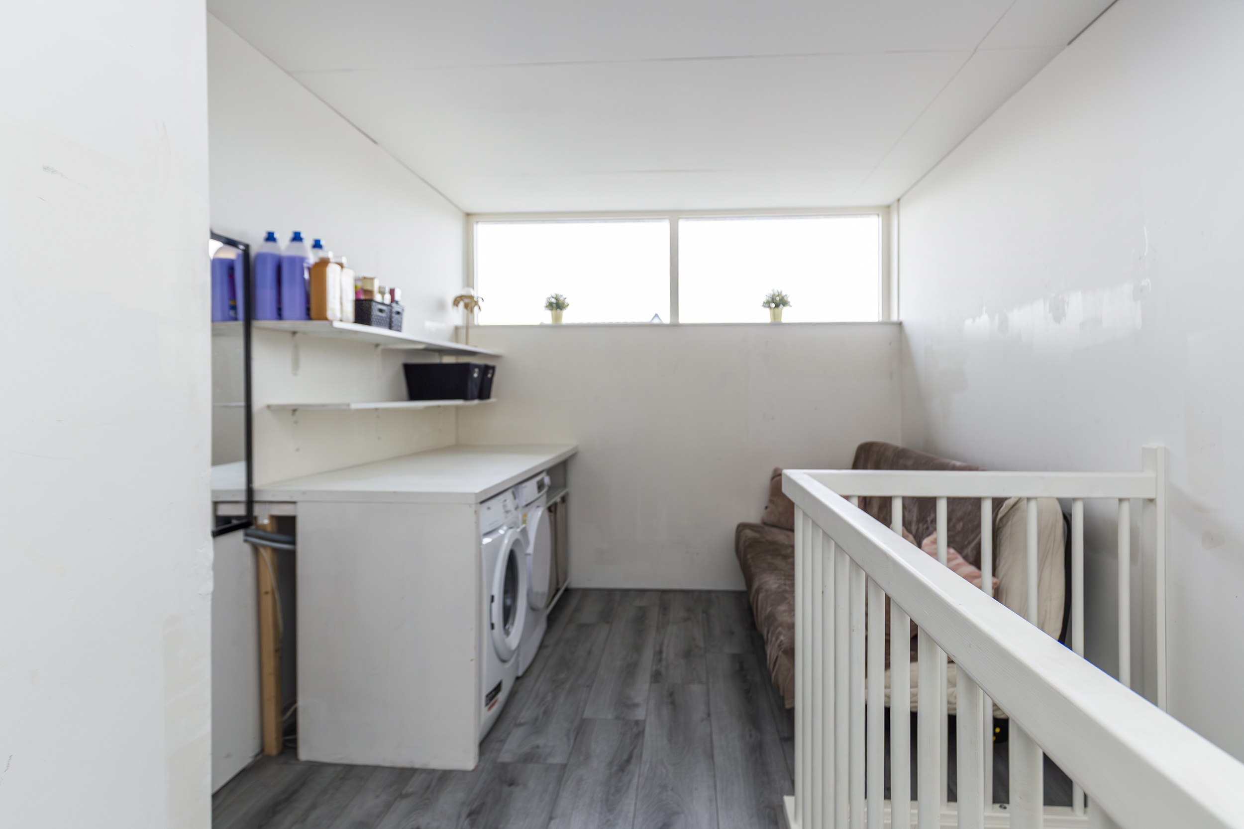 De bovenste verdieping vindt u een ruime L-vormige slaapkamer aan de achterzijde. Aan de voorzijde is er een veelzijdige ruimte die naar wens kan worden ingericht. Daarnaast bevinden zich hier de technische installaties en de aansluitingen voor wasmachine en droger.