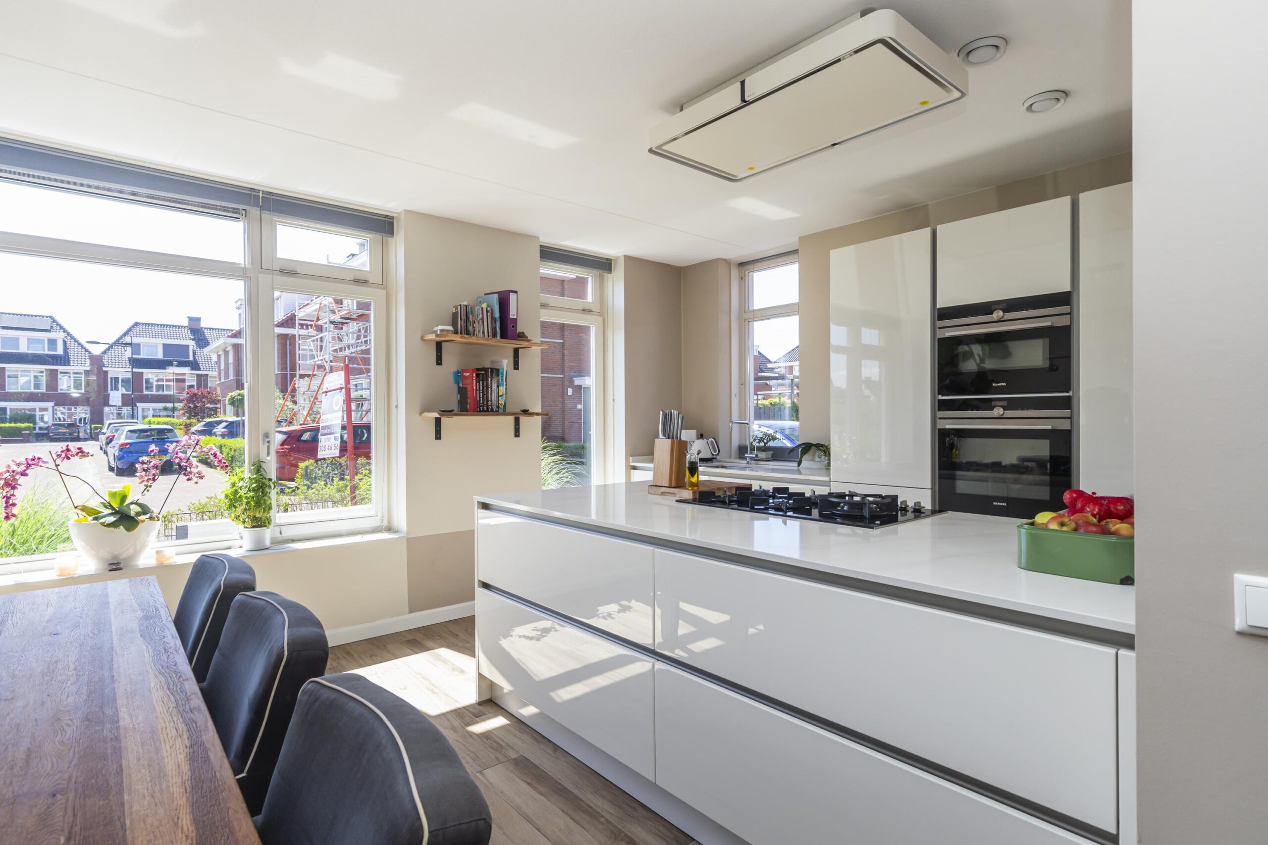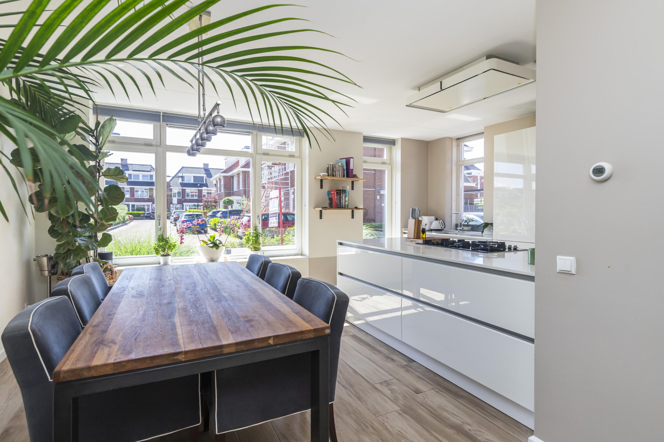 Via de hal betreedt u de riante woon-eetkamer. Het licht stroomt hier de ruimte binnen, wat het open karakter extra versterkt en middels openslaande deuren verschaft u zich toegang tot de verzorgde en zonnige achtertuin welke voorzien is van een kersenboom, druivenboom, perenboom en vijgenboom. De eetgelegenheid is gelegen aan de voorzijde van de woning. Tevens treft u daar de functionele luxe, open keuken aan welke is voorzien van: 5-pits gaskookplaat met wok brander, 2 ovens waarvan 1 een combiovenmagnetron, recirculatiekap, vaatwasser, spoelbak, een grote gezinskoelkast en een grote vriezer.
