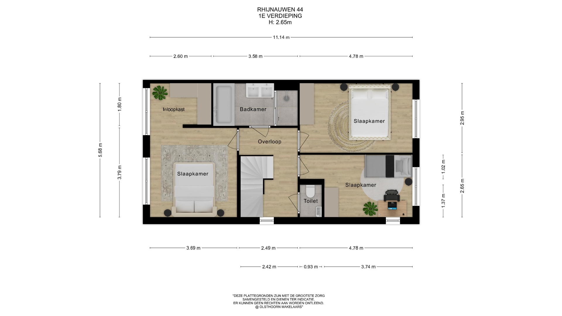 Het gevoel van ruimte gaat verder op de bovenverdiepingen. Een royale overloop biedt toegang tot drie slaapkamers (waarvan één met inloopkast) en een separaat toilet met fonteintje. Moderne tussengelegen badkamer voorzien van: ligbad, inloopdouche, zwevend wastafelmeubel en handdoekradiator