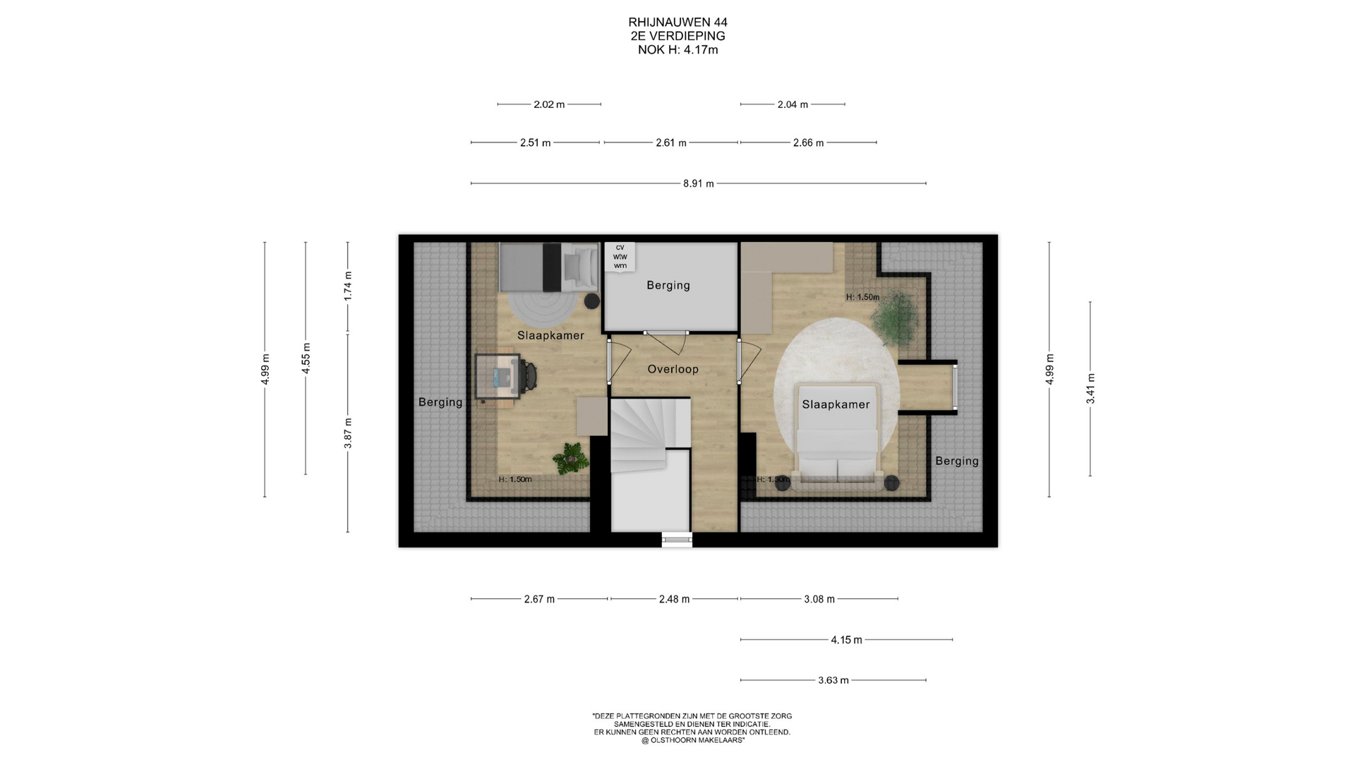 Het woord royaal is ook hier van toepassing, want op de tweede verdieping wordt u verrast door een complete was- en stookruimte met opstelplaats wasmachine de mogelijkheid is er om hier een vliering te maken welke extra opbergruimte biedt, droger, cv-installatie, wtw-installatie en twee zeer ruime kamers met hoge nokhoogte en veel lichtinval. Wat een mogelijkheden biedt deze verdieping dan ook! Een werkplek, ruimte voor hobby’s, extra slaapkamer, logeerkamer, extra badkamer en toilet? Het is allemaal mogelijk. Eventueel kan er op deze verdieping ook een pantry geïnstalleerd worden voor wat langer thuisblijvende kinderen welke de mogelijkheid geeft om zich wat verder te onttrekken van het ouderlijk oog.