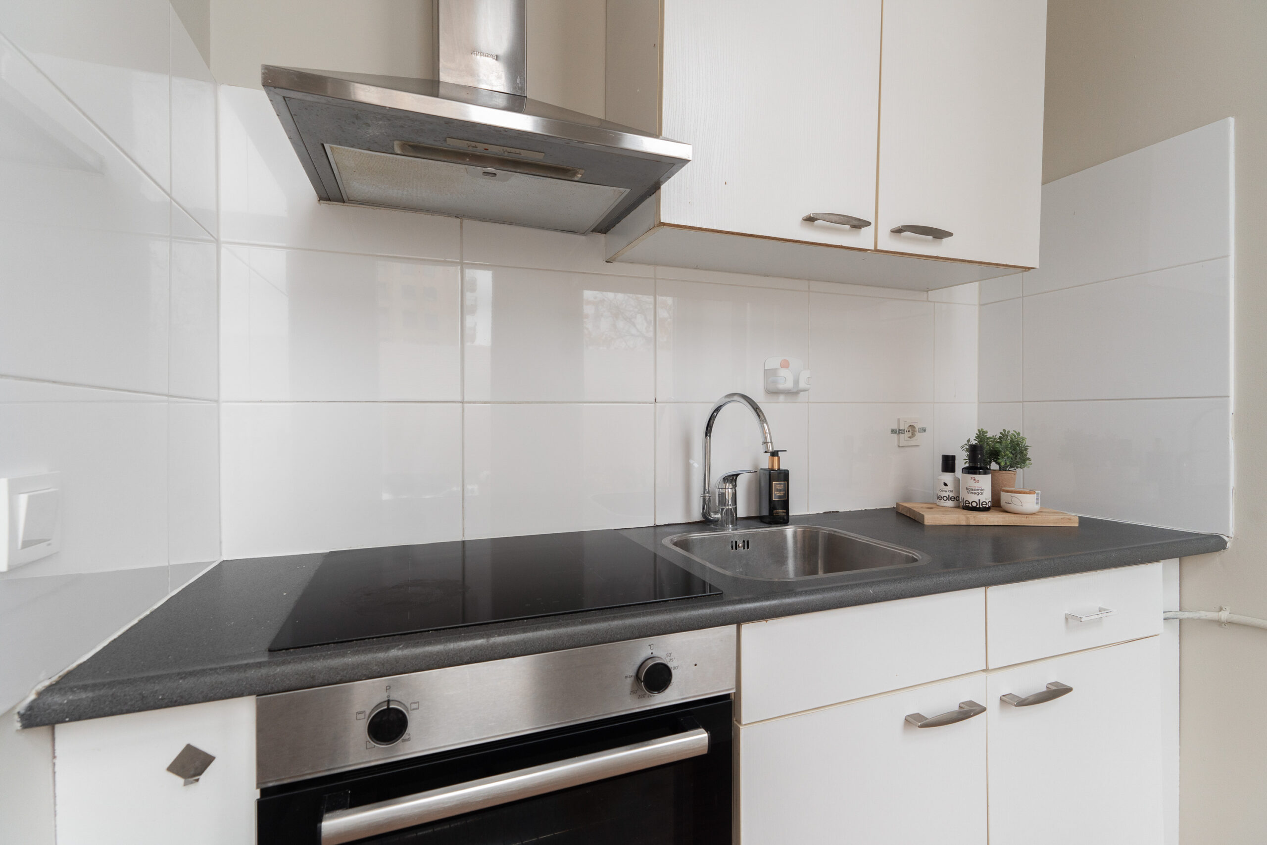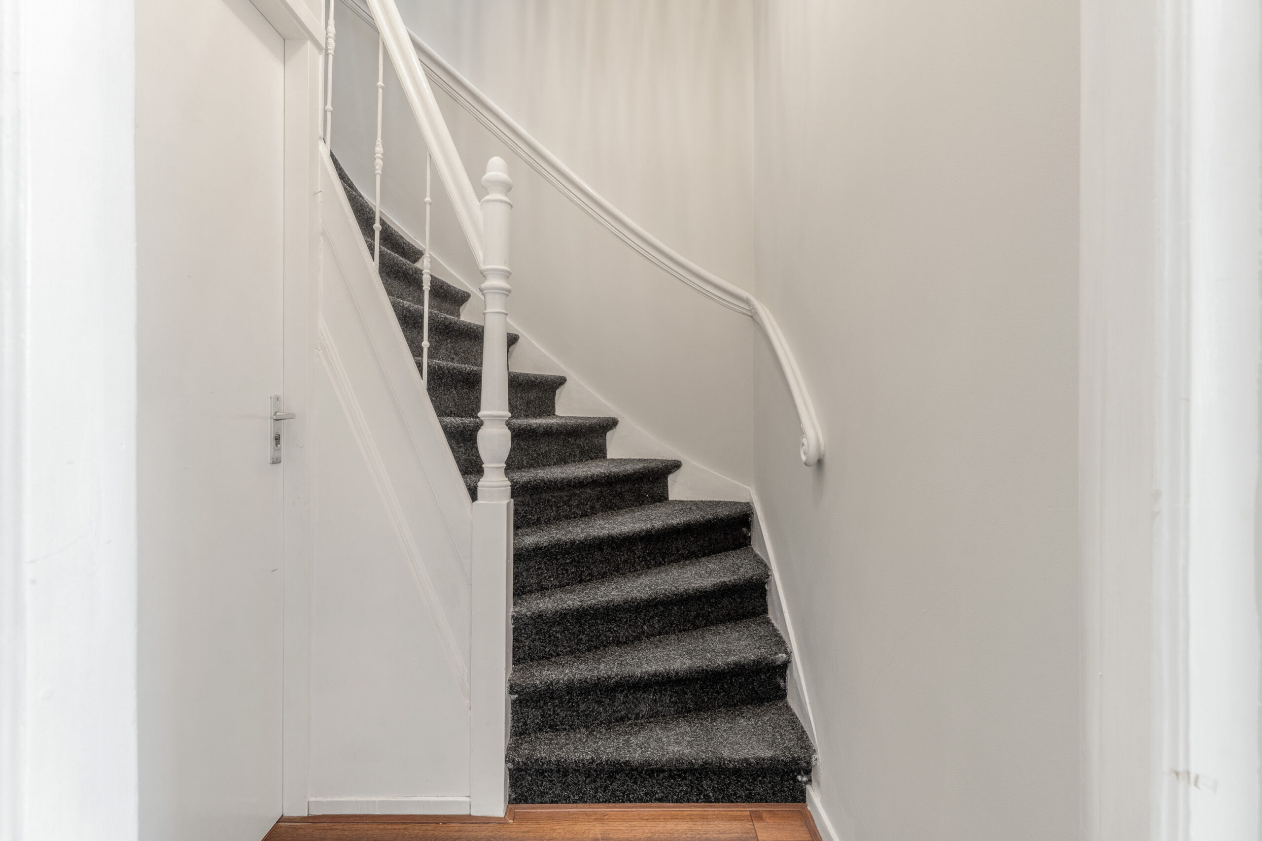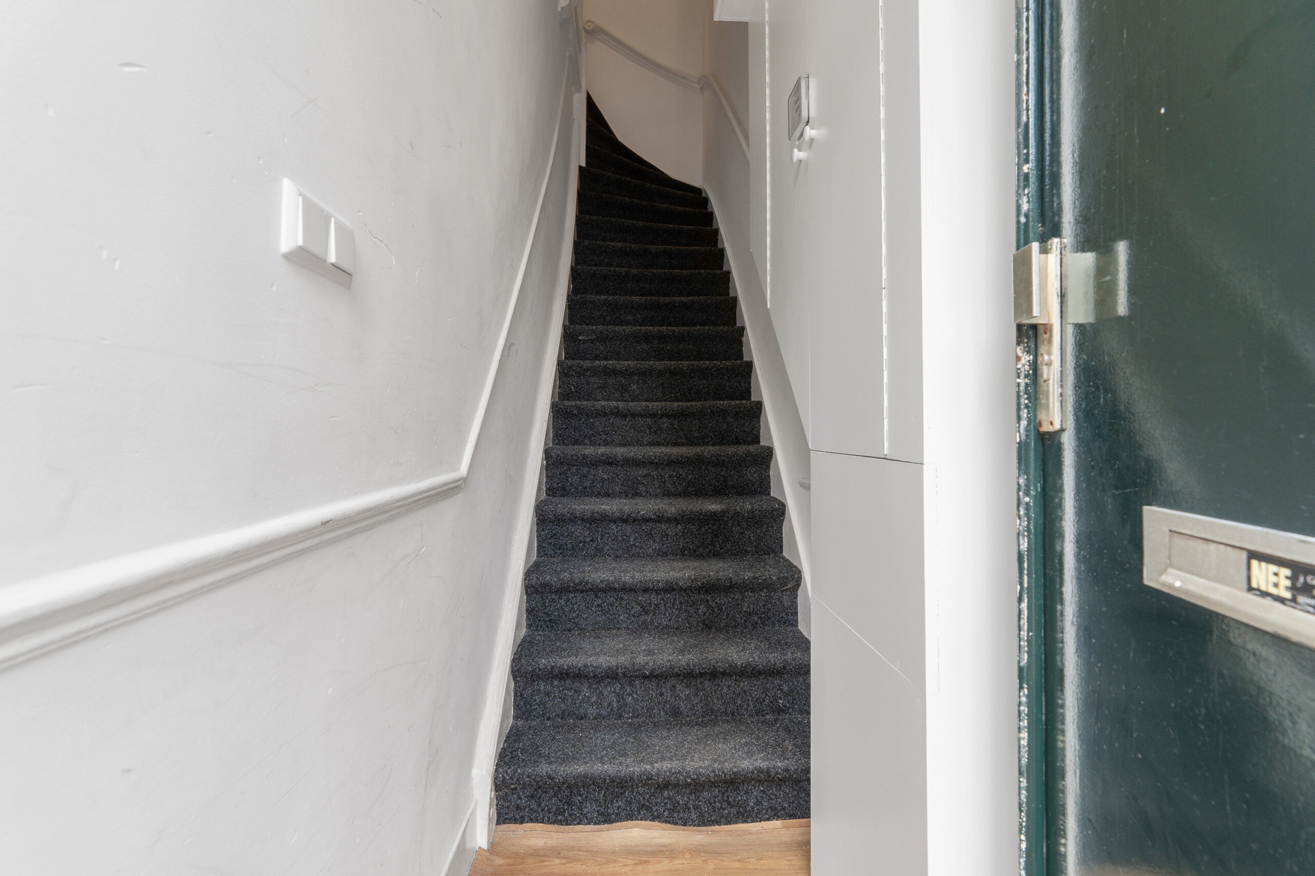 Het appartement is bereikbaar via de gezamenlijke entree en een lange trap die leidt naar de tweede woonlaag. Bij binnenkomst stap je direct de lichte en sfeervolle woonkamer binnen, waar veel daglicht naar binnen valt. Vanuit de woonkamer heb je toegang tot de gesloten keuken. De keuken is voorzien van diverse gemakken, zoals een afzuigkap, inbouwoven en een inductiekookplaat.