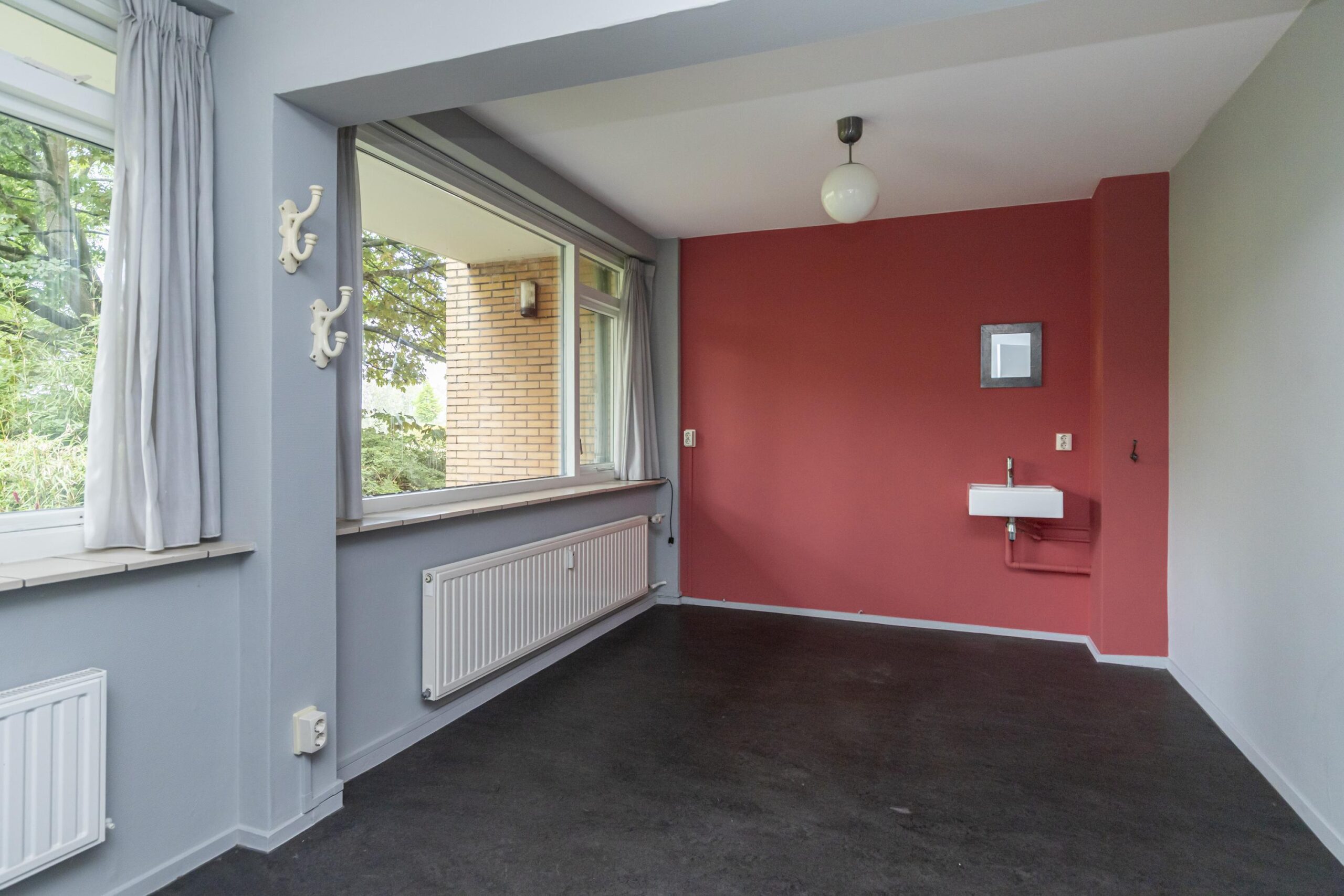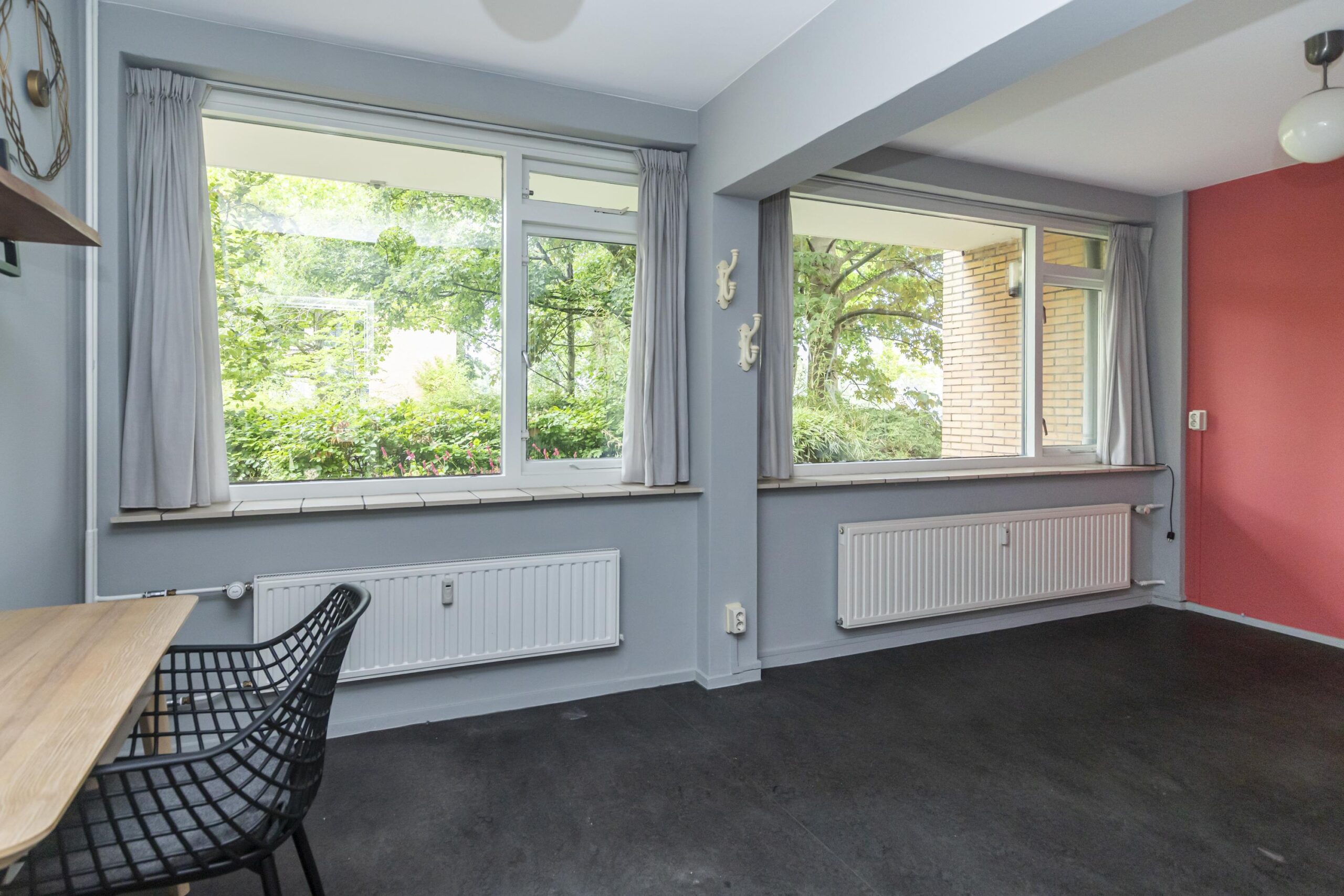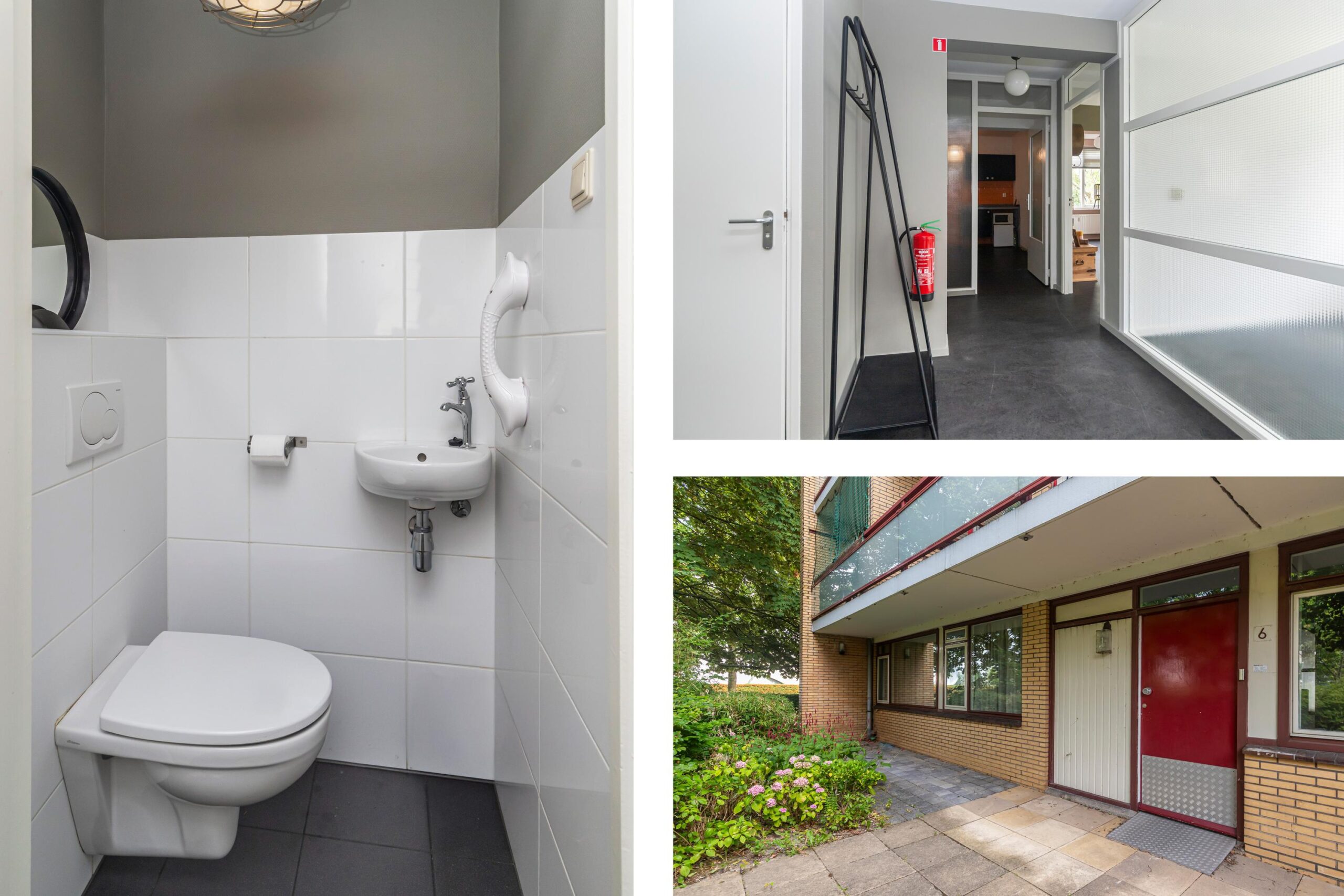 Bij binnenkomst via de centrale entree bevindt zich het bellentableau en de brievenbussen. Via de voortuin bereikt u de entree van de benedenwoning. Bij binnenkomst treft u de ruime hal met toegang tot alle vertrekken. Aan uw linkerzijde vindt u de meterkast en een voorraadkast, waar tevens de warmwaterboiler gepositioneerd is. De toiletruimte is separaat en is tevens voorzien van een fonteintje. De L-vormige woonkamer beschikt over grote raampartijen, waardoor er veel daglicht toetreding is. Er is een airconditioning geïnstalleerd in de woonkamer zodat ook in de zomer een aangenaam binnenklimaat wordt gerealiseerd. De woning beschikt over twee goed bemeten slaapkamers, die flexibel in te delen zijn als hoofdslaapkamer, kinderkamer of werkkamer. De tussenliggende keuken is voorzien van een keukenblok. Tevens is de wasmachineaansluiting hier gevestigd. Momenteel is er geen badkamer aanwezig, maar de woning biedt uitstekende mogelijkheden om deze naar eigen wens te realiseren. Zo kan er bijvoorbeeld gekozen worden voor een badkamer ensuite bij de hoofdslaapkamer of een separate badkamer elders in de woning. Vanuit de slaapkamer aan de achterzijde heeft u toegang tot de achtertuin.