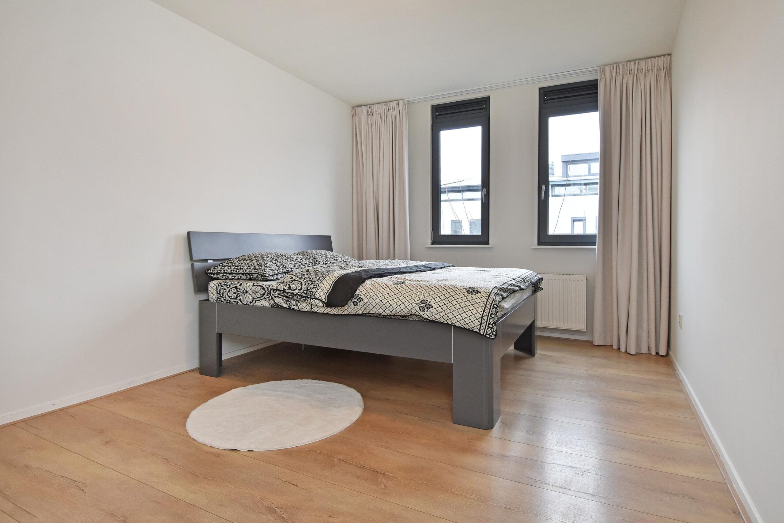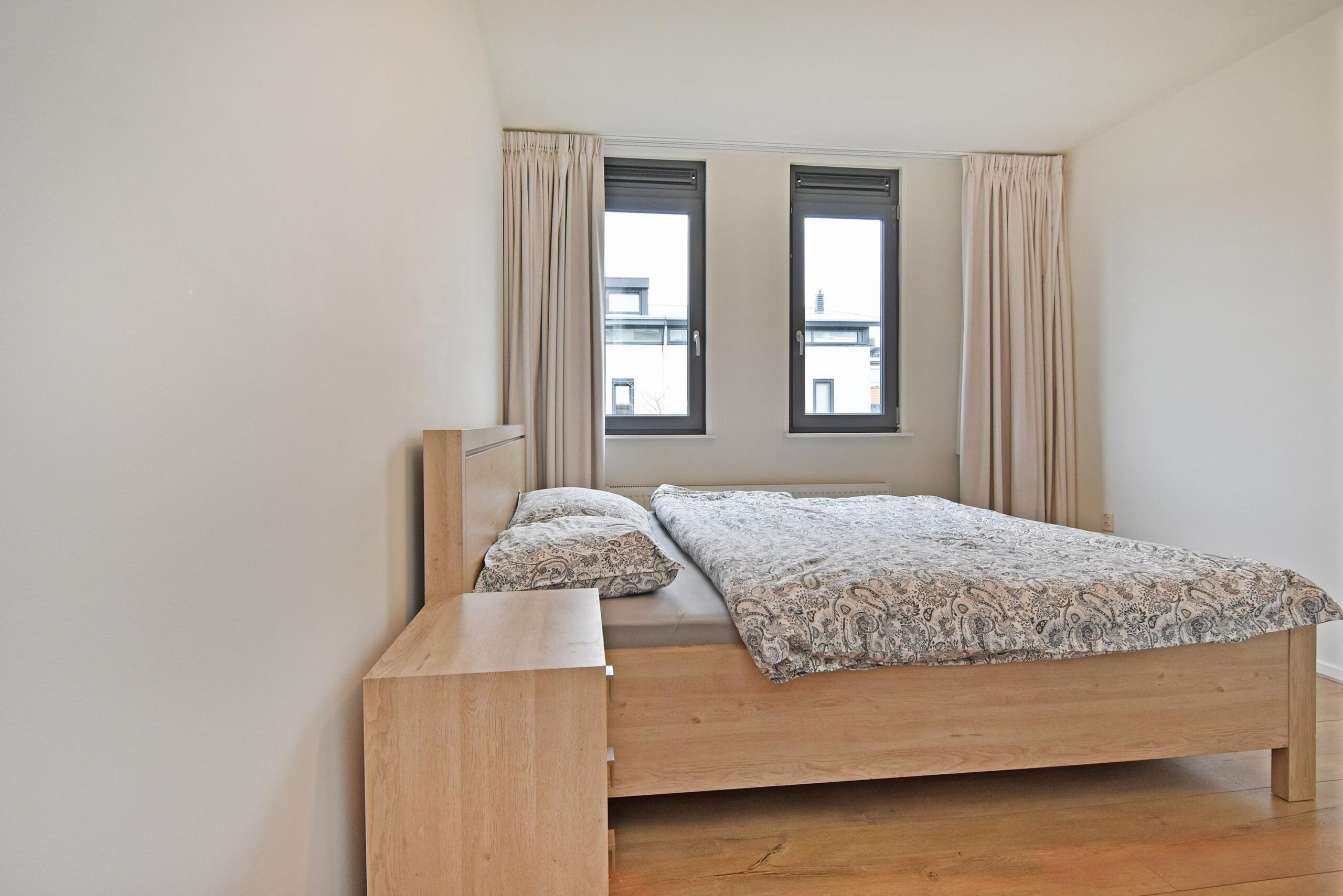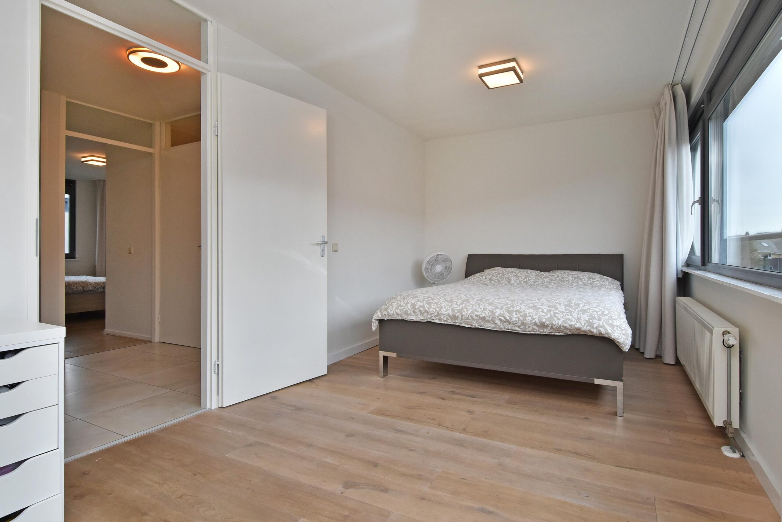 De overloop geeft toegang tot drie slaapkamers. Aan de voorzijde bevindt zich een ruime slaapkamer over de gehele breedte van de woning. Aan de achterzijde liggen twee goed bemeten slaapkamers. De badkamer is compleet uitgevoerd met een ligbad, douchecabine, wastafelmeubel, handdoekenradiator en toilet. Daarnaast is er een technische ruimte met de opstelplaats van de CV-combiketel en de mechanische ventilatie.