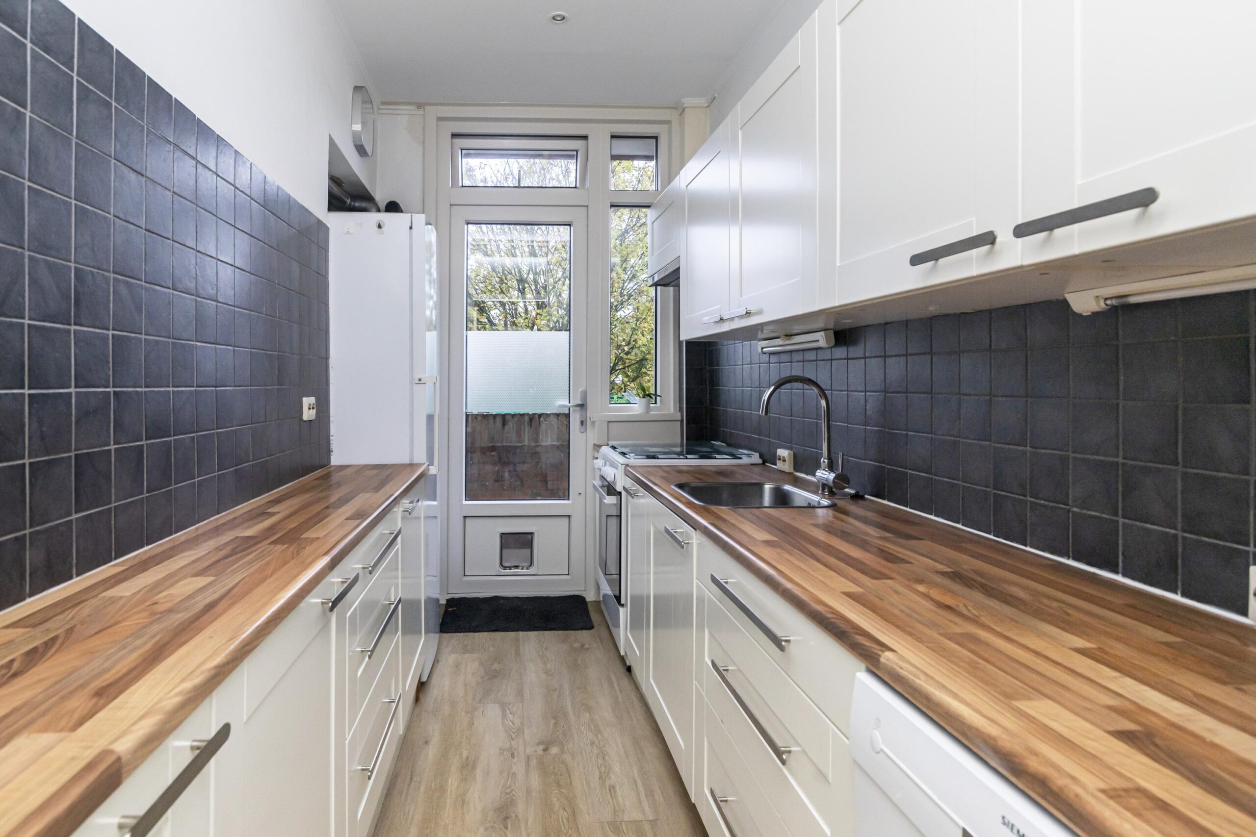 De moderne keuken aan de achterzijde biedt voldoende werkruimte en is van alle gemakken voorzien.