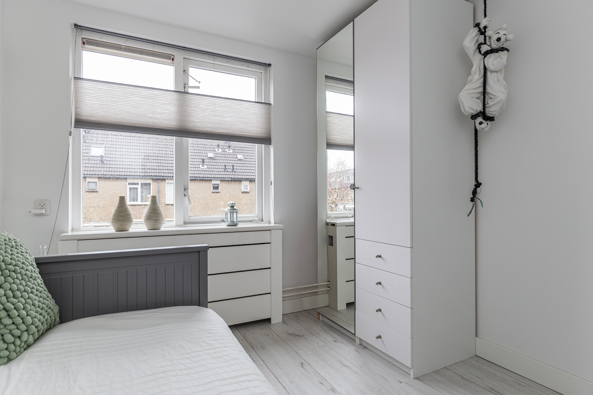 De laminaatvloer op deze verdieping zorgt voor een moderne en praktische afwerking.