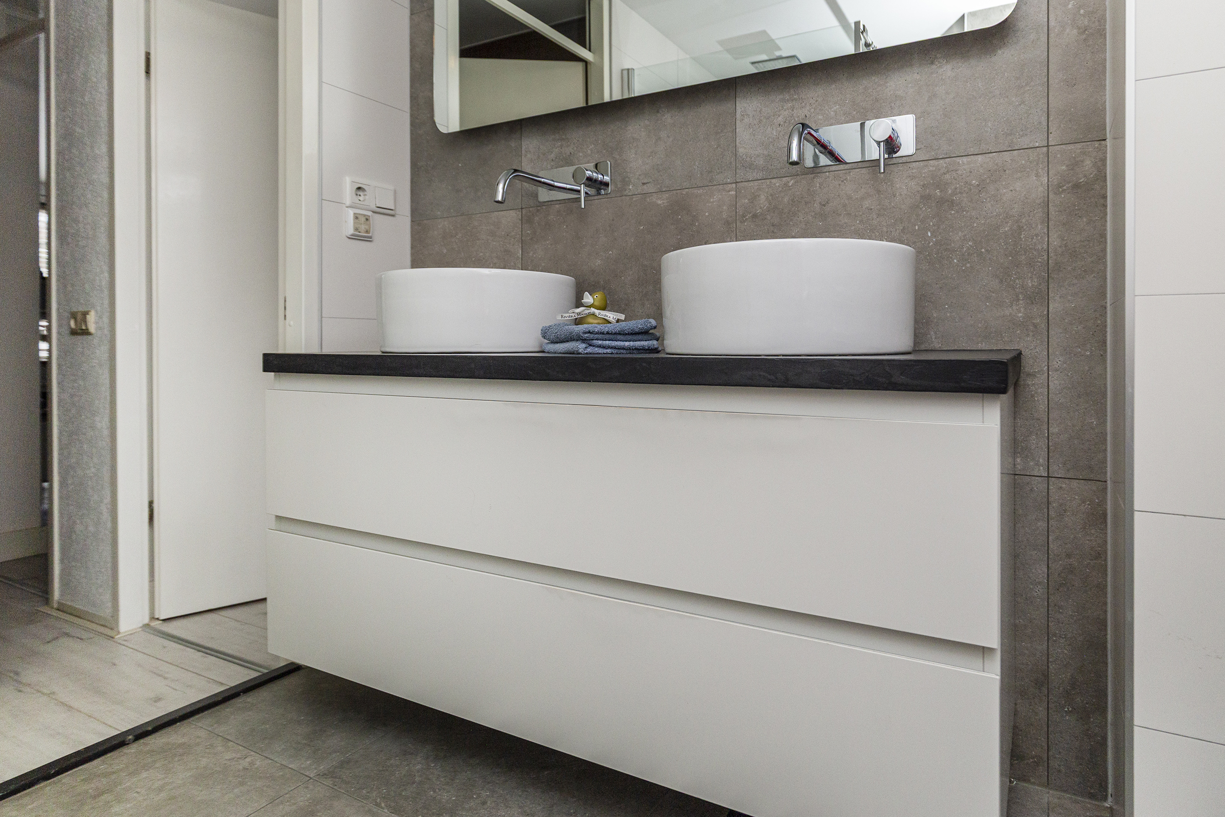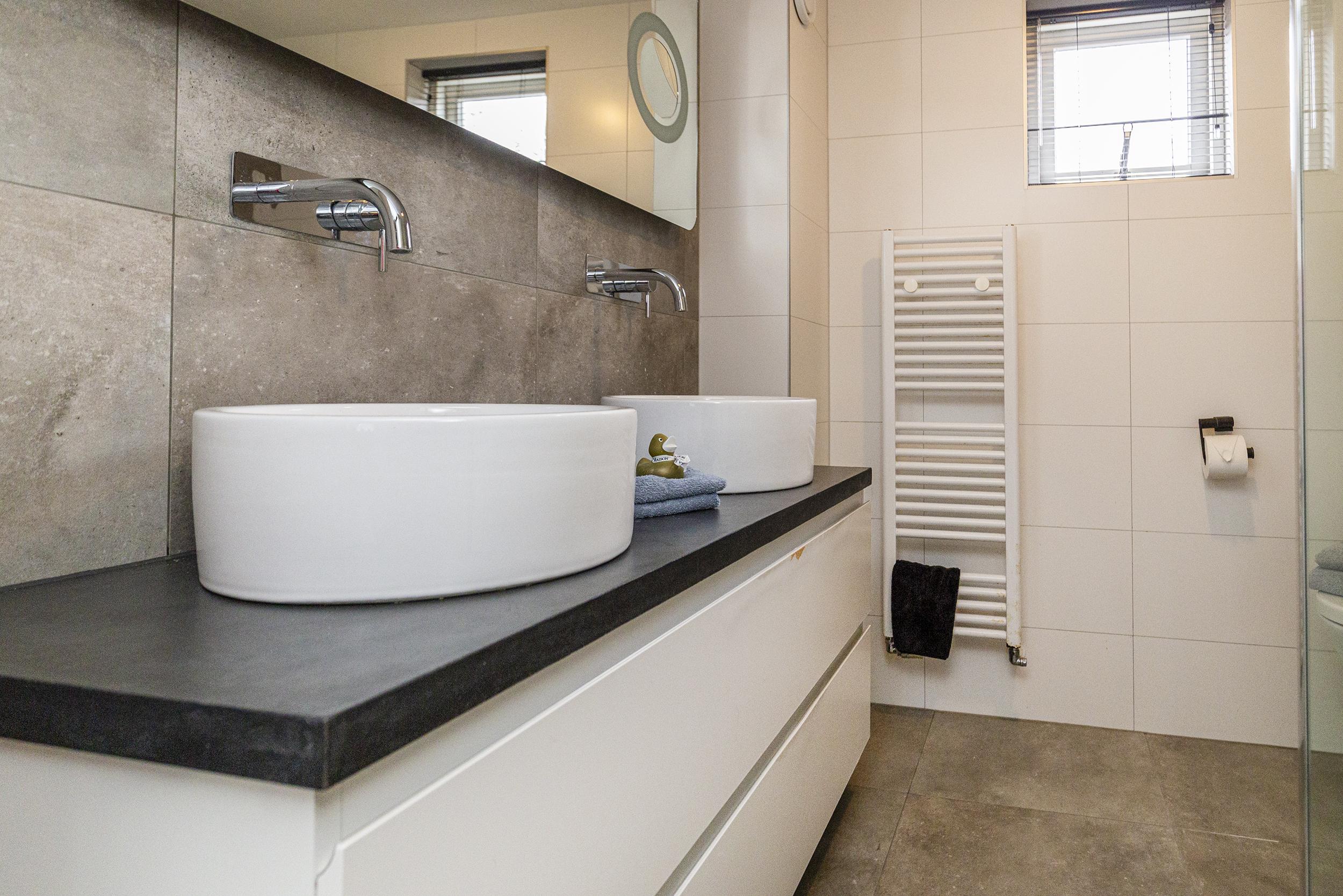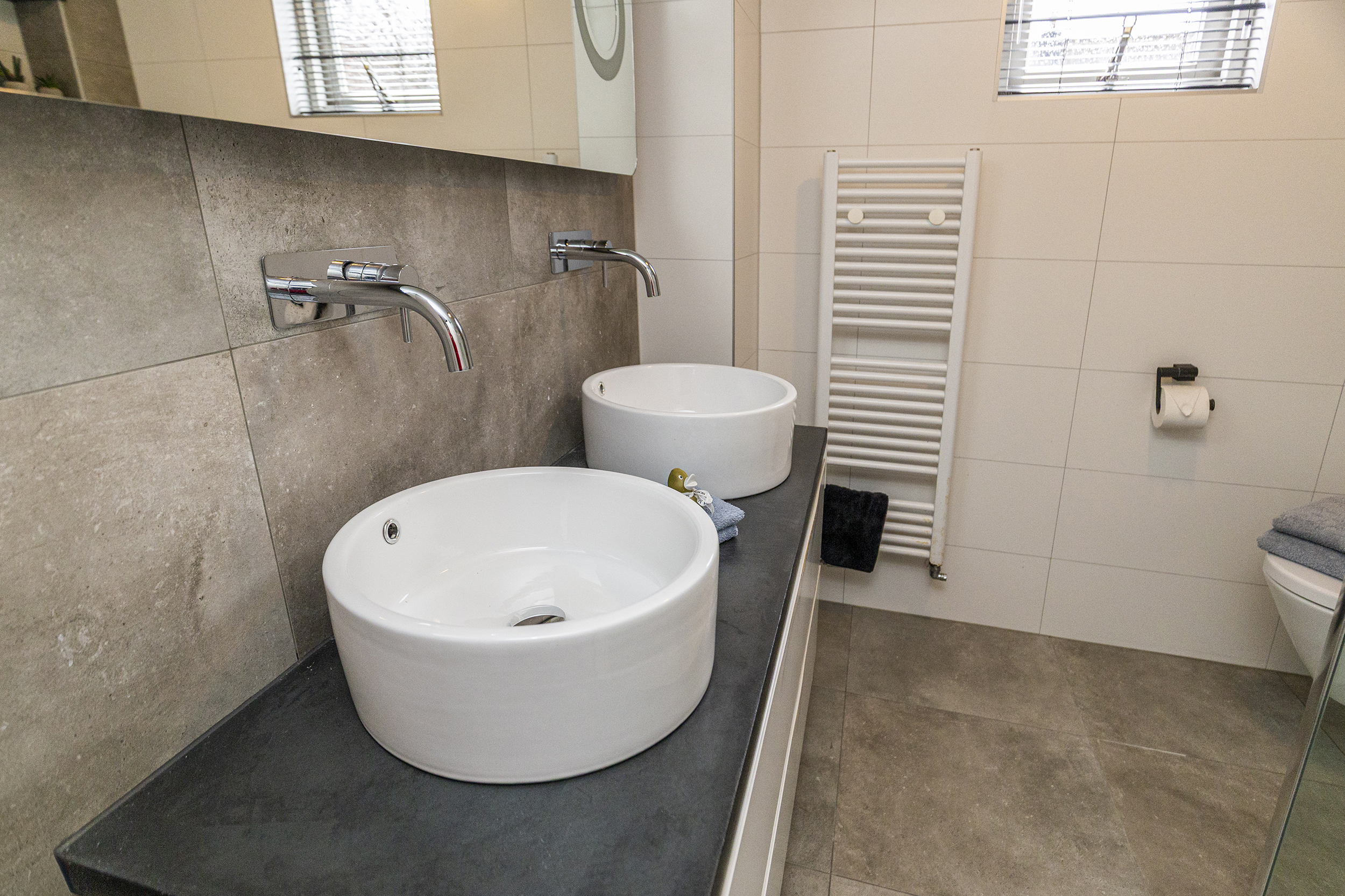 - Badkamervoorzieningen Toilet, dubbele wastafel, wastafelmeubel, inloopdouche