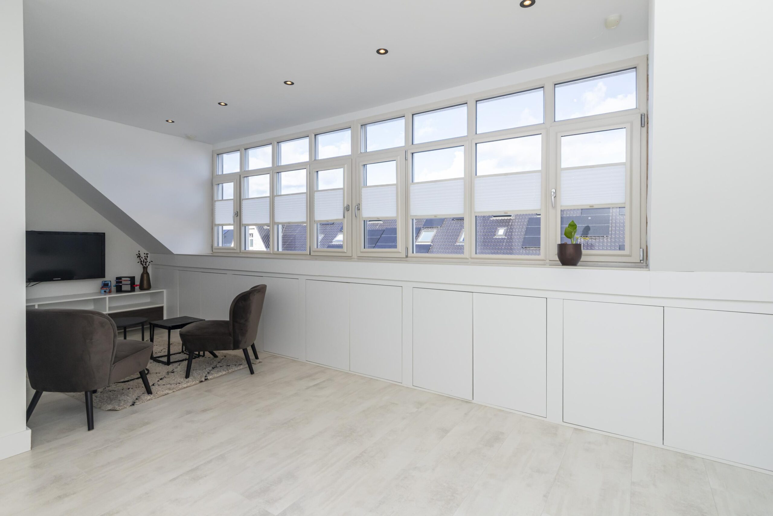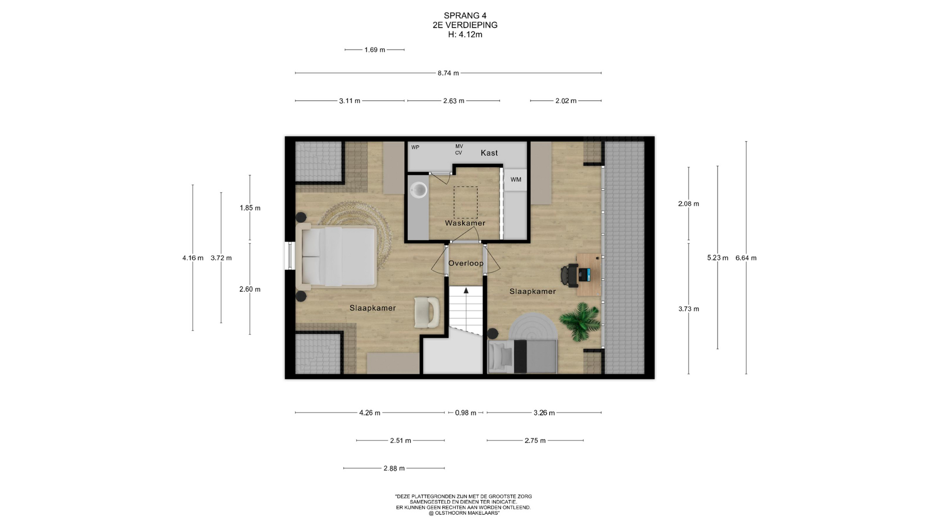 Op de zolder vind je nog twee ruime slaapkamers aan zowel de voor- als achterzijde. Daarnaast is er een praktische ruimte met de opstelplaats voor de wasmachine, waar tevens een bijkeuken en extra kastruimte zijn gerealiseerd. Dit maakt de verdieping niet alleen functioneel, maar ook bijzonder compleet.