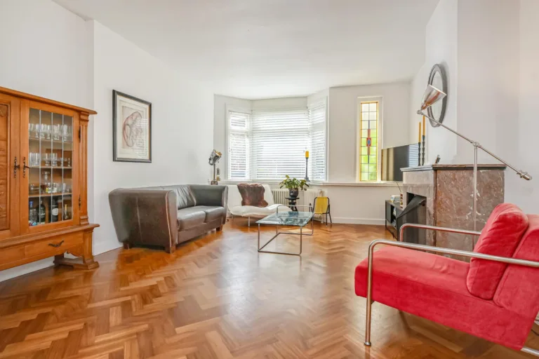 De woonkamer ensuite is nog voorzien van de originele separatie met vier kasten en glas-in-lood in de deuren, twee marmeren schouwen én een fraaie visgraat parketvloer. In de achterkamer is de aansluiting met de open keuken en de achtertuin. De moderne keuken heeft een koel/vriescombinatie, een combi magnetron, een 4 zone inductiekookplaat met downdraft, een vaatwasser en een Quooker warmwater kraan plús Quooker Cube voor bruisend water. Wat wens je nog meer! In de keuken is ook de opstelplaats van de Cv-ketel (Remeha 2021). De tuin is vanuit de achterkamer door middel van dubbele openslaande deuren en vanuit de keuken via een enkele deur toegankelijk.