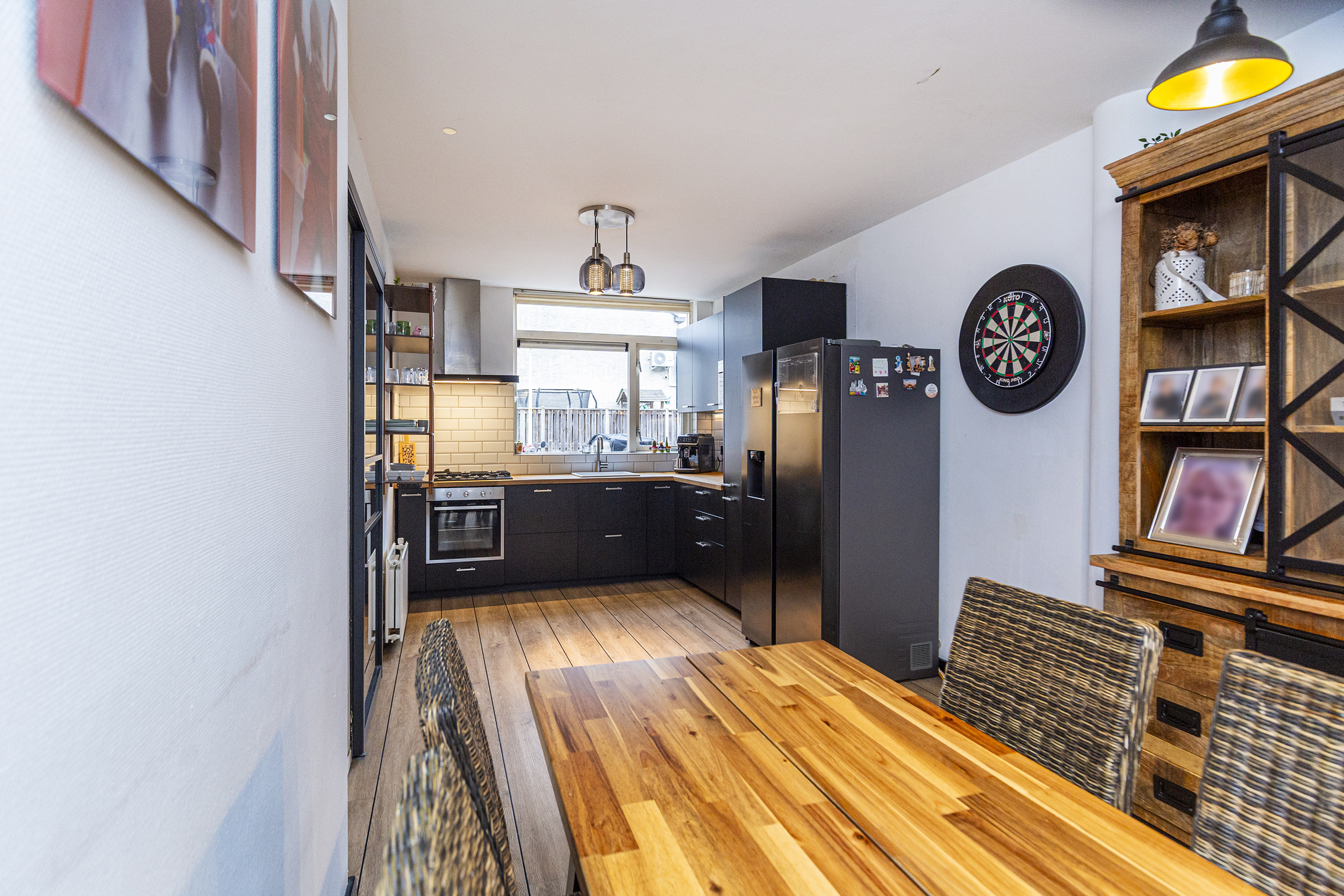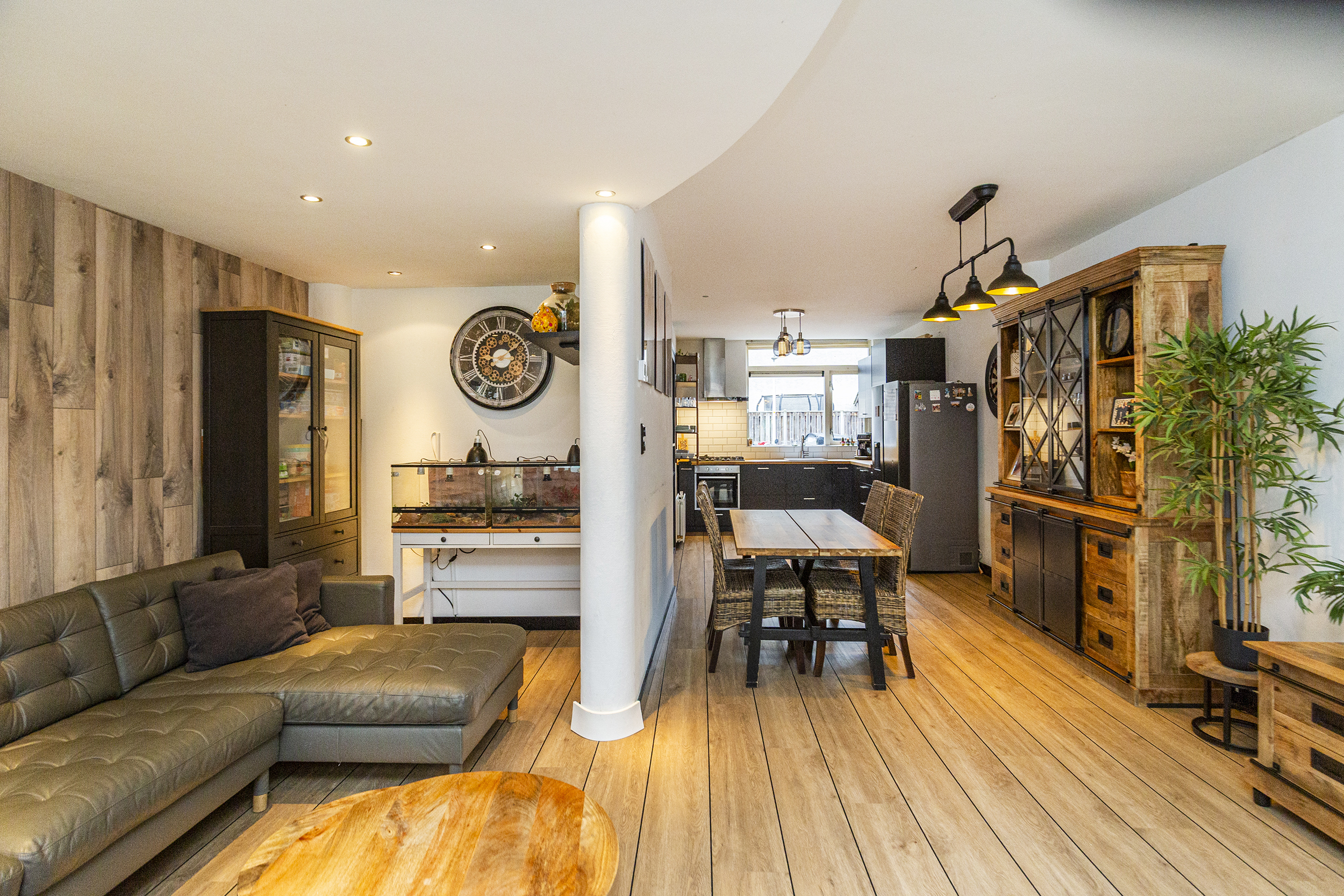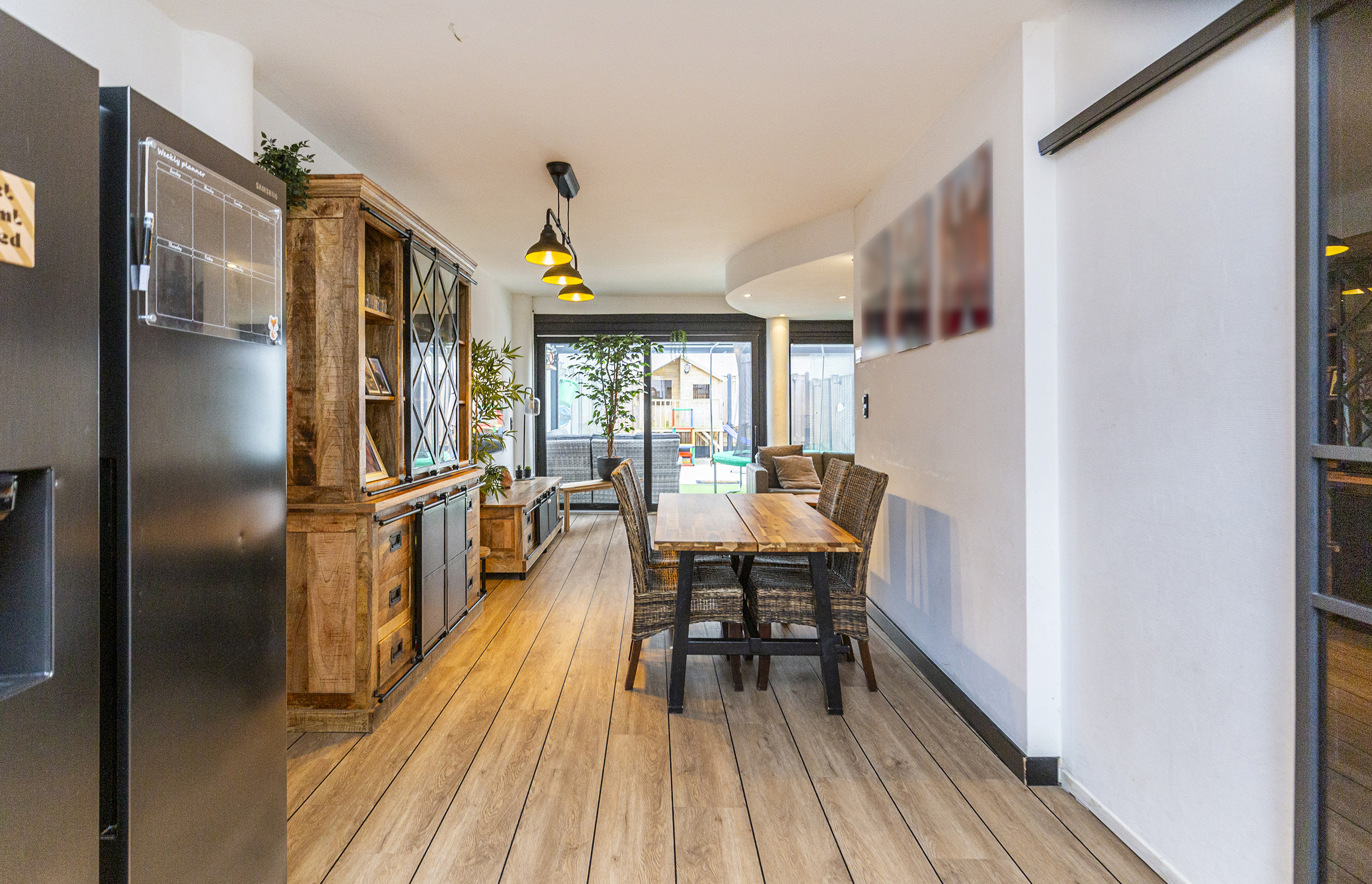 Via de hal komt u in de keuken die aan de voorkant van de woning is gelegen. De open keuken is voorzien van diverse inbouwapparatuur en vormt het begin van de doorlopende ruimte. De woonkamer is gelegen aan de achterzijde en biedt genoeg ruimte voor een eet- en zithoek. Aan de woonkamer grenst een serre, die zorgt voor extra leefruimte en een fijn verbinding met de achtertuin.
