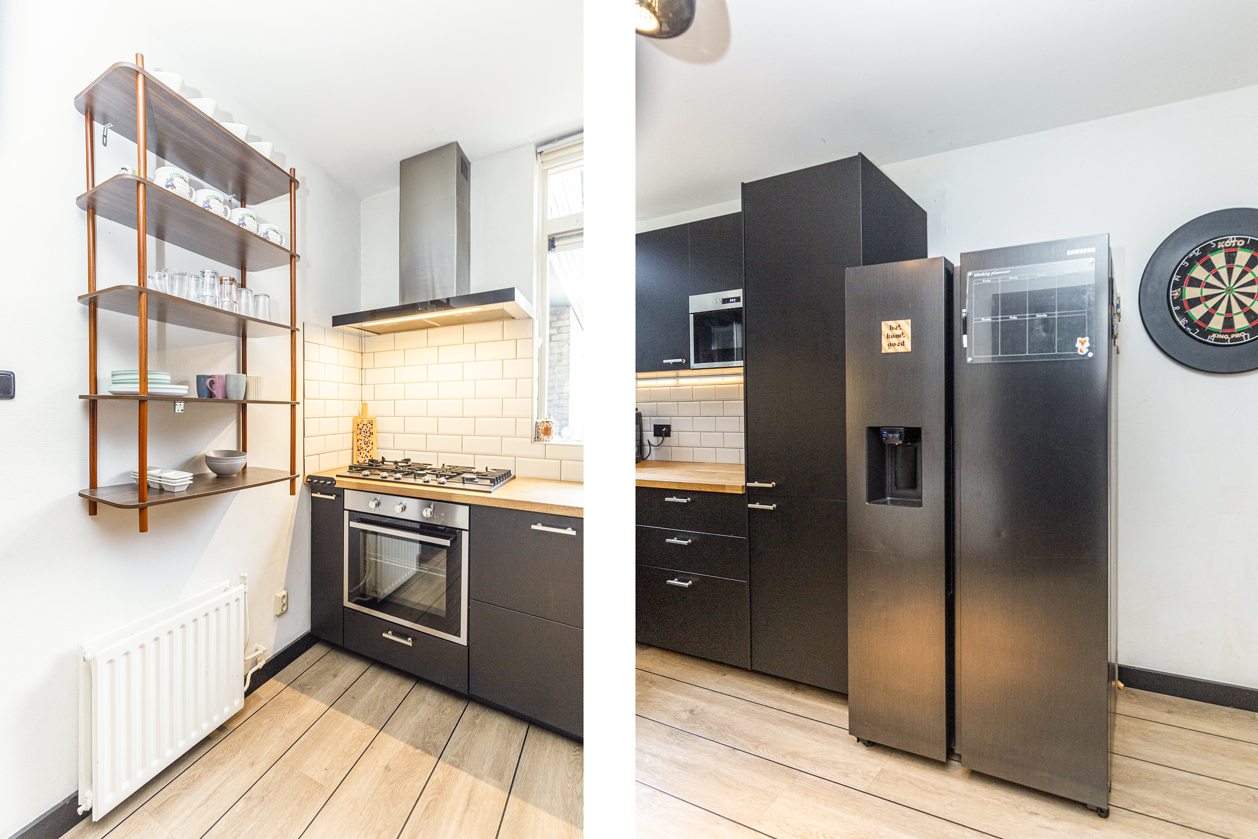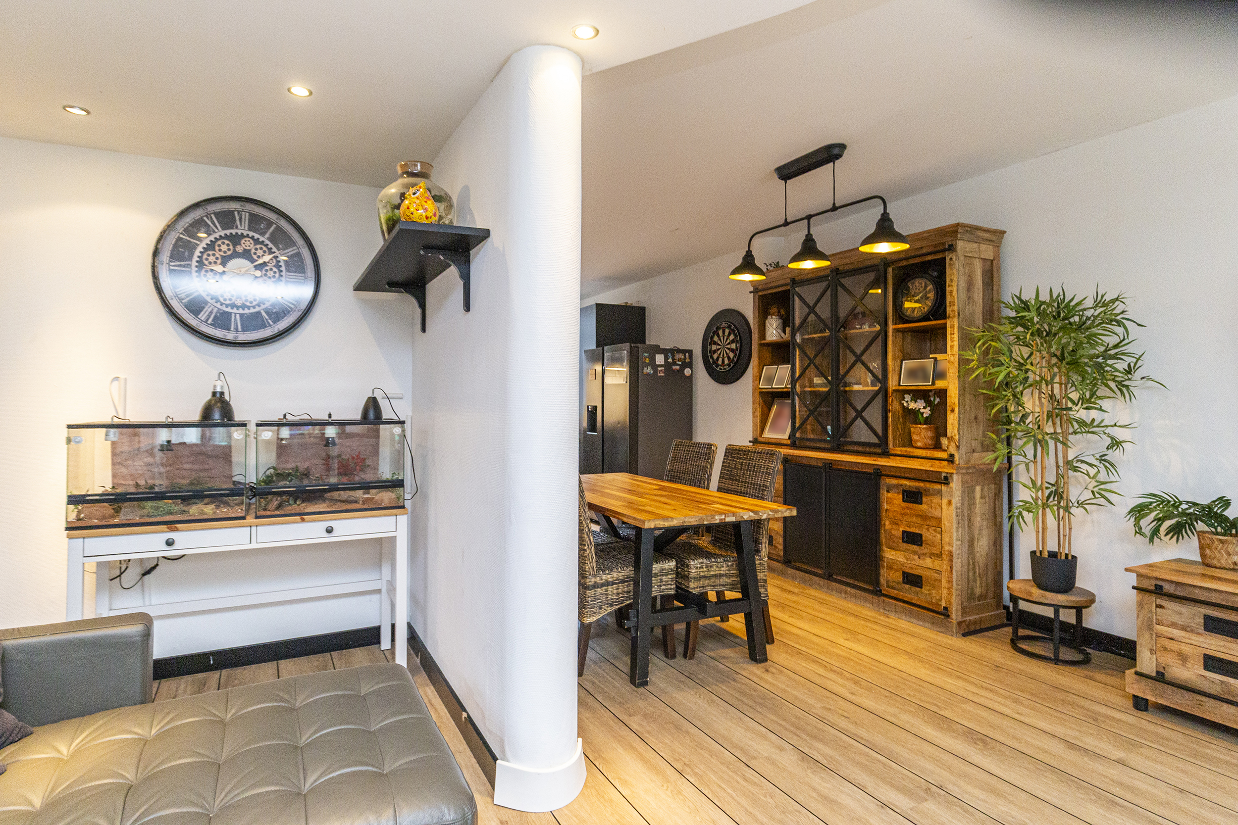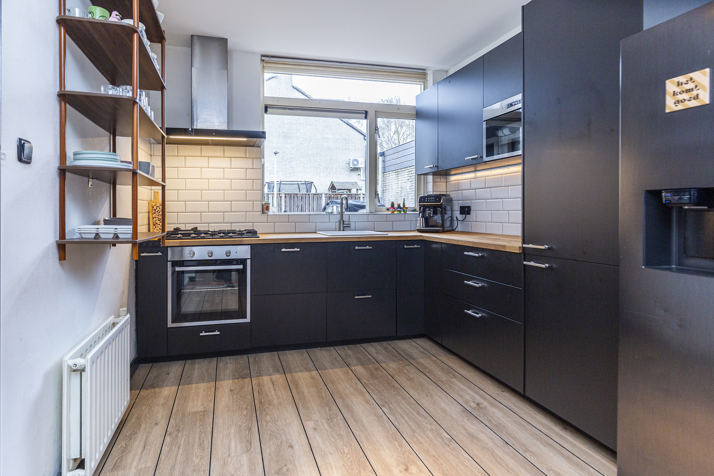 Via de hal komt u in de keuken die aan de voorkant van de woning is gelegen. De open keuken is voorzien van diverse inbouwapparatuur en vormt het begin van de doorlopende ruimte. De woonkamer is gelegen aan de achterzijde en biedt genoeg ruimte voor een eet- en zithoek. Aan de woonkamer grenst een serre, die zorgt voor extra leefruimte en een fijn verbinding met de achtertuin.