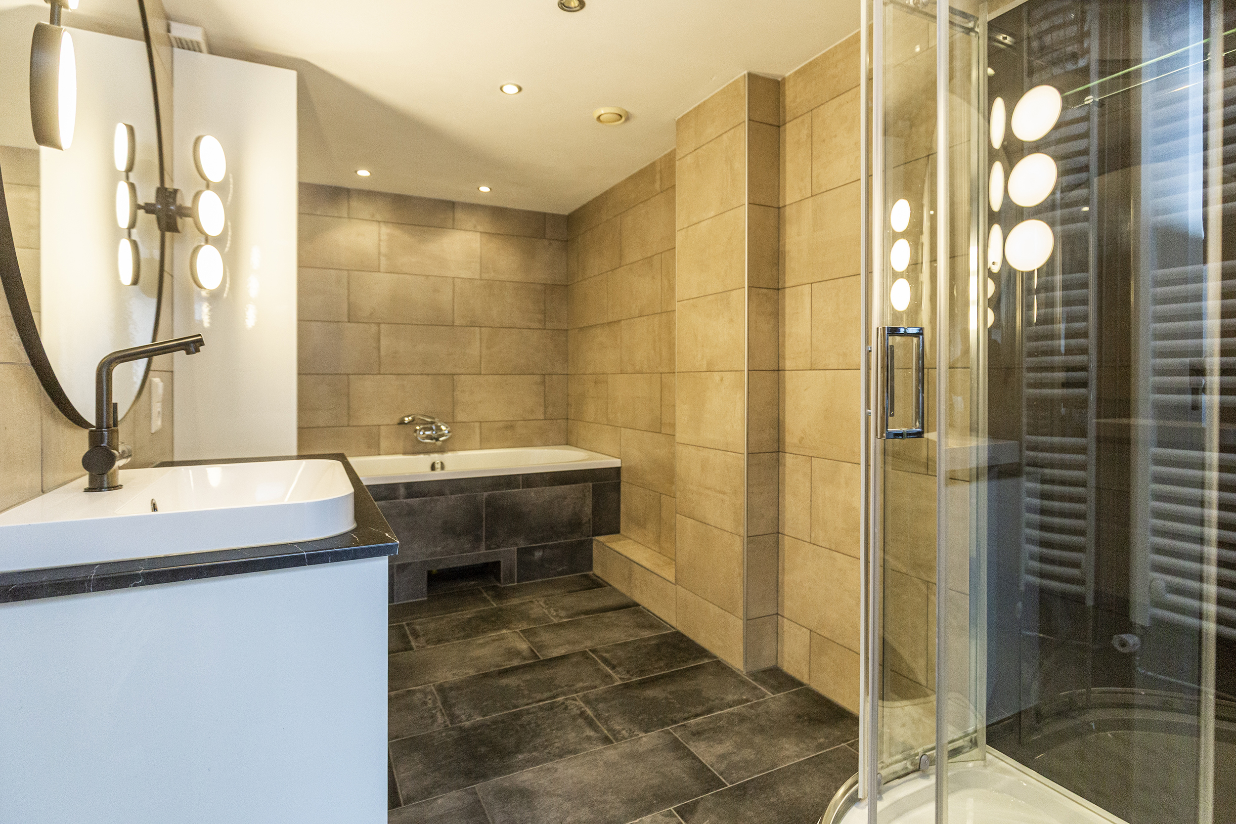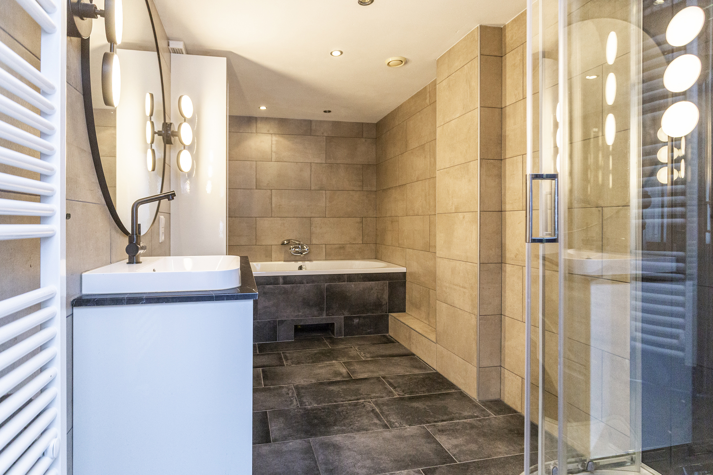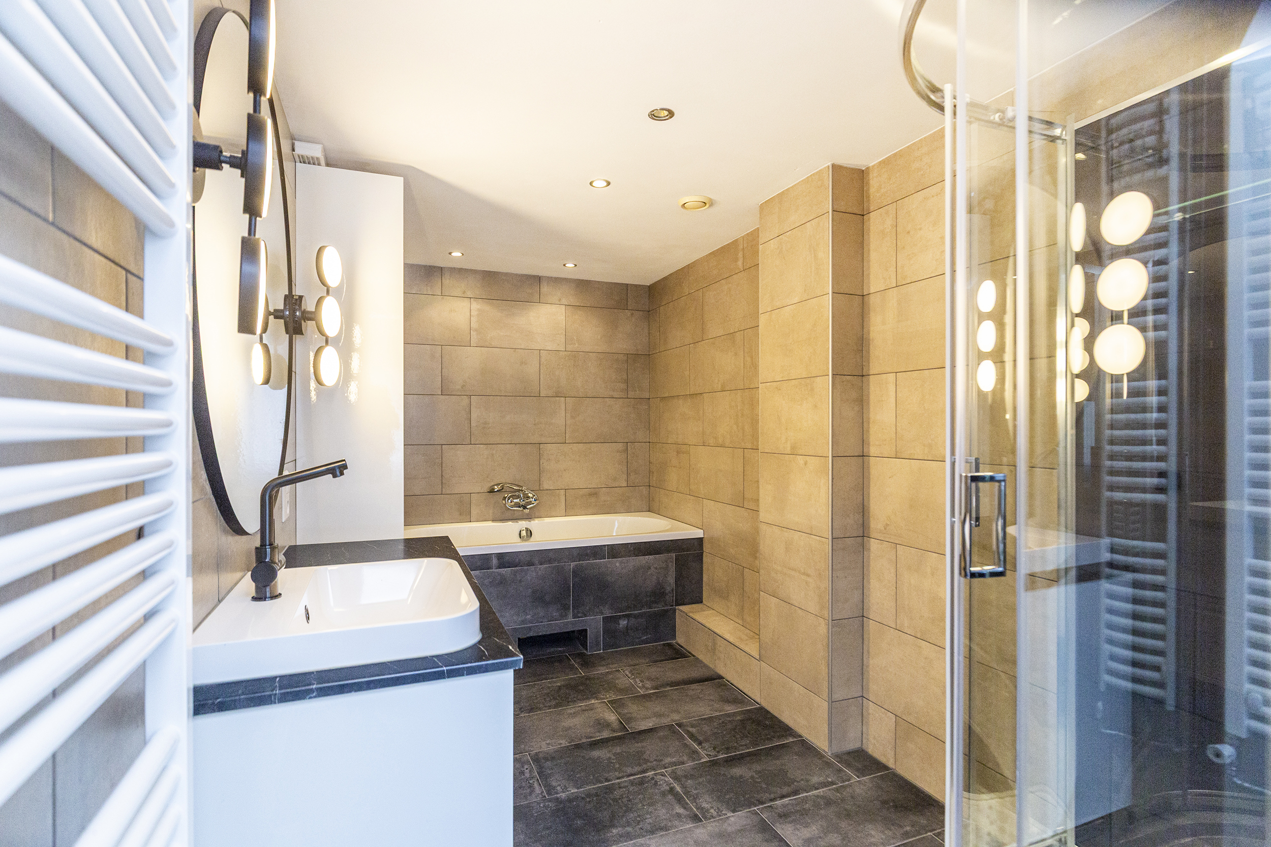 - Badkamervoorzieningen Ligbad, douche, wastafelmeubel, douche, wastafel, wasmachineaansluiting