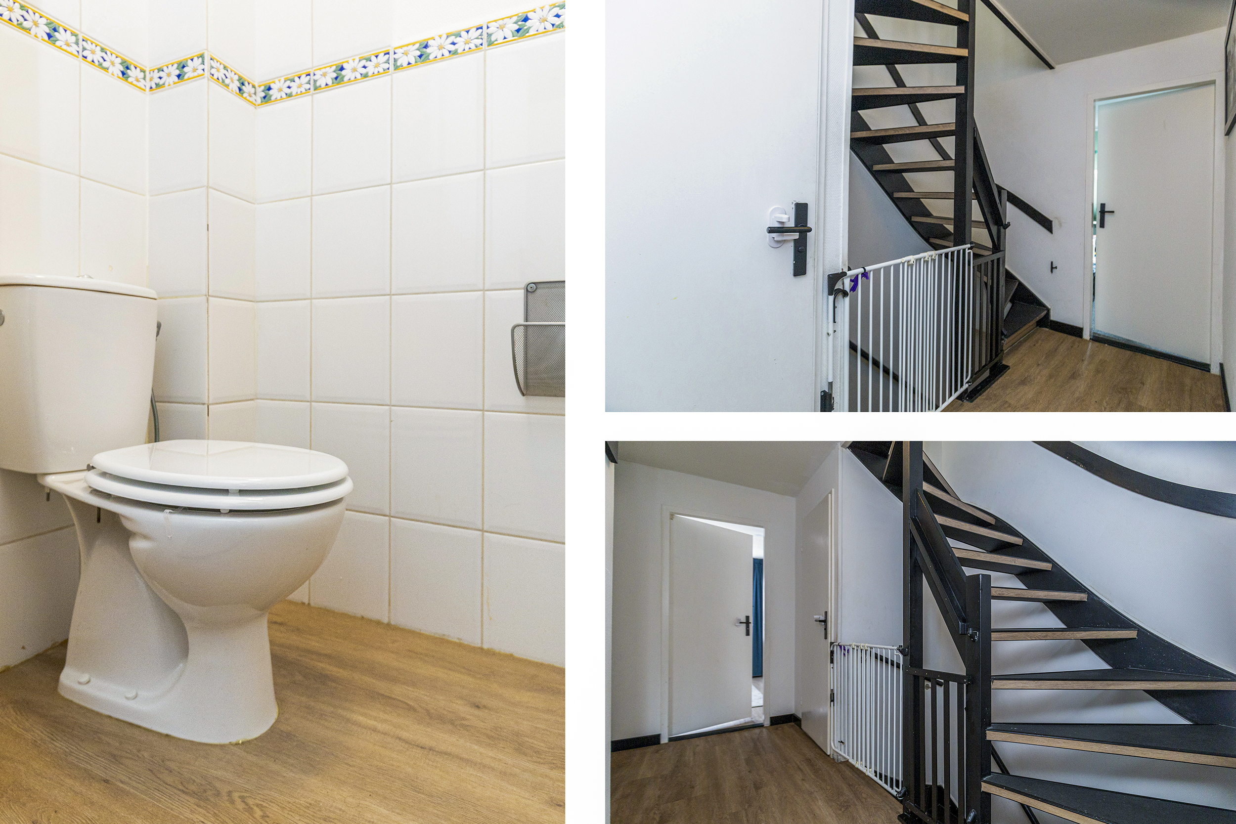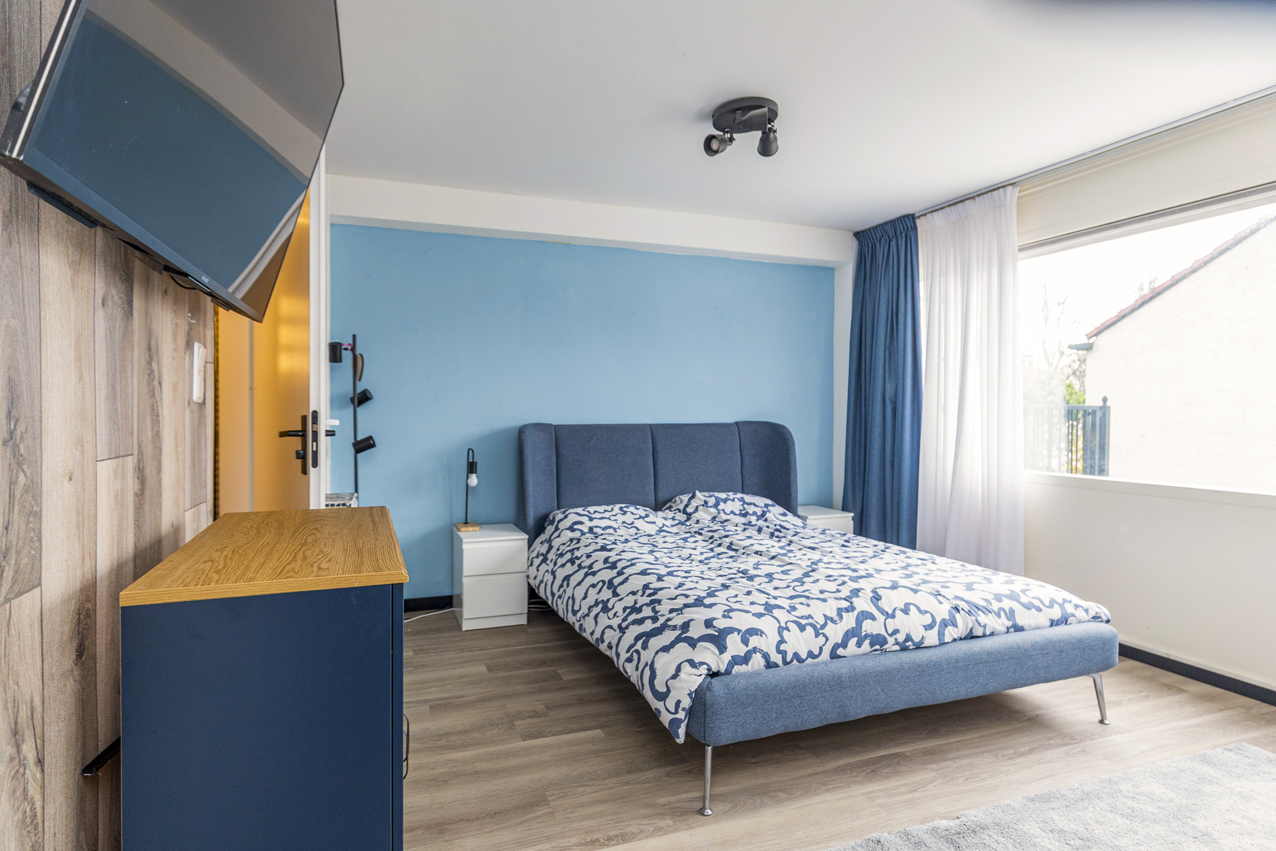 Op de eerste verdieping geeft de overloop toegang tot drie slaapkamers, een separaat toilet en de badkamer. De badkamer is compleet uitgerust met een douche, wastafelmeubel en een ligbad. De slaapkamers zijn goed van formaat en flexibel te gebruiken als slaap-, werk- of hobbyruimte.