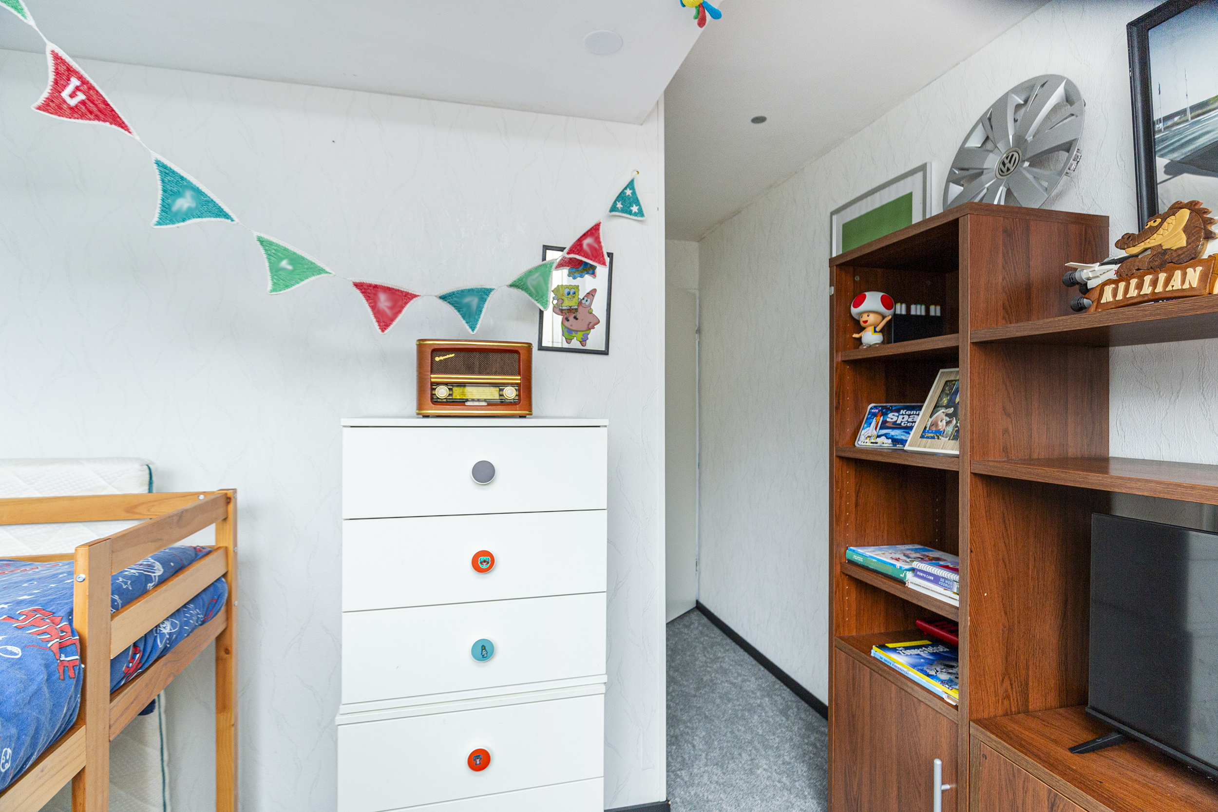 De tweede verdieping biedt nog eens een twee extra slaapkamers, een berging en een tweede badkamer. Deze badkamer is voorzien van een douche, wastafel en aansluitingen voor de wasmachine en droger, wat deze verdieping zeer praktisch maakt.