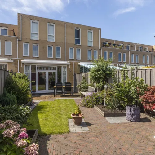 De achtertuin is bereikbaar via openslaande deuren en heeft een elektrisch zonnescherm. De tuin is onderhoudsvriendelijk aangelegd met een achterom en een ruime berging. De tuin biedt volop ruimte om buiten te zitten of kinderen te laten spelen. Het balkon op de eerste verdieping is gelegen op het zuidwesten waar je tot in de avond van de zon kunt genieten.