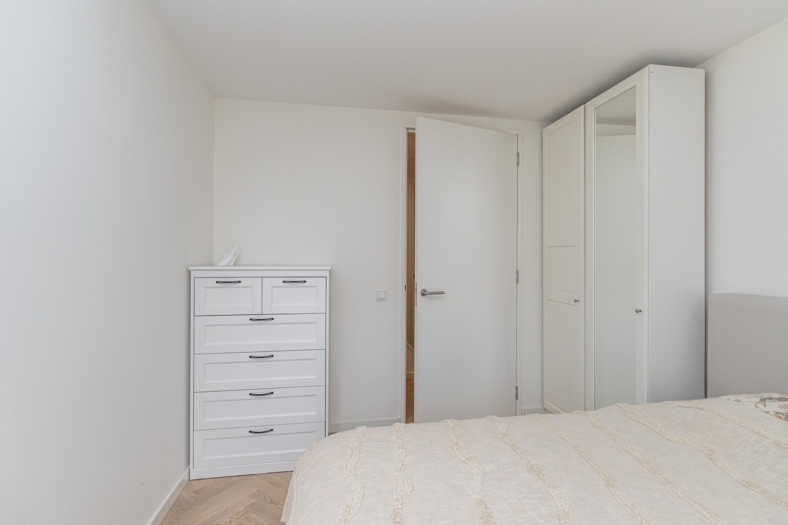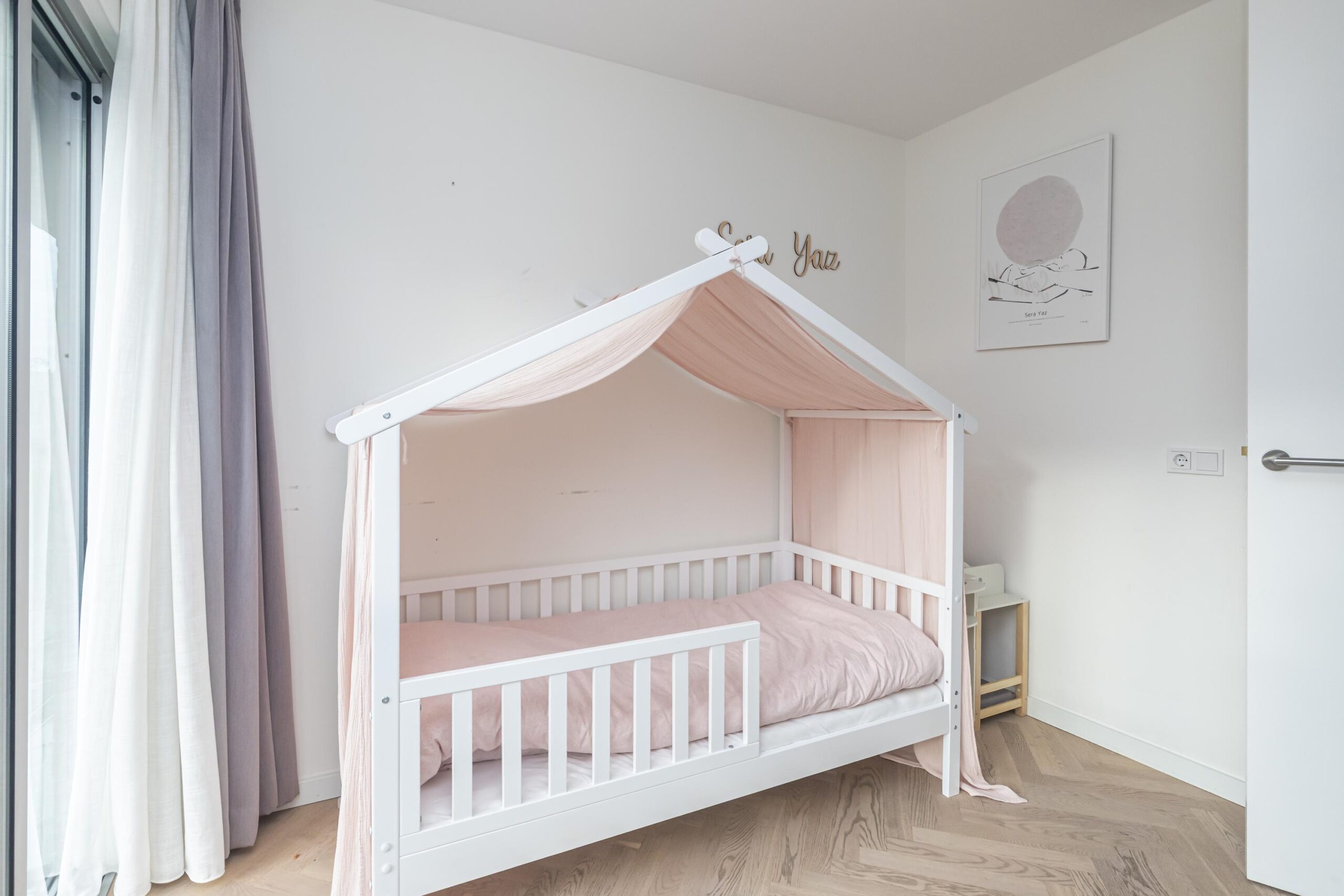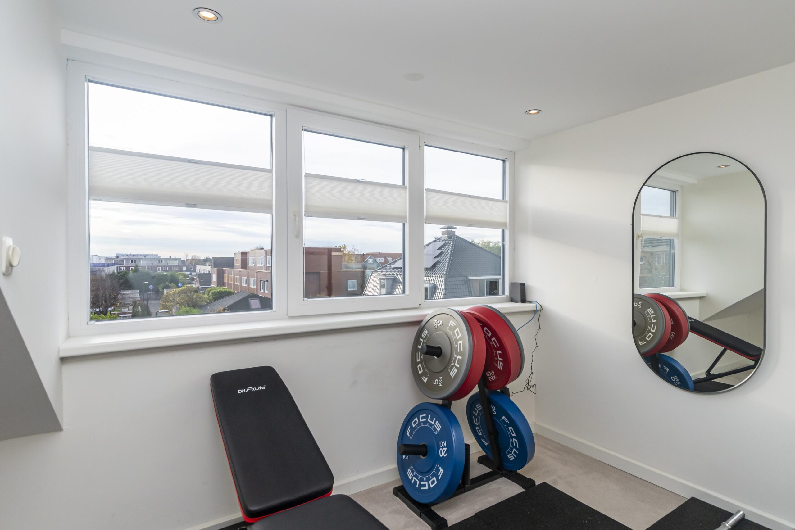 Een vaste trap brengt je naar de tweede verdieping, waar je wordt verrast door de ruimte en de mogelijkheden. Hier bevindt zich een royale slaapkamer met ligbad – ideaal als ouderslaapkamer of luxe logeerkamer – en een tweede kamer die zich uitstekend leent als werkruimte of hobbykamer.