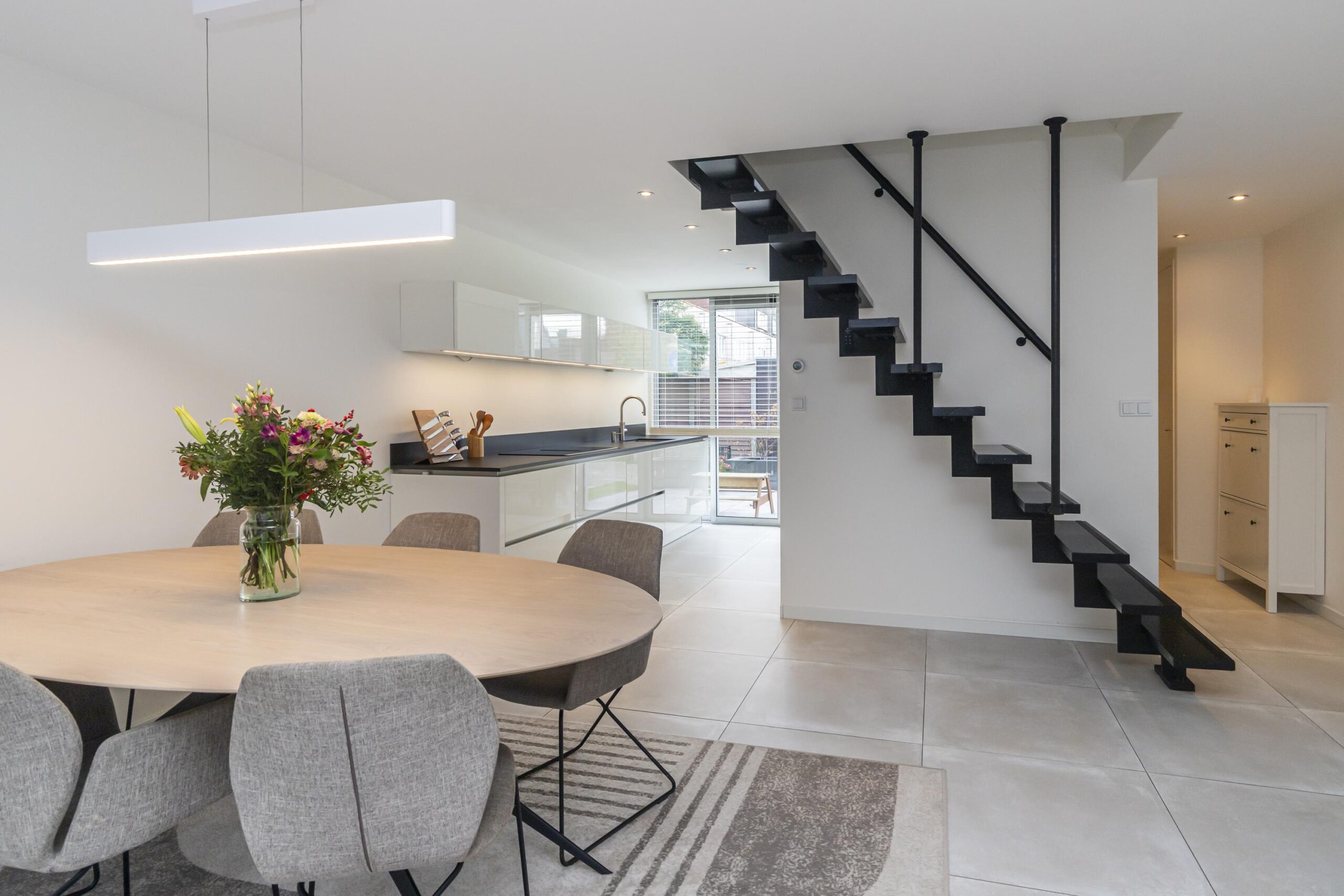 Via de voortuin bereik je de voordeur. In de hal vind je het toilet en toegang tot de woonkamer. Zodra je binnenstapt, valt het lichte karakter van de living direct op: een prettige ruimte met grote ramen en een open verbinding naar de keuken. Hier kook je met uitzicht op de voortuin – een heerlijke plek om te genieten van het buitenleven. De verzorgde achtertuin biedt volop privacy, heeft een berging voor fietsen of tuinspullen en een handige achterom.