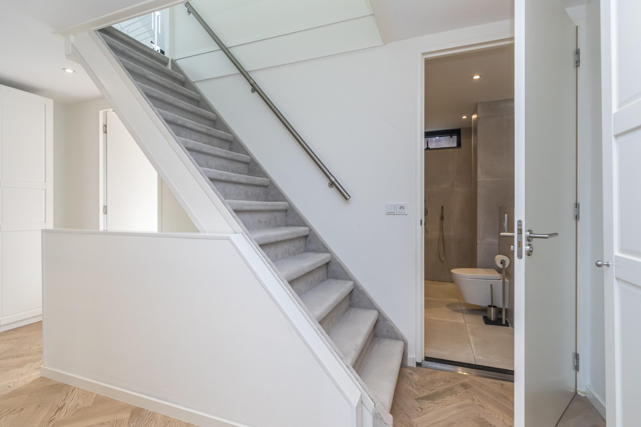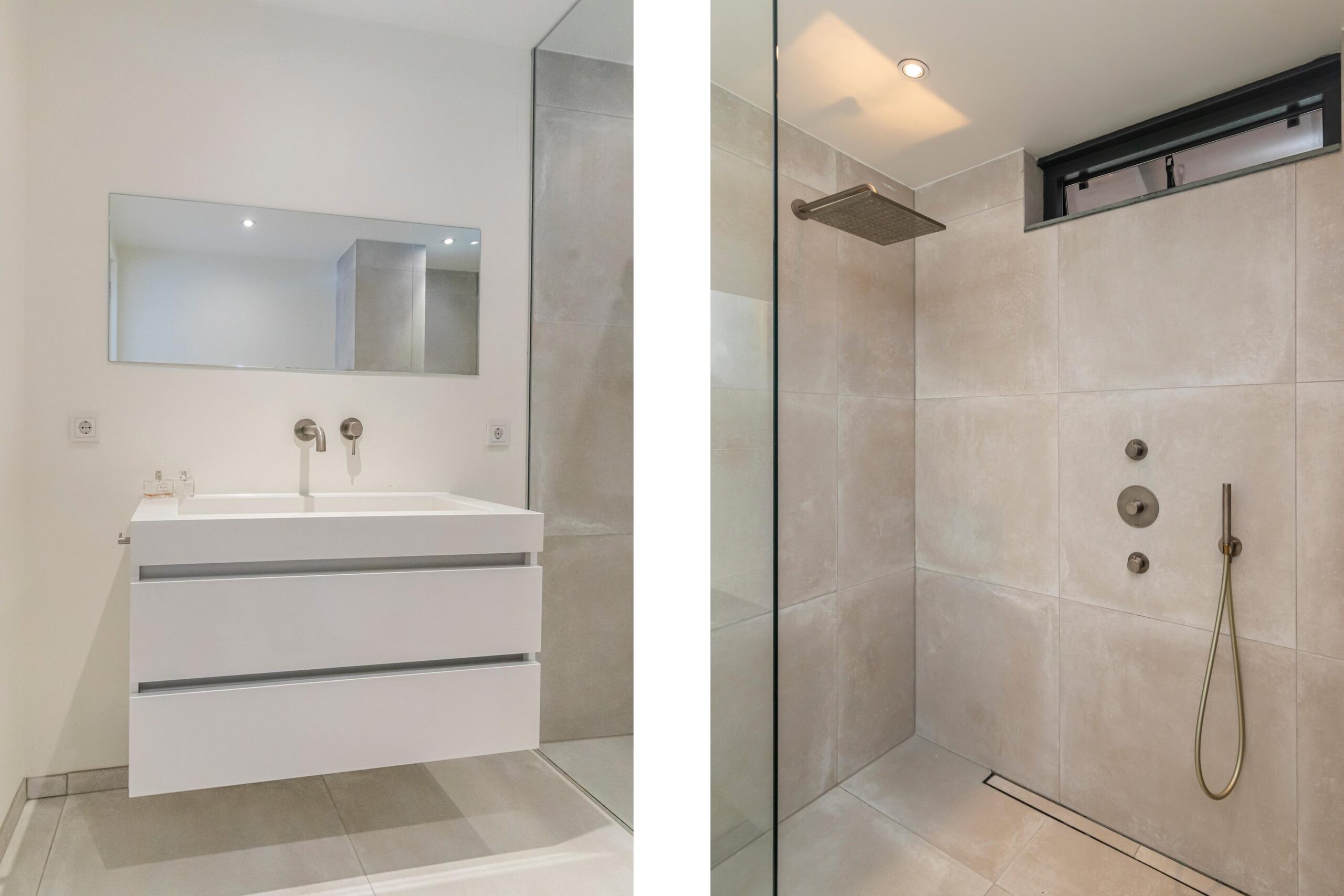 Via de trap in de hal bereik je de eerste verdieping. De overloop geeft toegang tot drie goed bemeten slaapkamers, stuk voor stuk licht en comfortabel. De moderne badkamer is stijlvol ingericht met een inloopdouche, tweede toilet en een wastafelmeubel.