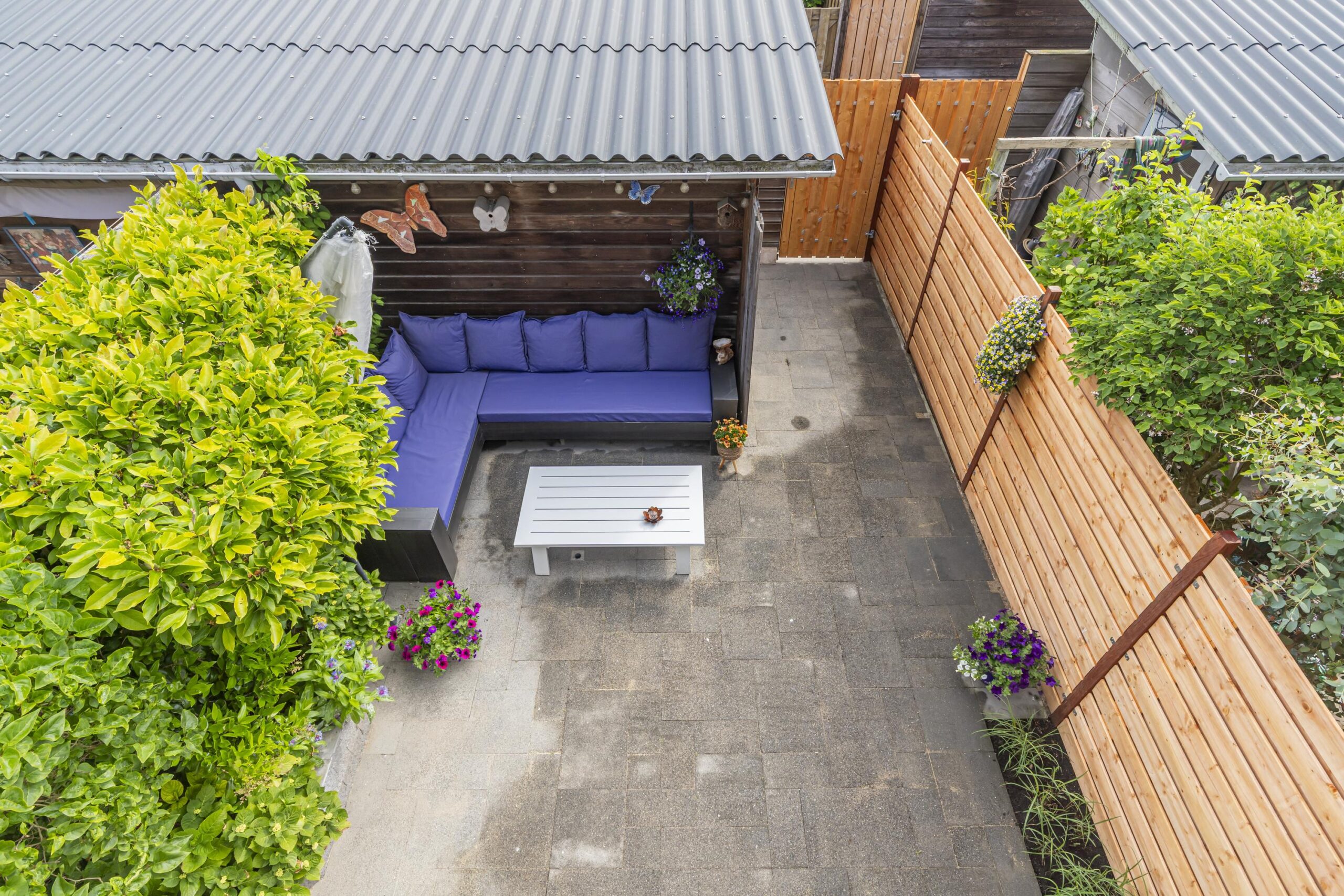 De ruime voortuin ligt op het zuidwesten en is een fijne plek voor de middag- en avondzon. De achtertuin ligt op het noordoosten, beschikt over een vrijstaande berging en is bereikbaar via een achterom. Beide tuinen zijn netjes aangelegd.